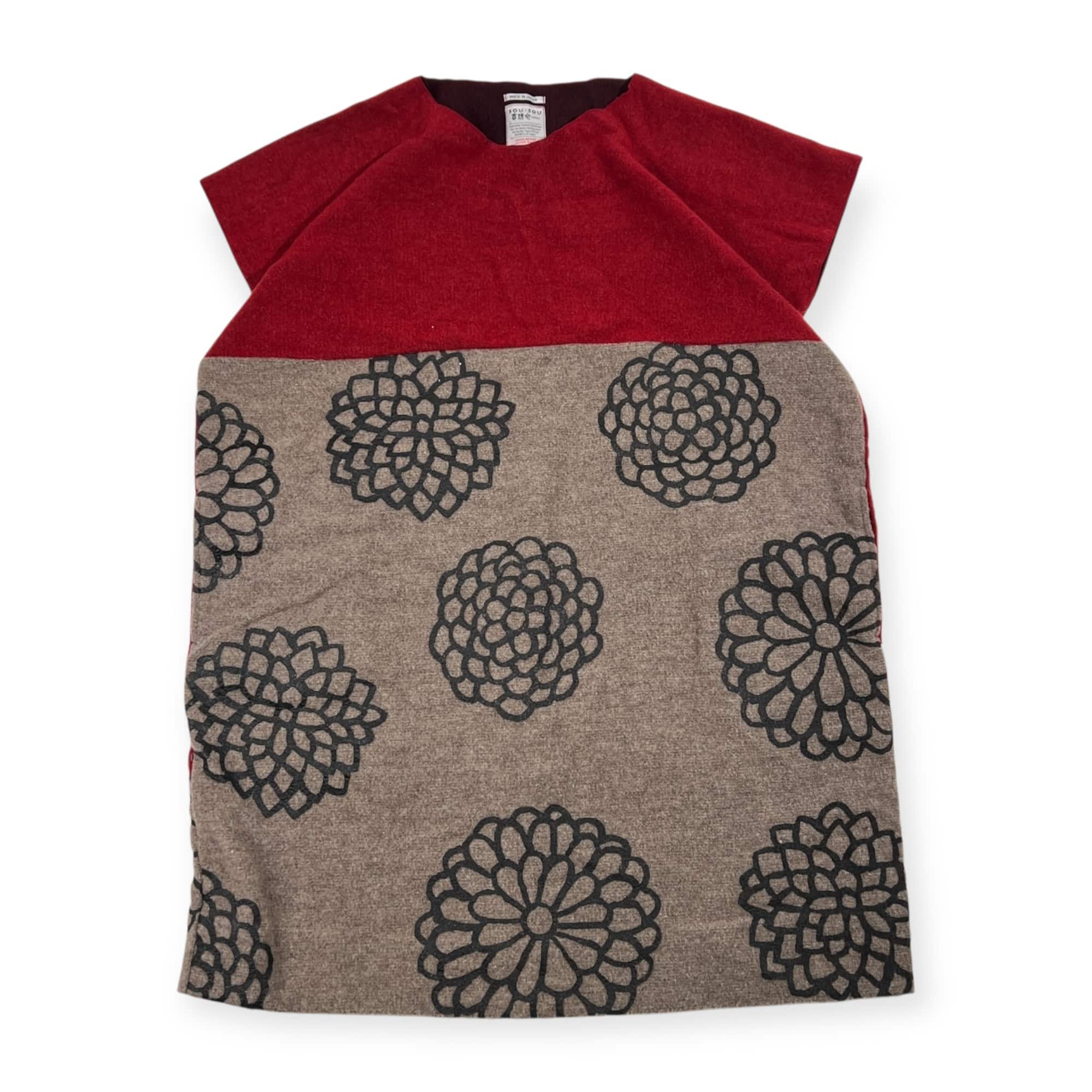 SOU・SOU ソウソウ 花柄 長方形 貫頭衣 ワンピース/レッド×グレー レディース