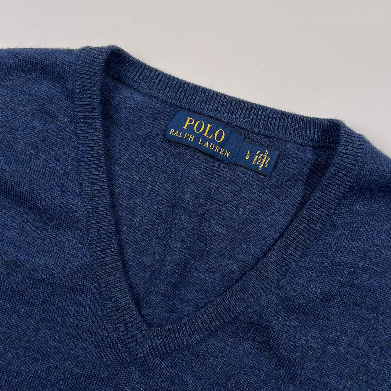 POLO RALPH LAUREN ラルフローレン Vネック ウール ニット セーター L/ブルー ネイビー系 メンズ