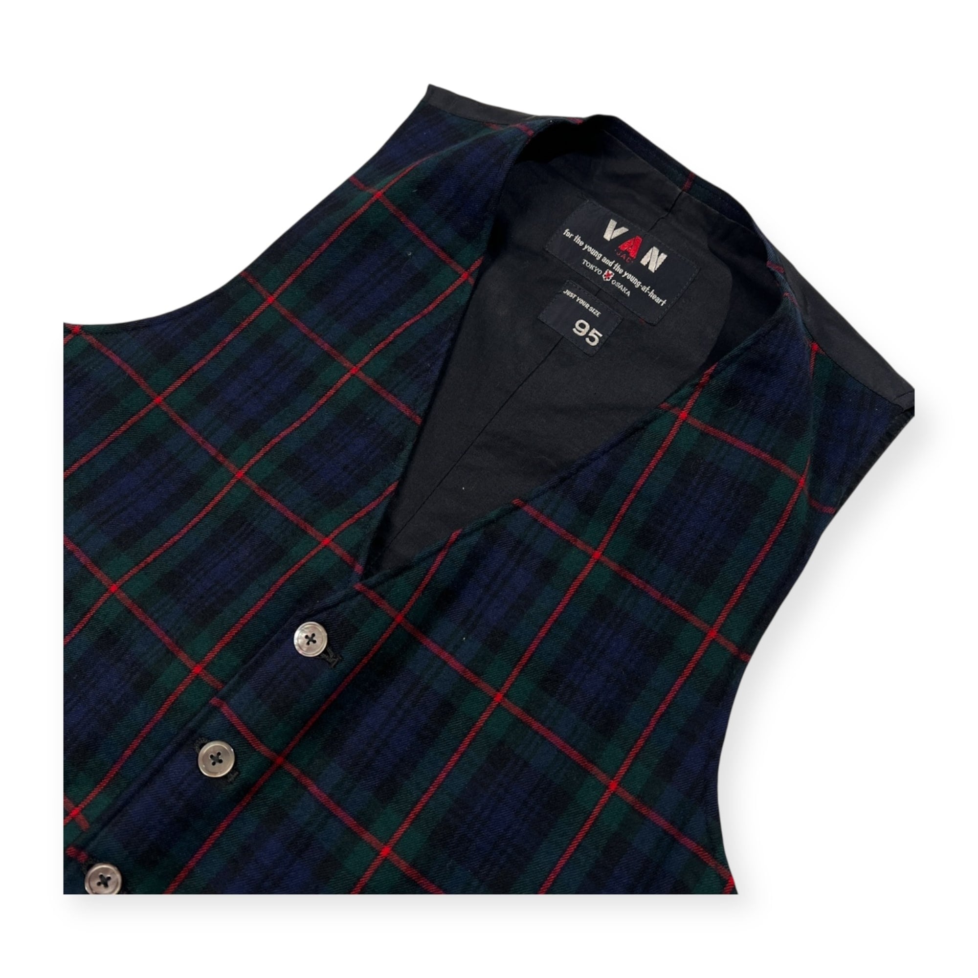 70s VAN JAC ヴァンヂャケット チェック ジレ ベスト 95 /ビンテージ/ネイビー×グリーン×レッド