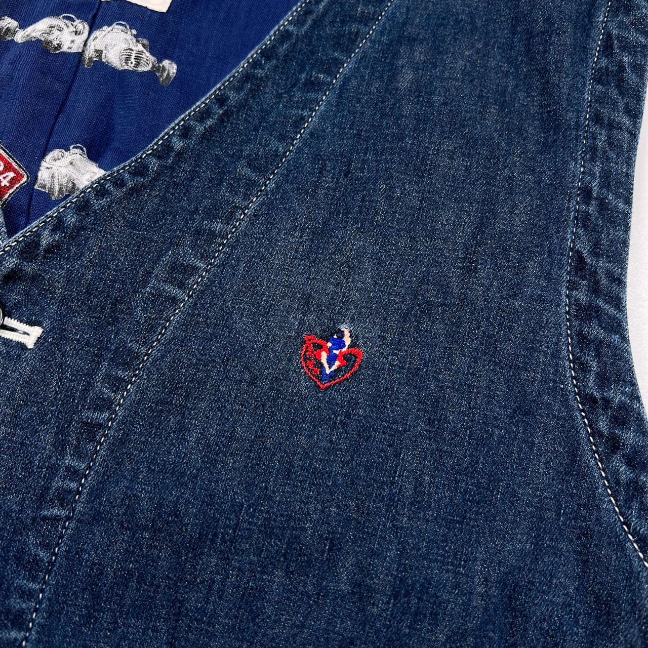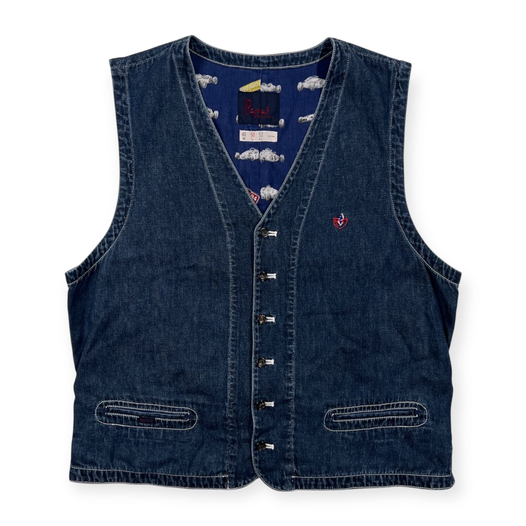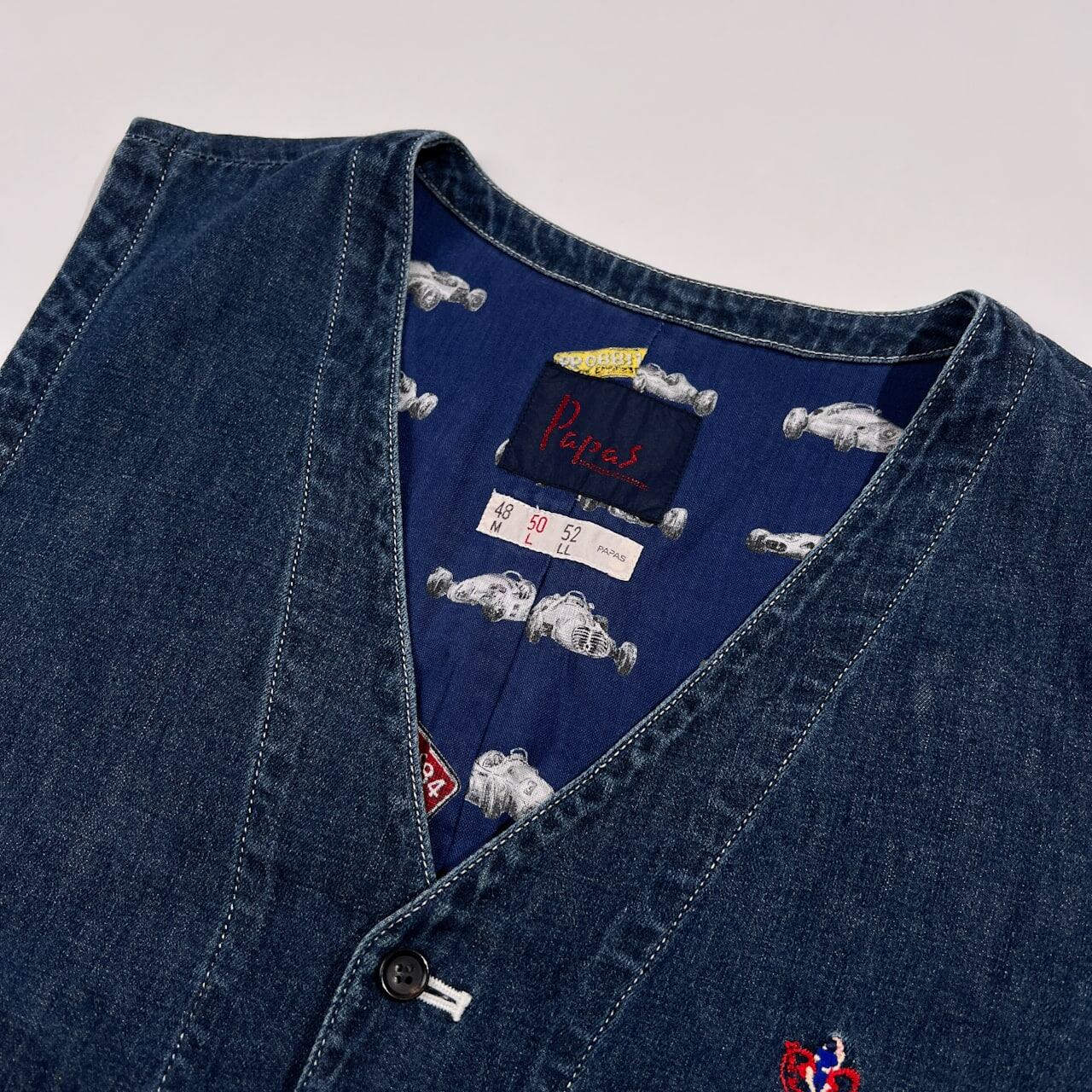 Papas パパス 裏地総柄 コットン リネン デニム ジレ ベスト サイズ 50 L /インディゴ系