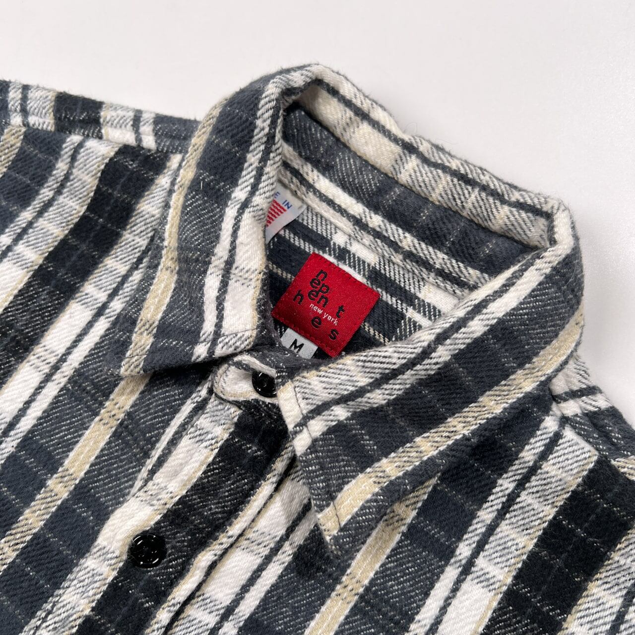 USA製 NEPENTHES ネペンテス チェック 長袖 ネルシャツ サイズ M /アメリカ製/ホワイト×ブラック系×ベージュ系