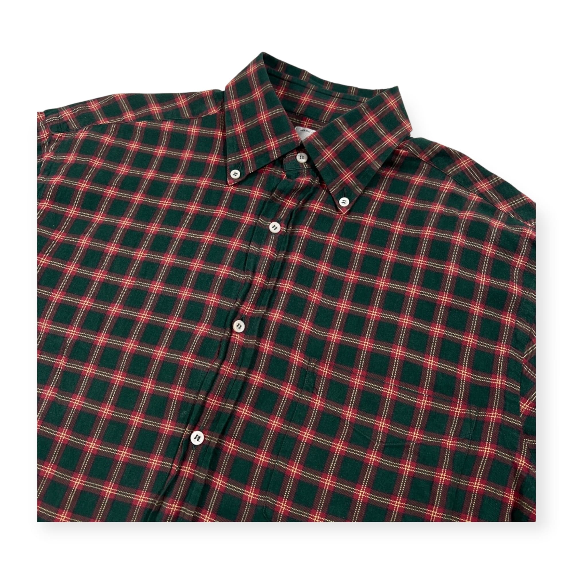 イタリア製 GUY ROVER ギローバー チェック 長袖シャツ Lサイズ /ボタンダウン ドレスシャツ/グリーン×レッド/ビンテージ