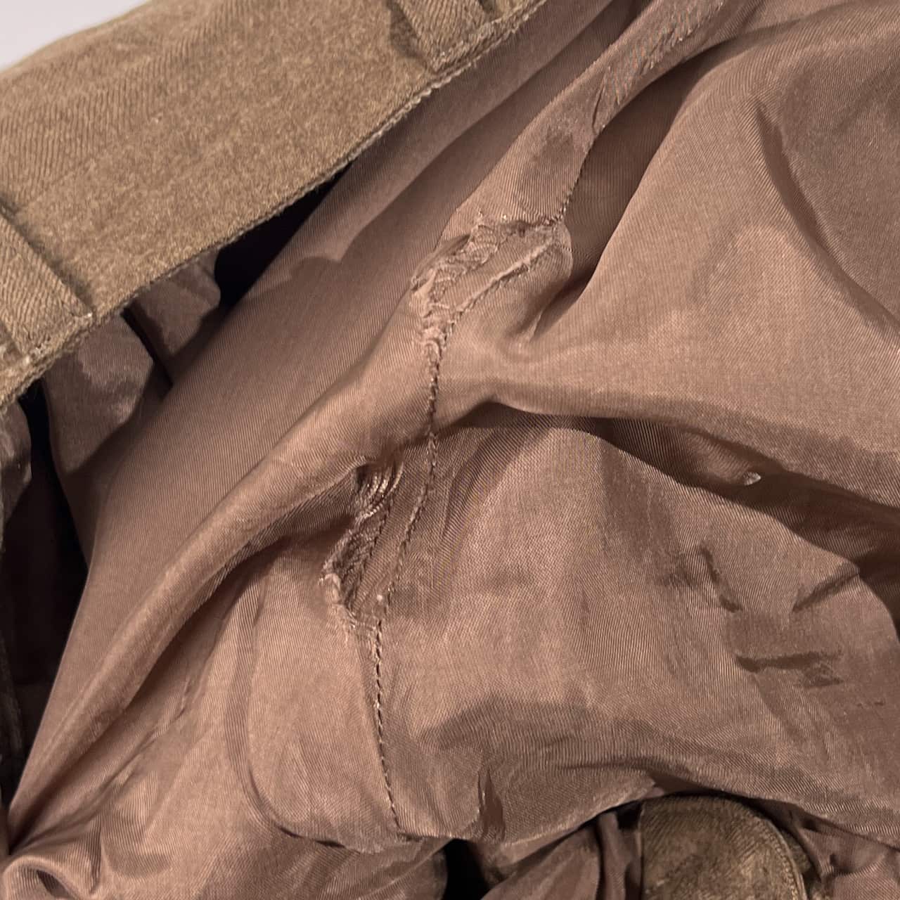 身頃にいくつかのうすよごれ、裏地にダメージがあります。コンデションについての詳細は画像をご参照ください。