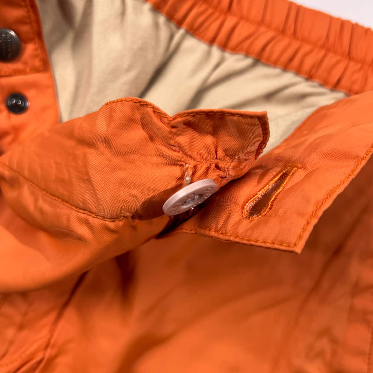 ウエストのボタンが取れかけております。身頃にいくつかのうすよごれがあります。コンデションについての詳細は画像をご参照ください。