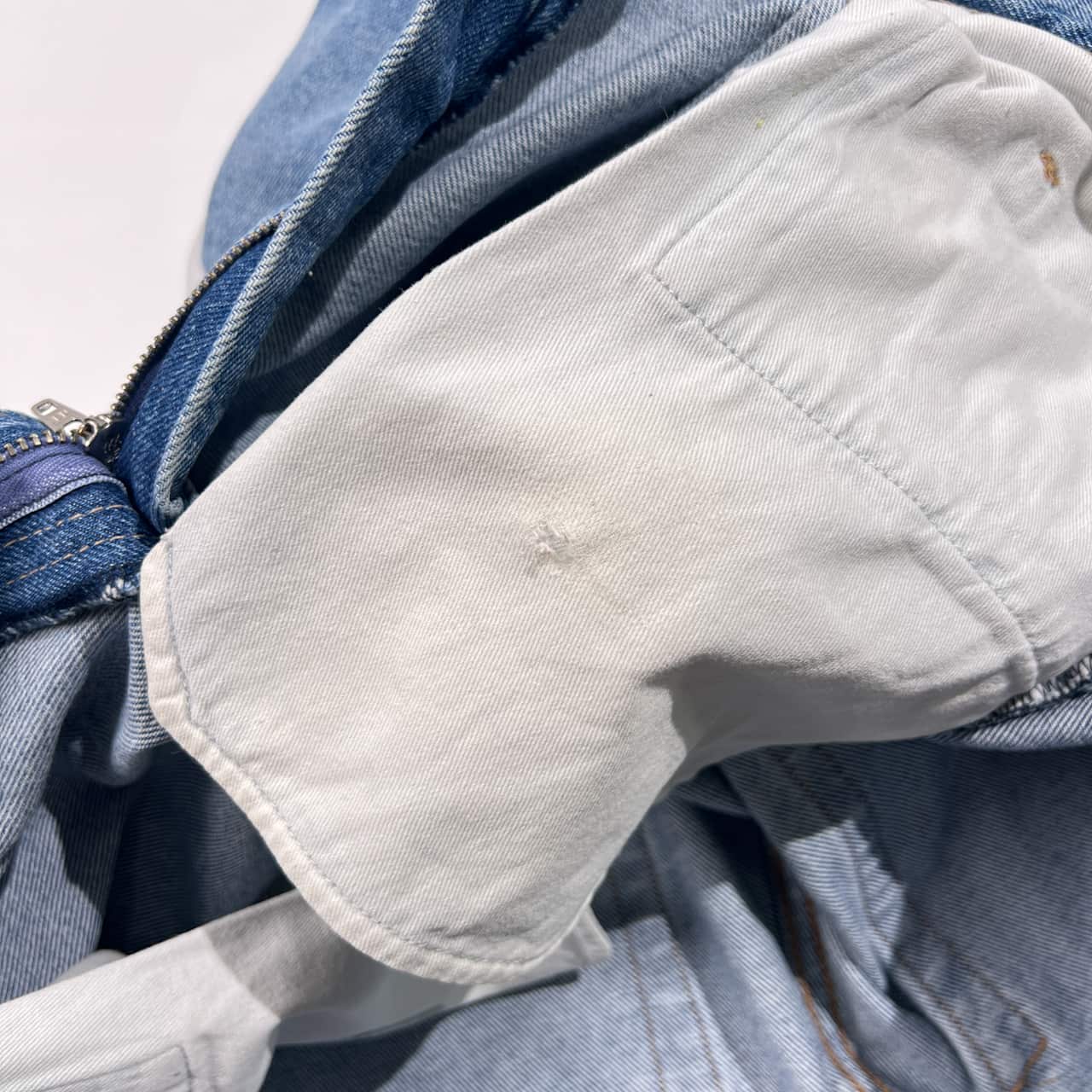 デニム特有の使用感、うすよごれ、ポケットの裏地にあなが空いておりますが、まだまだご着用していただけます。コンデションについての詳細は画像をご参照ください。