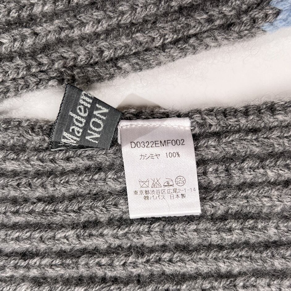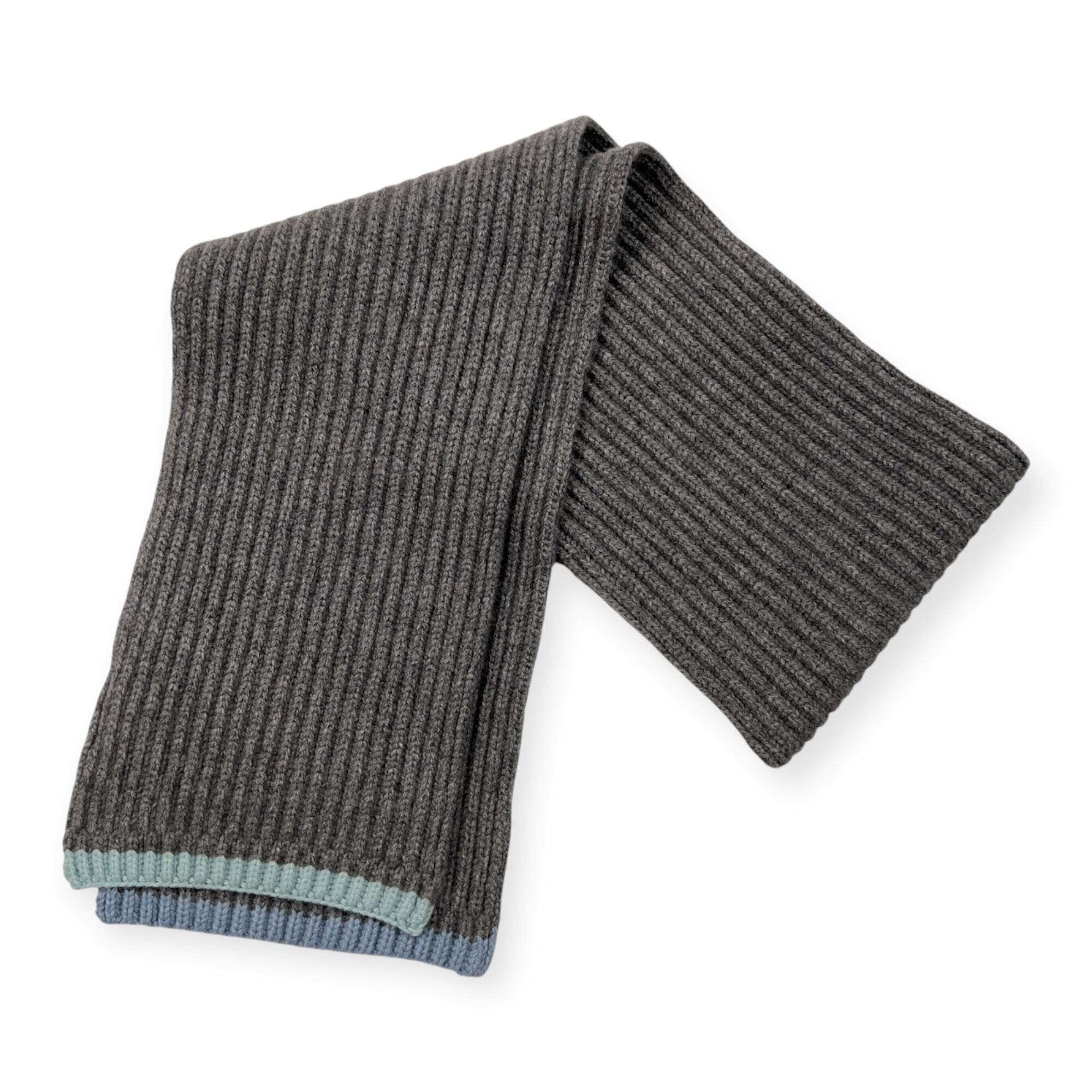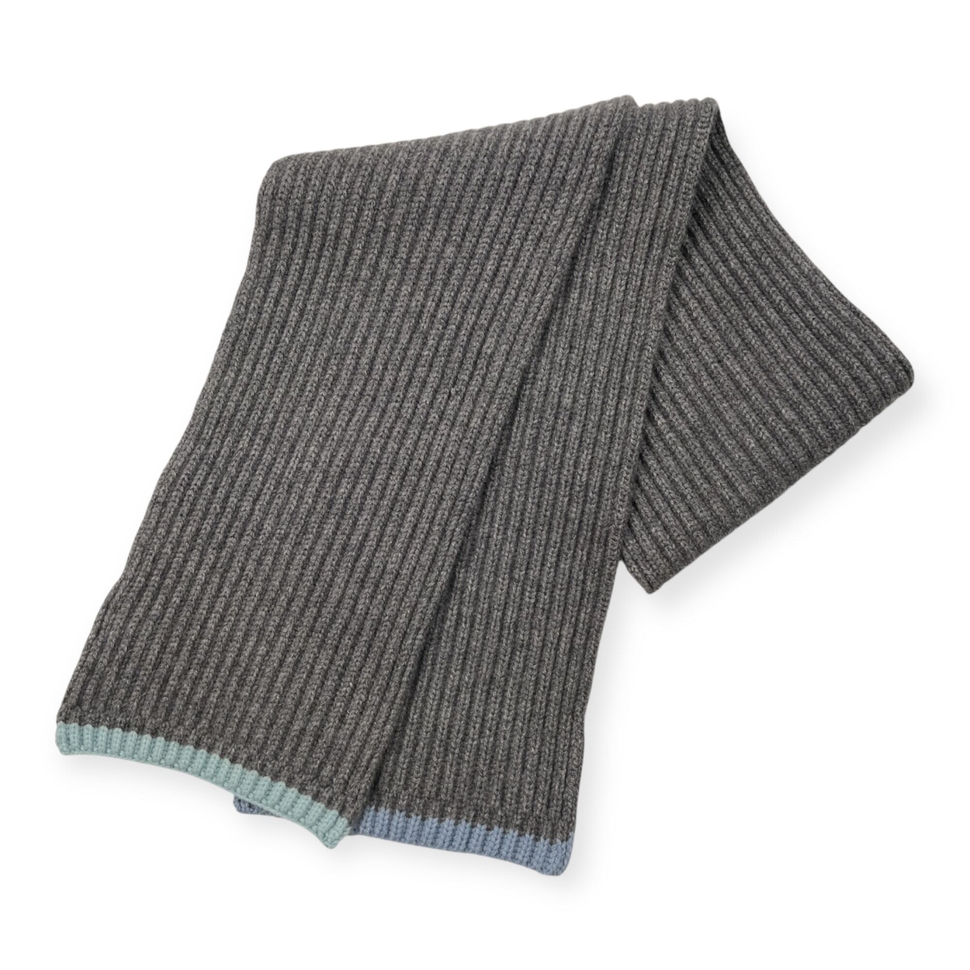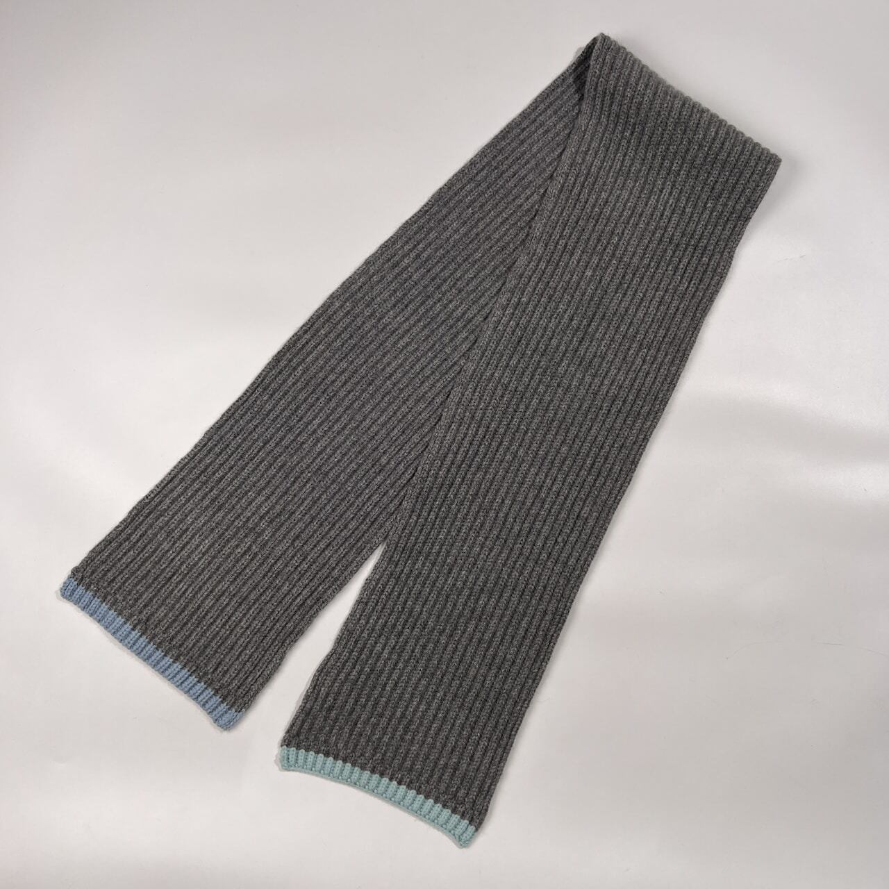 カシミヤ100% Mademoiselle NON NON マドモアゼルノンノン カラー入り ニット マフラー /グレー/日本製/パパス/水色×グレー