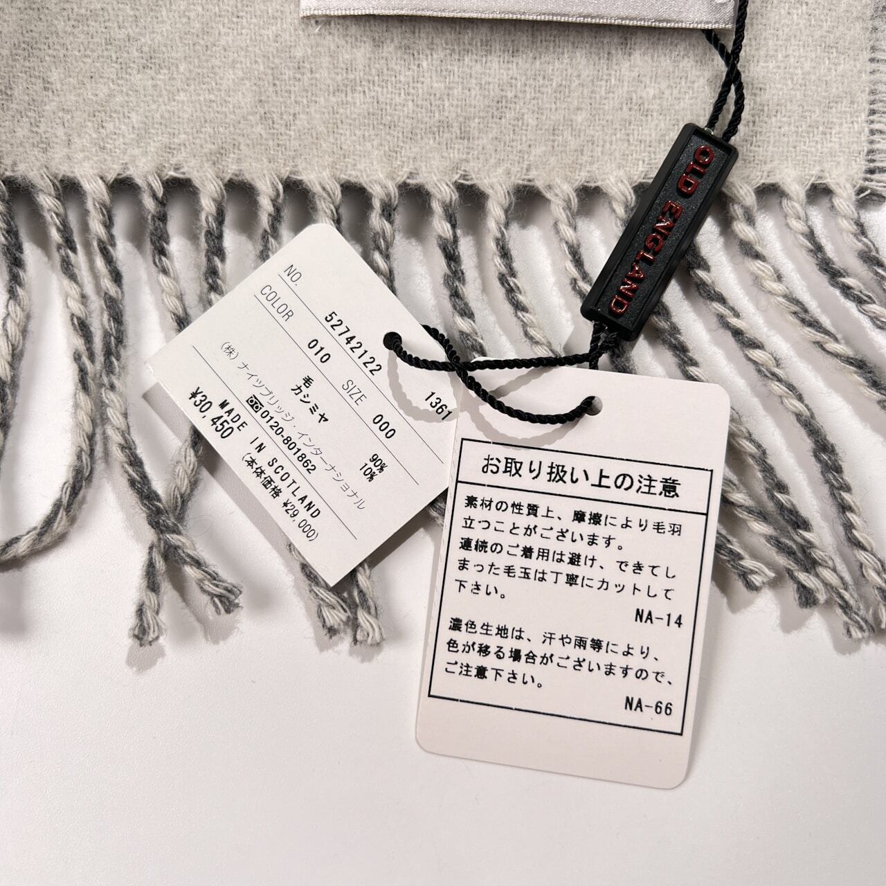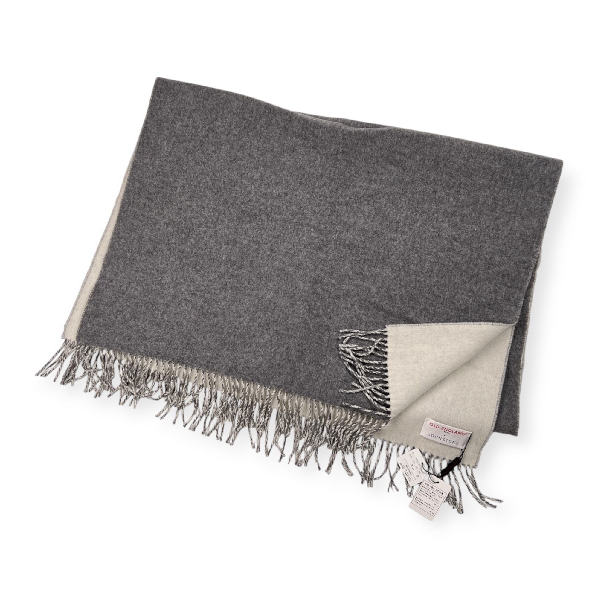タグ付き 未使用品 カシミヤ混 OLD ENGLAND × JOHNSTONS OF ELGIN ジョンストンズ オールドイングランド 大判 マフラー/スコットランド製