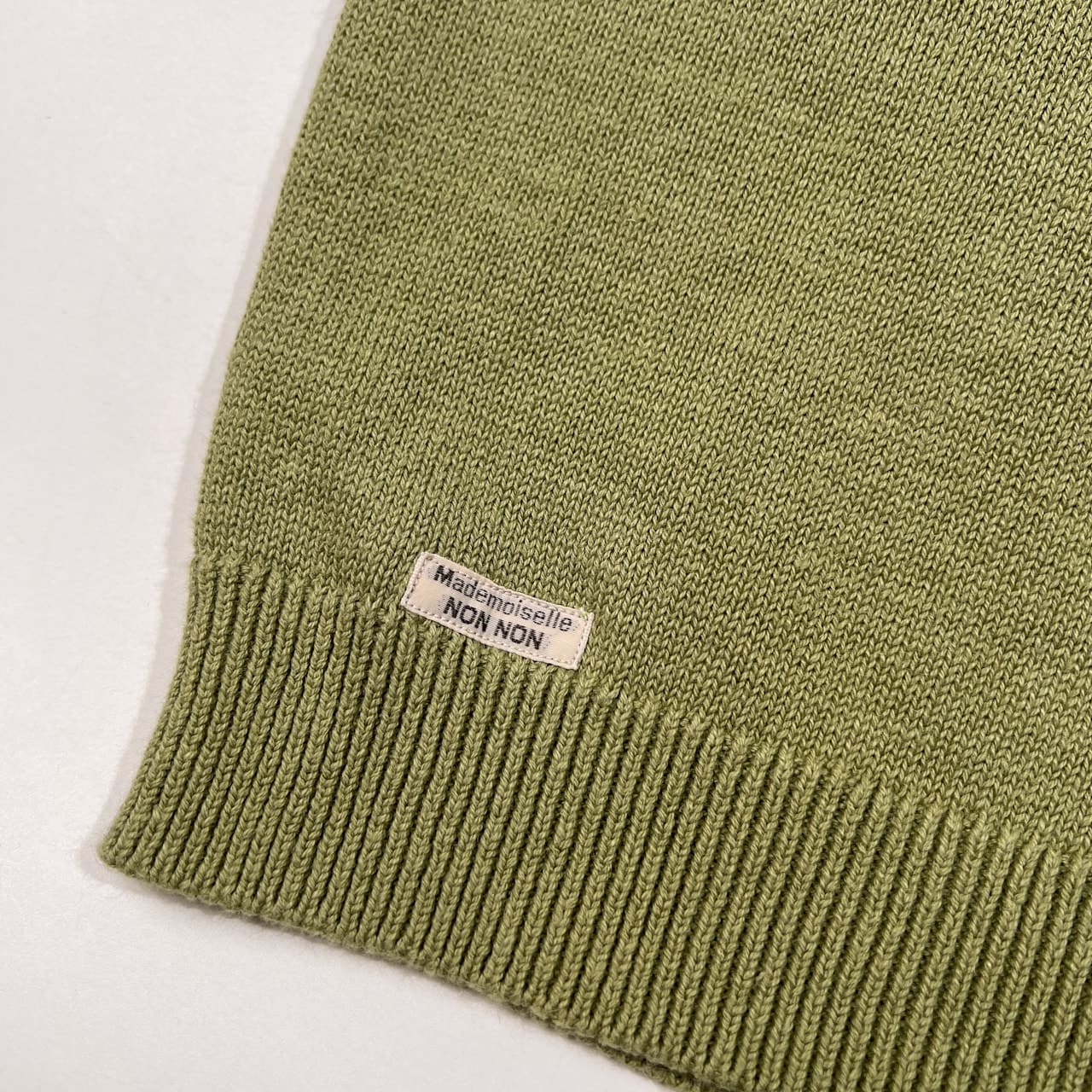 Mademoiselle NON NON マドモアゼルノンノン コットン リネン ニット 半袖 カーディガン サイズ M /グリーン/レディース