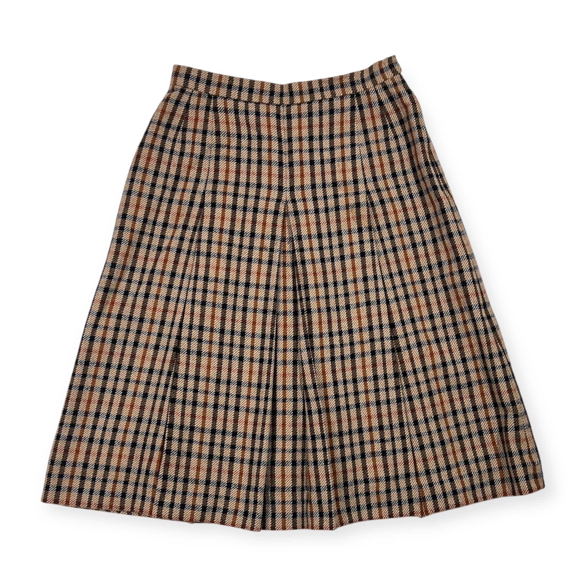 DAKS ダックス チェック ウール プリーツ スカート 72-96/ブラウン系 レディース