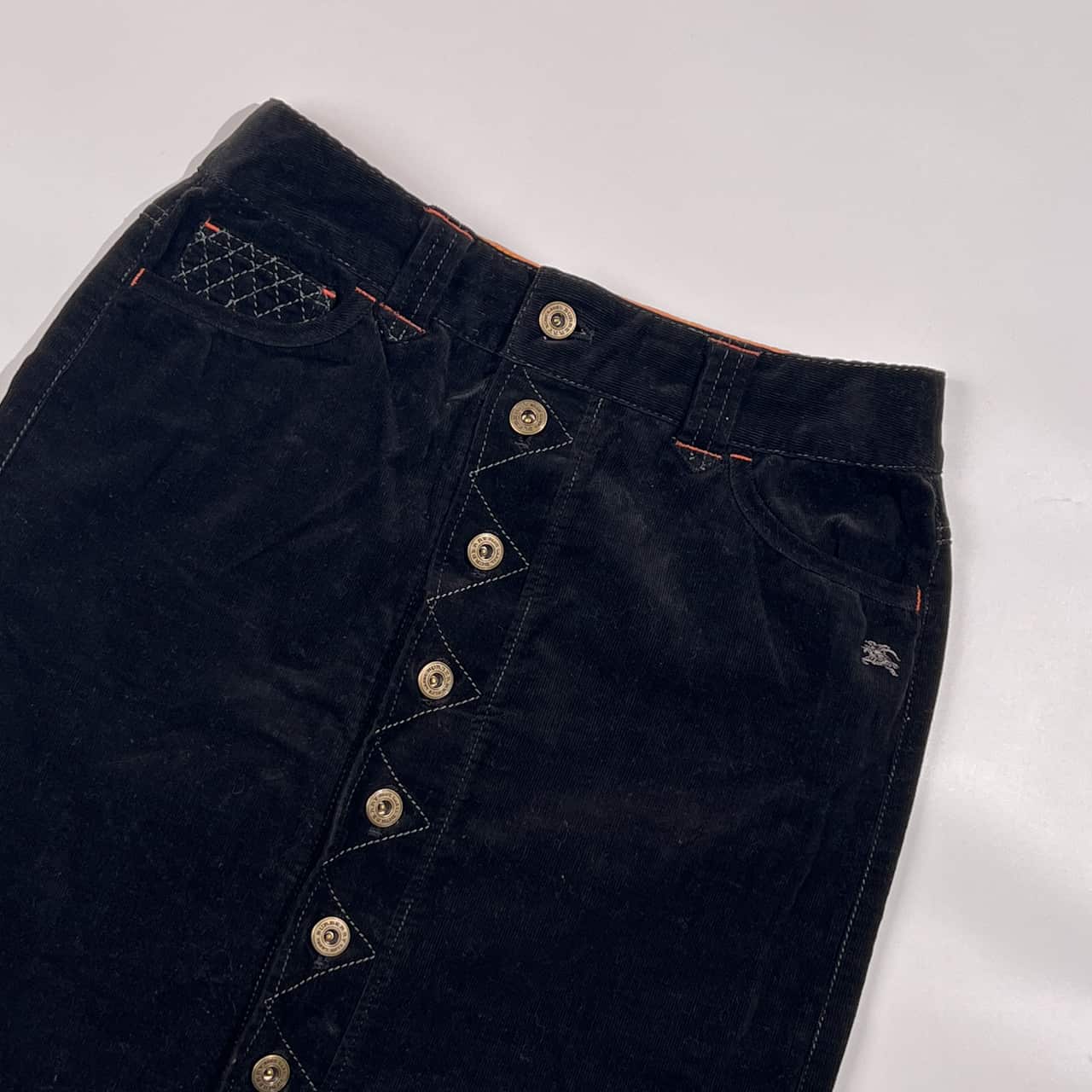 90s BURBERRY BLUE LABEL バーバリーブルーレーベル コーデュロイ タイト 膝丈 スカート 36/ブラック レディース 三陽商会 ビンテージ
