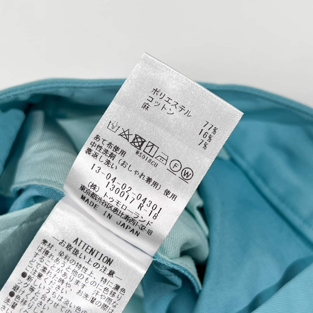 ・表地:ポリエステル 77%, コットン 16%, 麻 7%