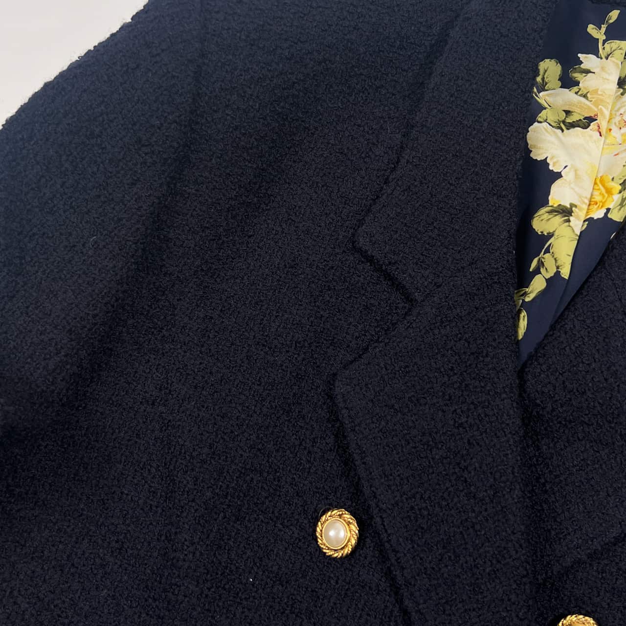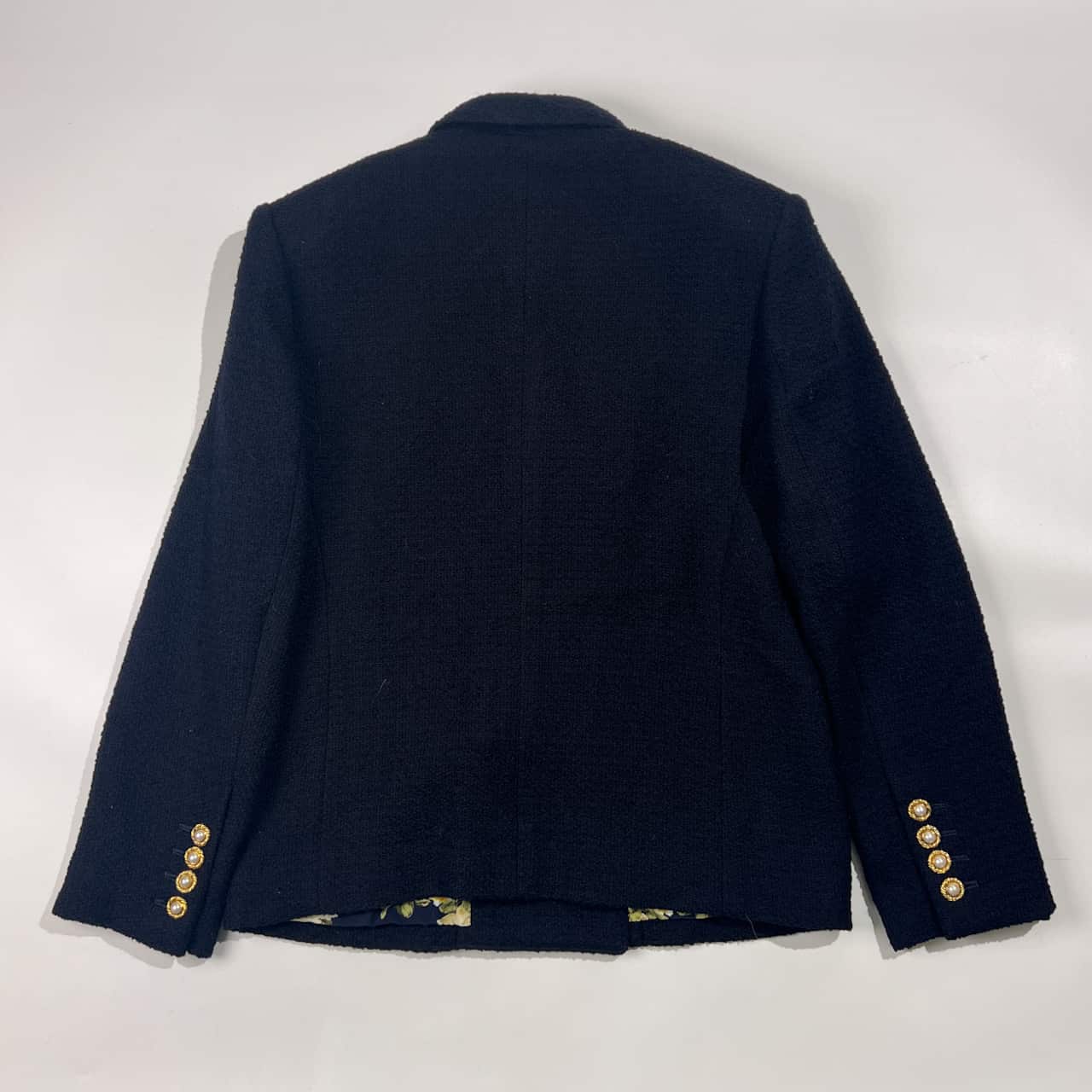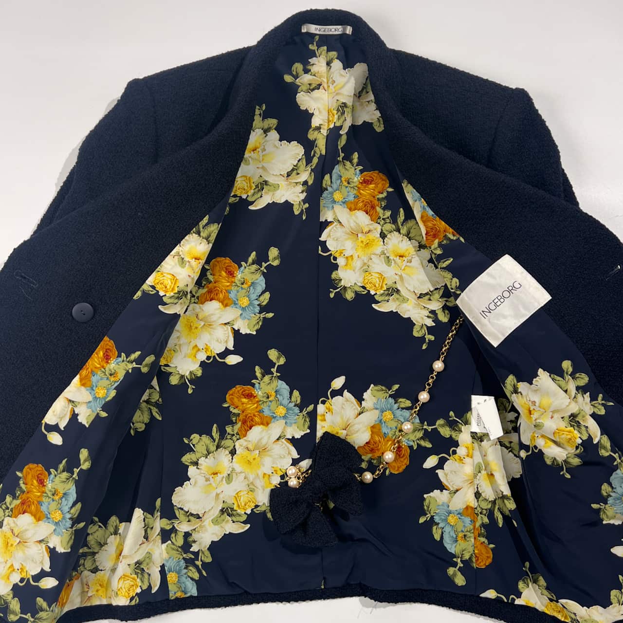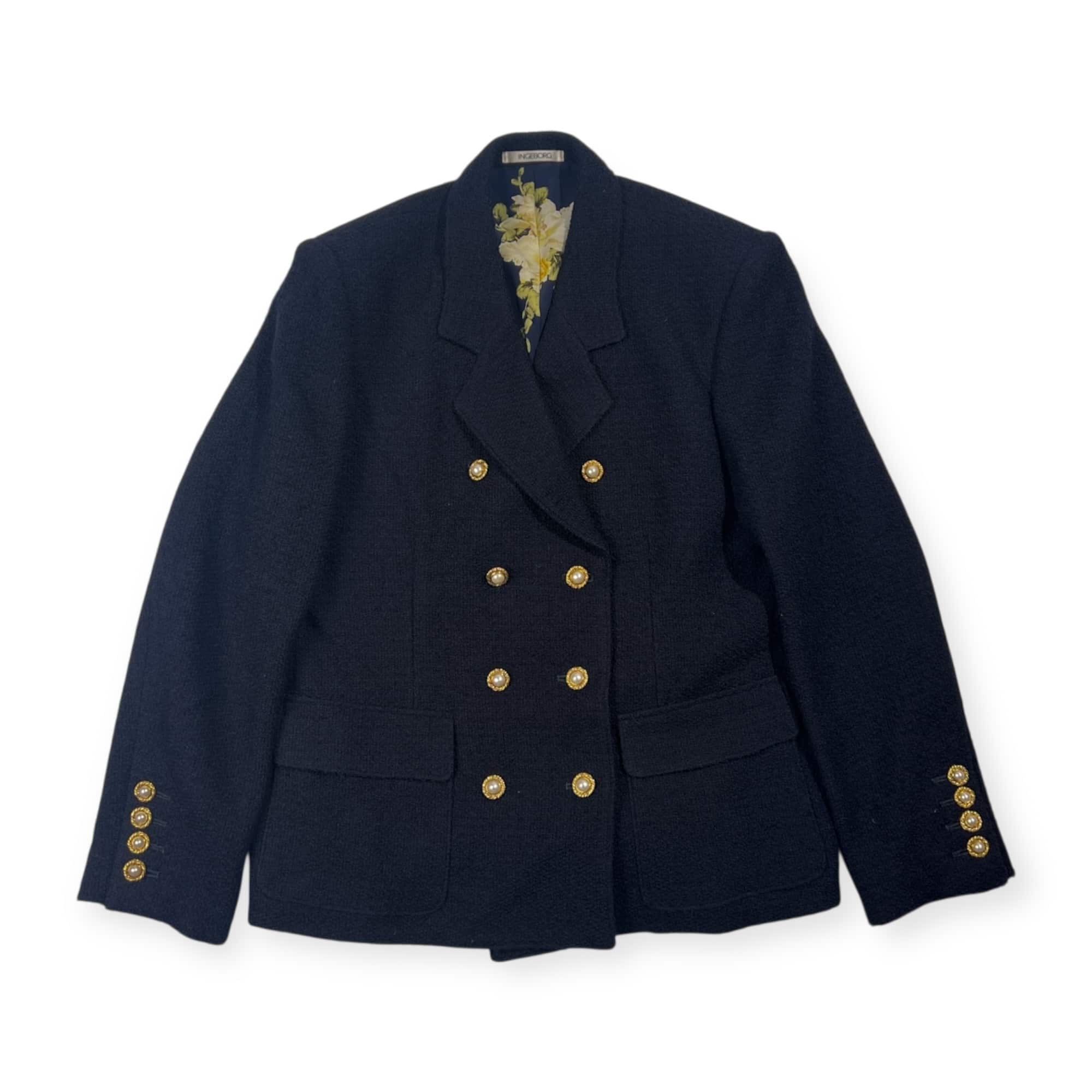 上下 INGEBORG インゲボルグ セットアップ 裏地花柄 金ボタン ウール ダブル ジャケット スカート M/ ネイビー レディース