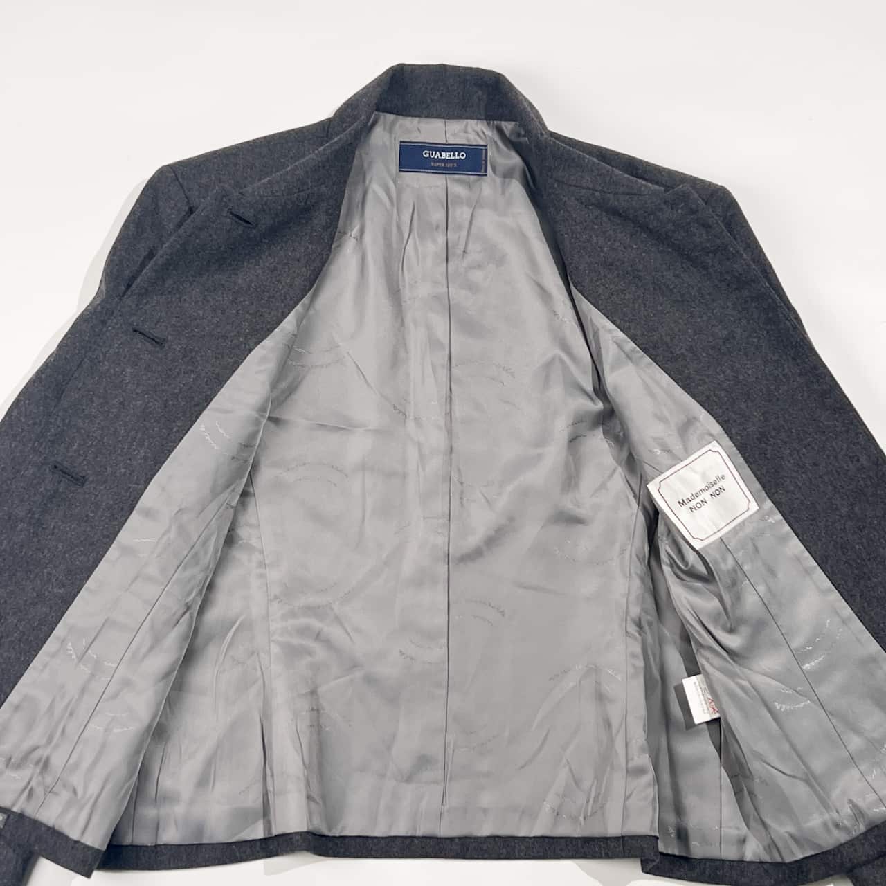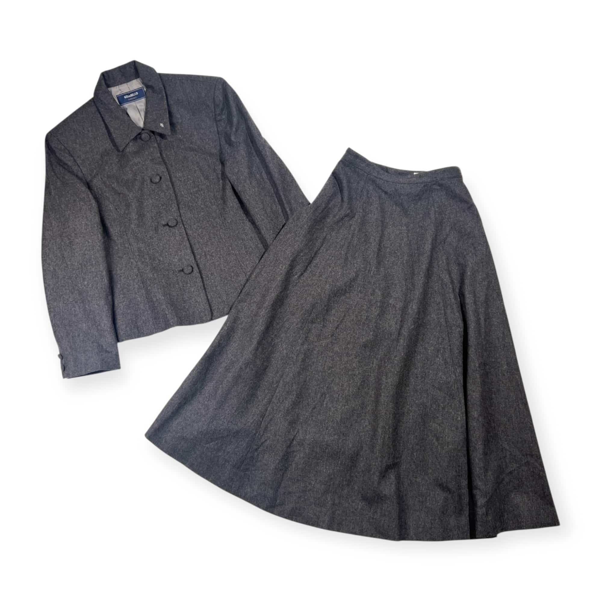 上下 Mademoiselle NON NON マドモアゼルノンノン セットアップ GUABELLO SUPER 120'S イタリア生地 カシミヤ混 ウール ジャケット スカート スーツ M/グレー系