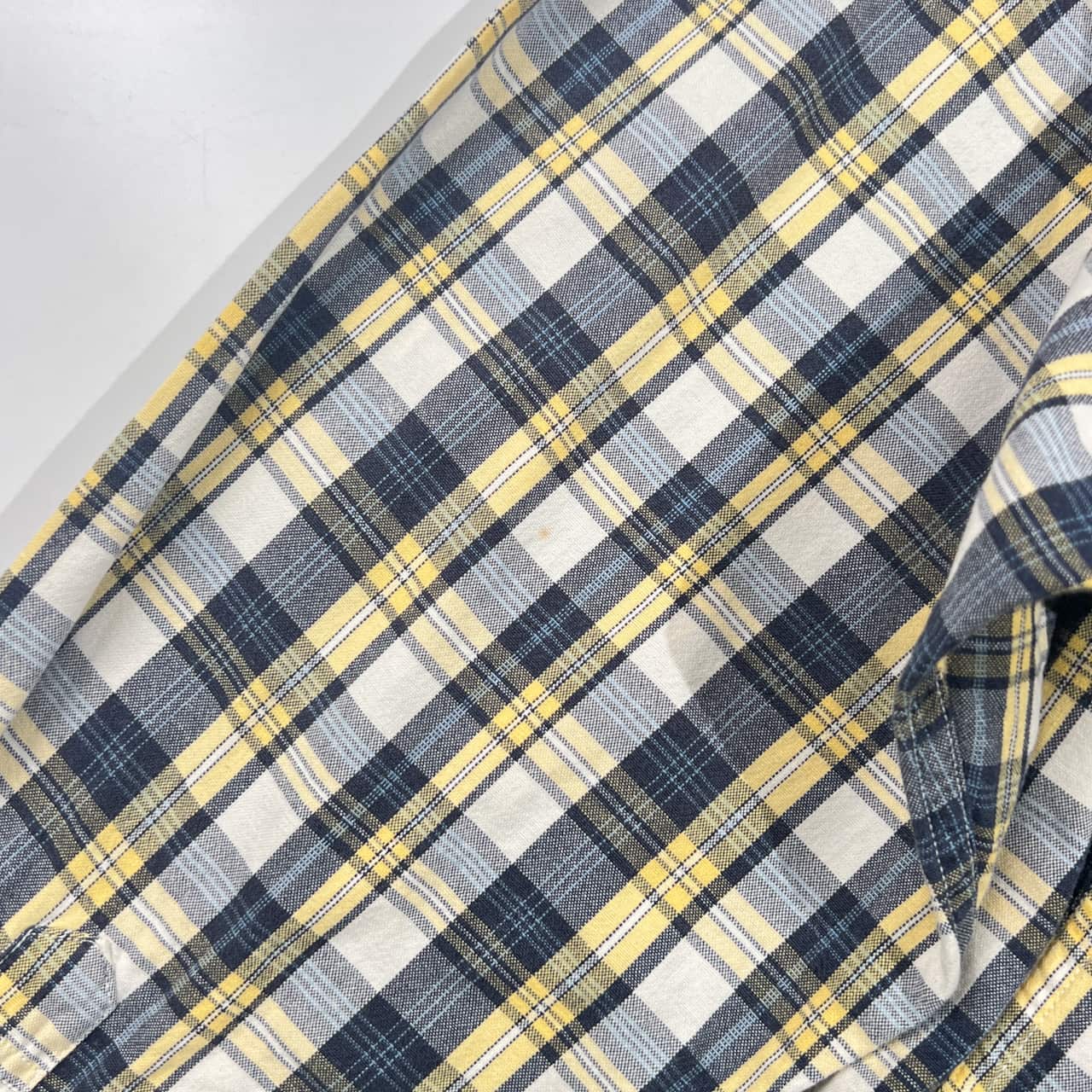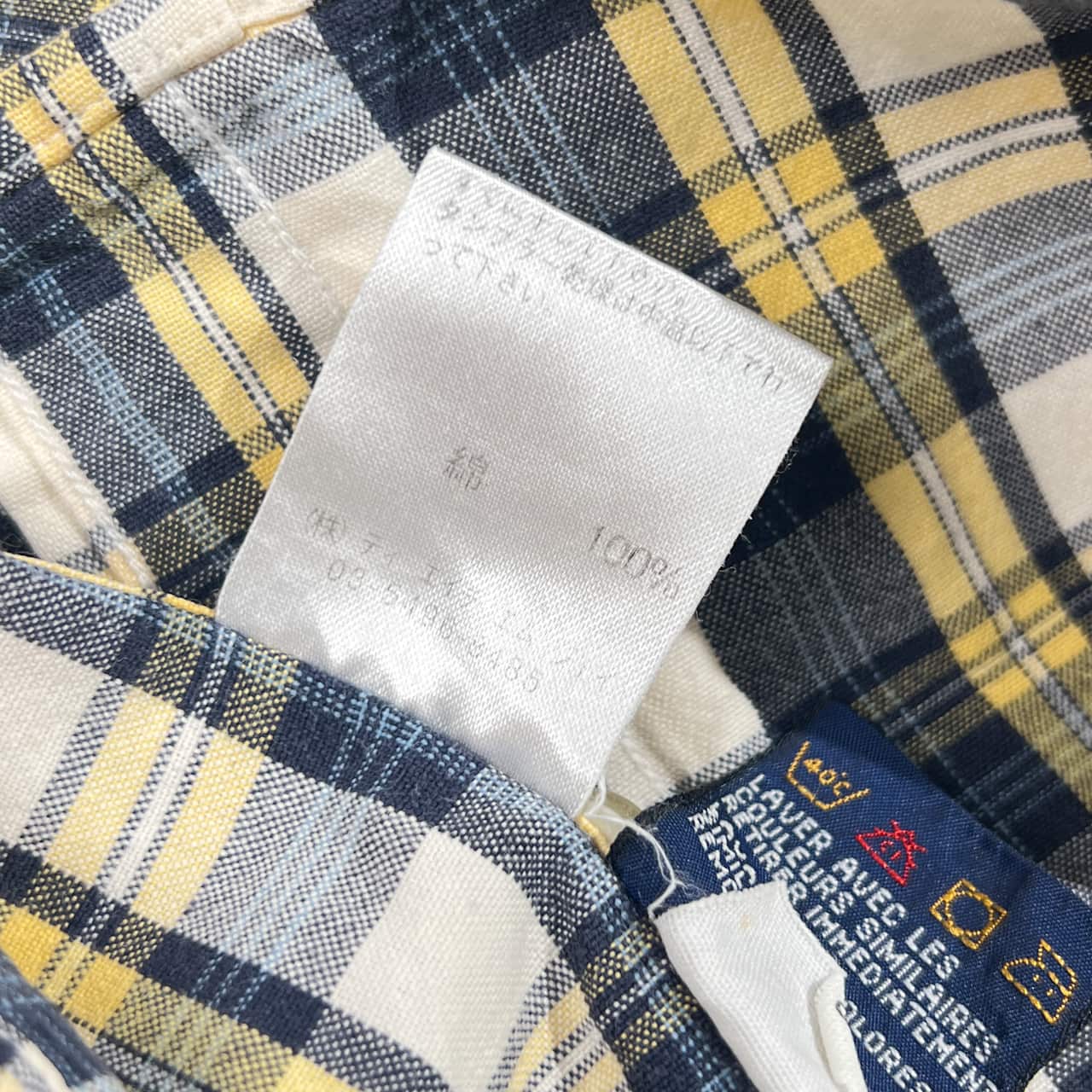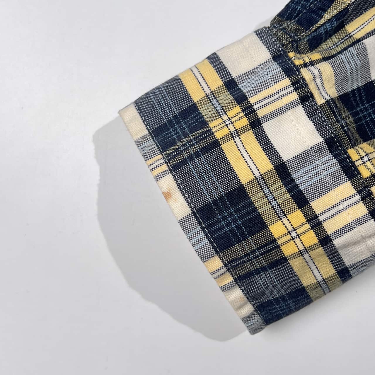 90s TOMMY HILFIGER トミーヒルフィガー フラッグ刺繍 チェック柄 オックスフォード 長袖シャツ S/イエロー系 メンズ ビンテージ