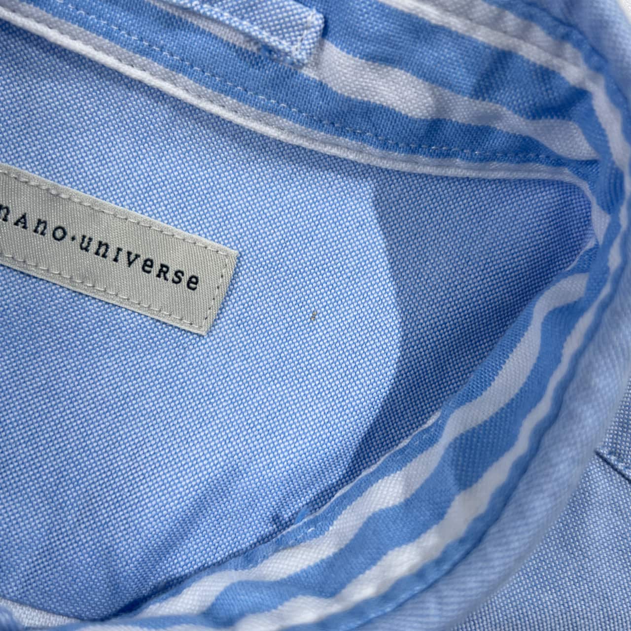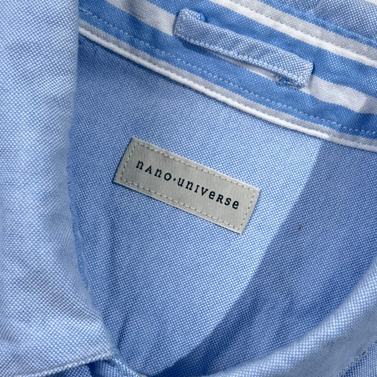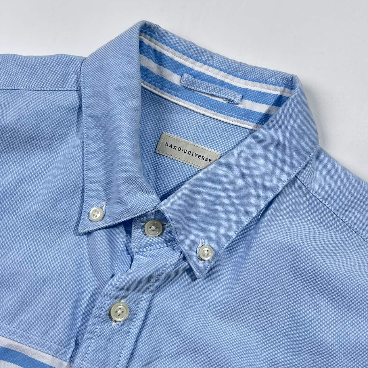 nano universe ナノユニバース 切替 ボーダー柄 オックスフォード BD ボタンダウン 長袖シャツ M/ブルー×ホワイト メンズ