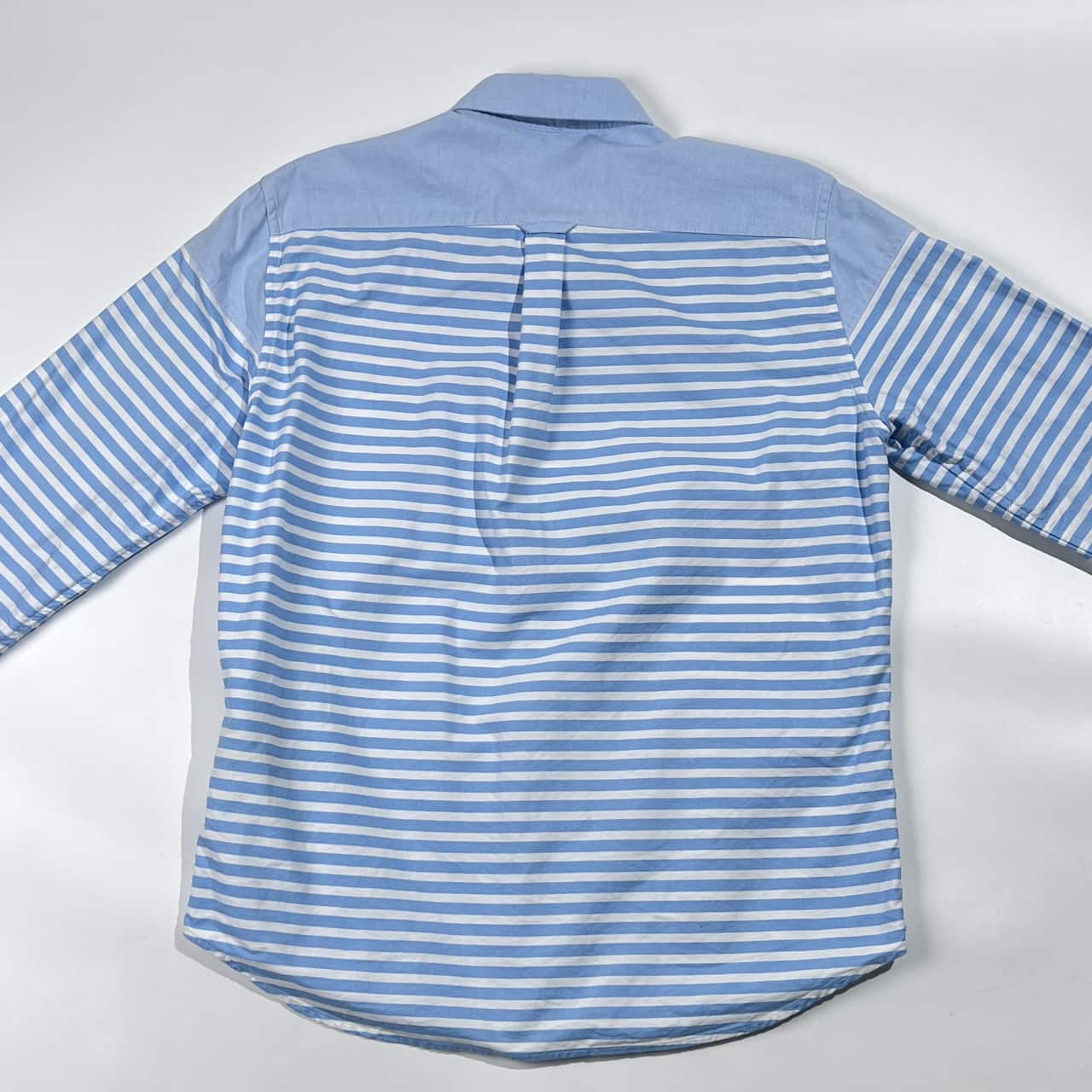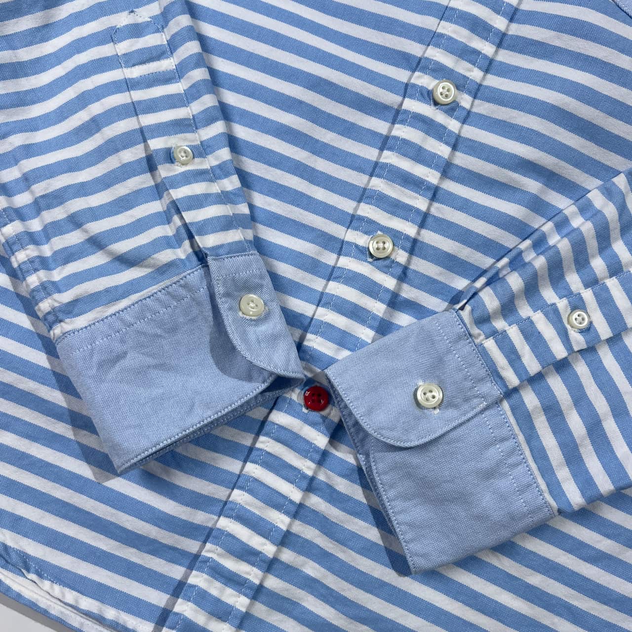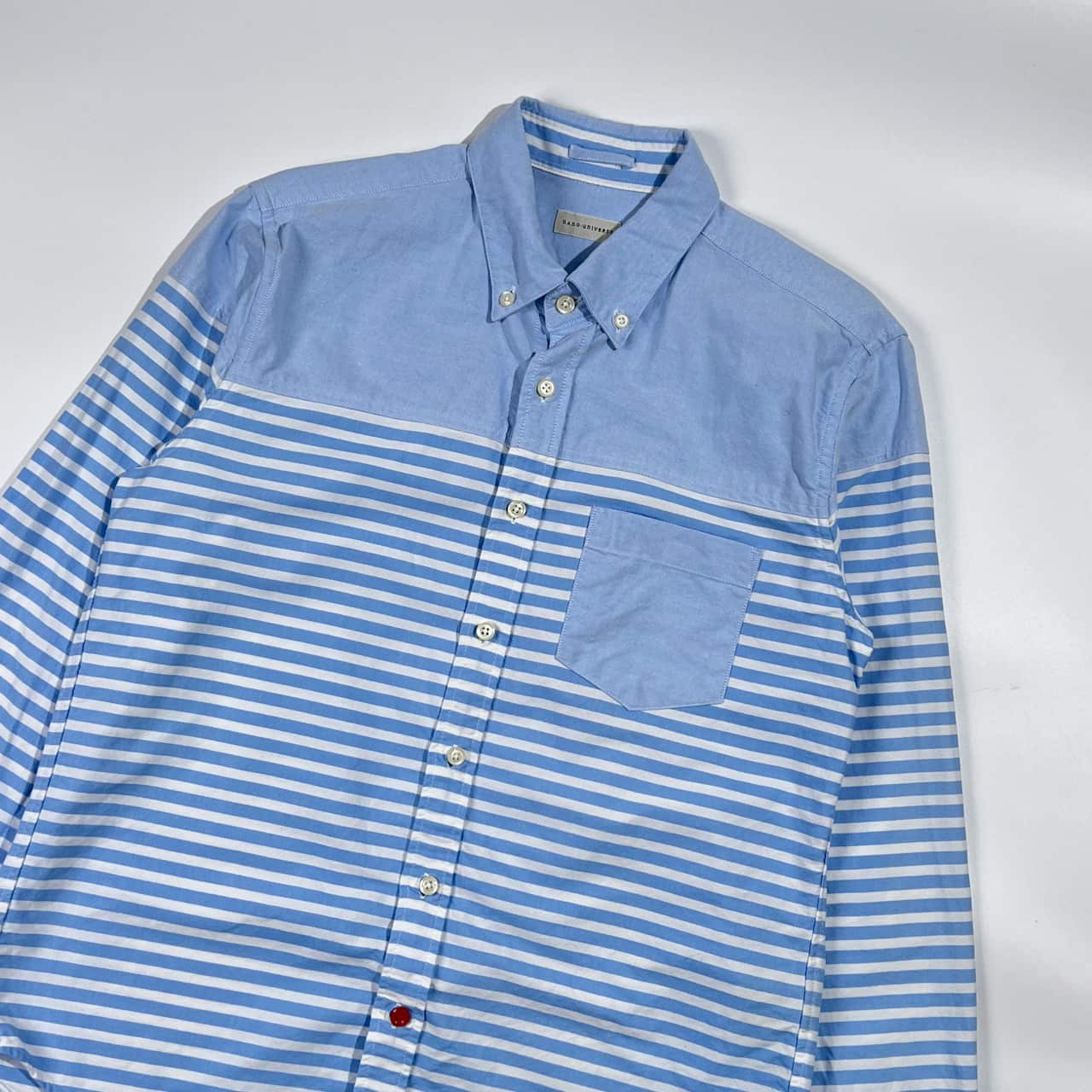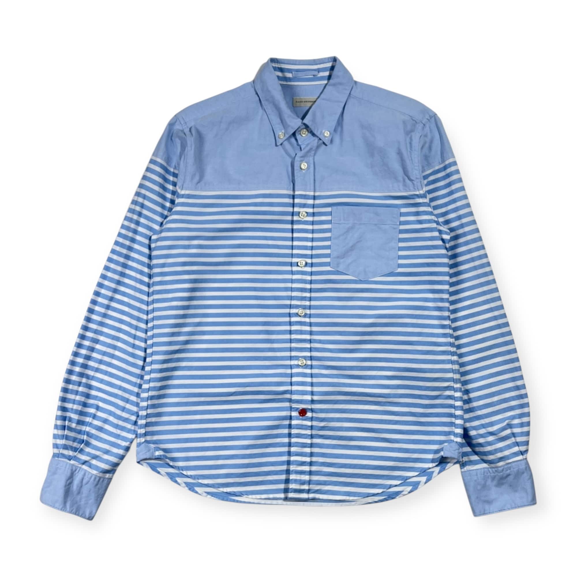 nano universe ナノユニバース 切替 ボーダー柄 オックスフォード BD ボタンダウン 長袖シャツ M/ブルー×ホワイト メンズ