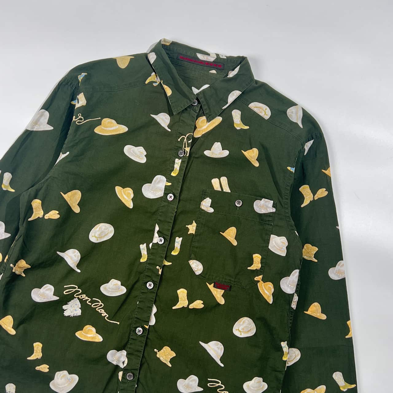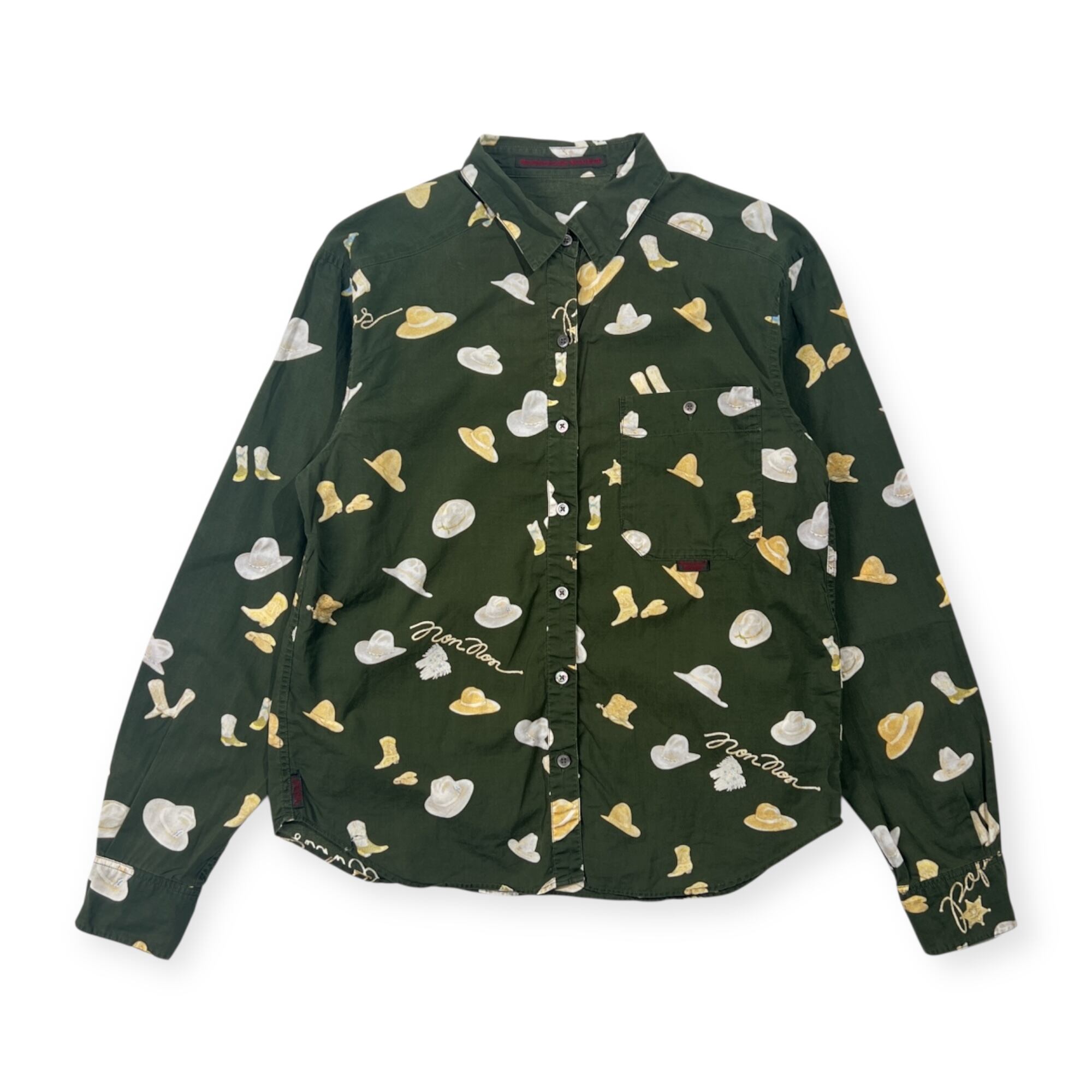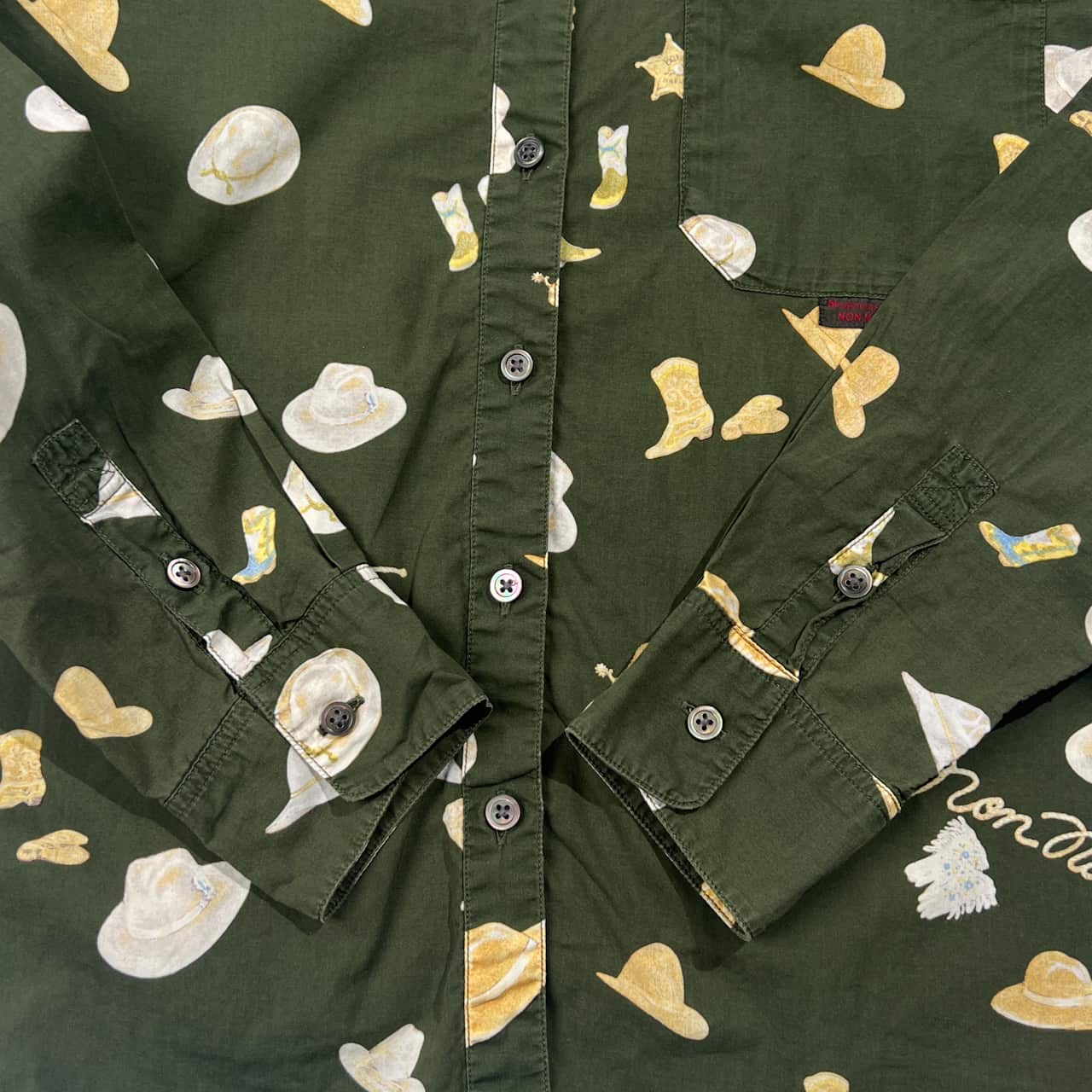 Mademoiselle NON NON マドモアゼルノンノン カウボーイ ハット 総柄 長袖シャツ M/ダークグリーン系 レディース 薄手