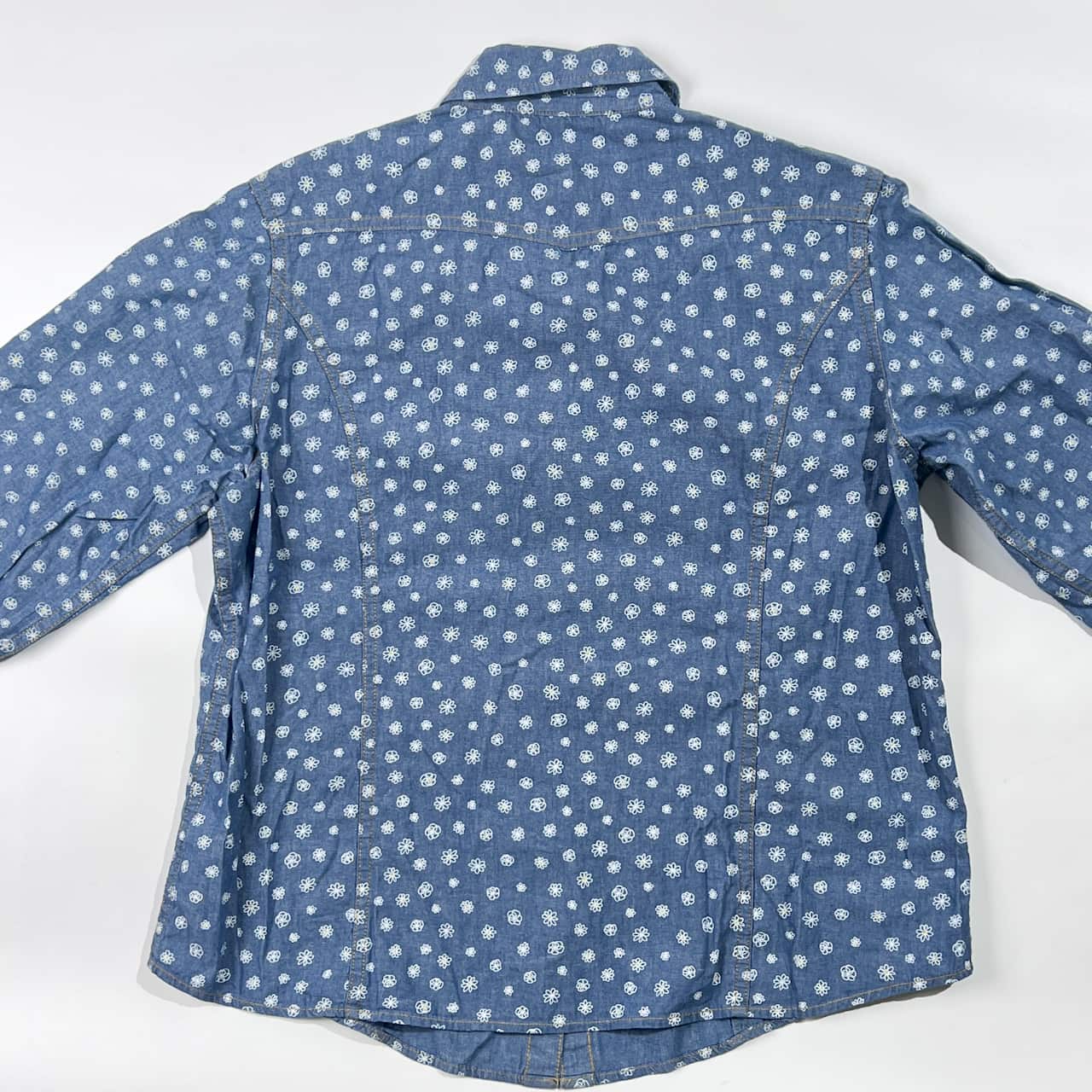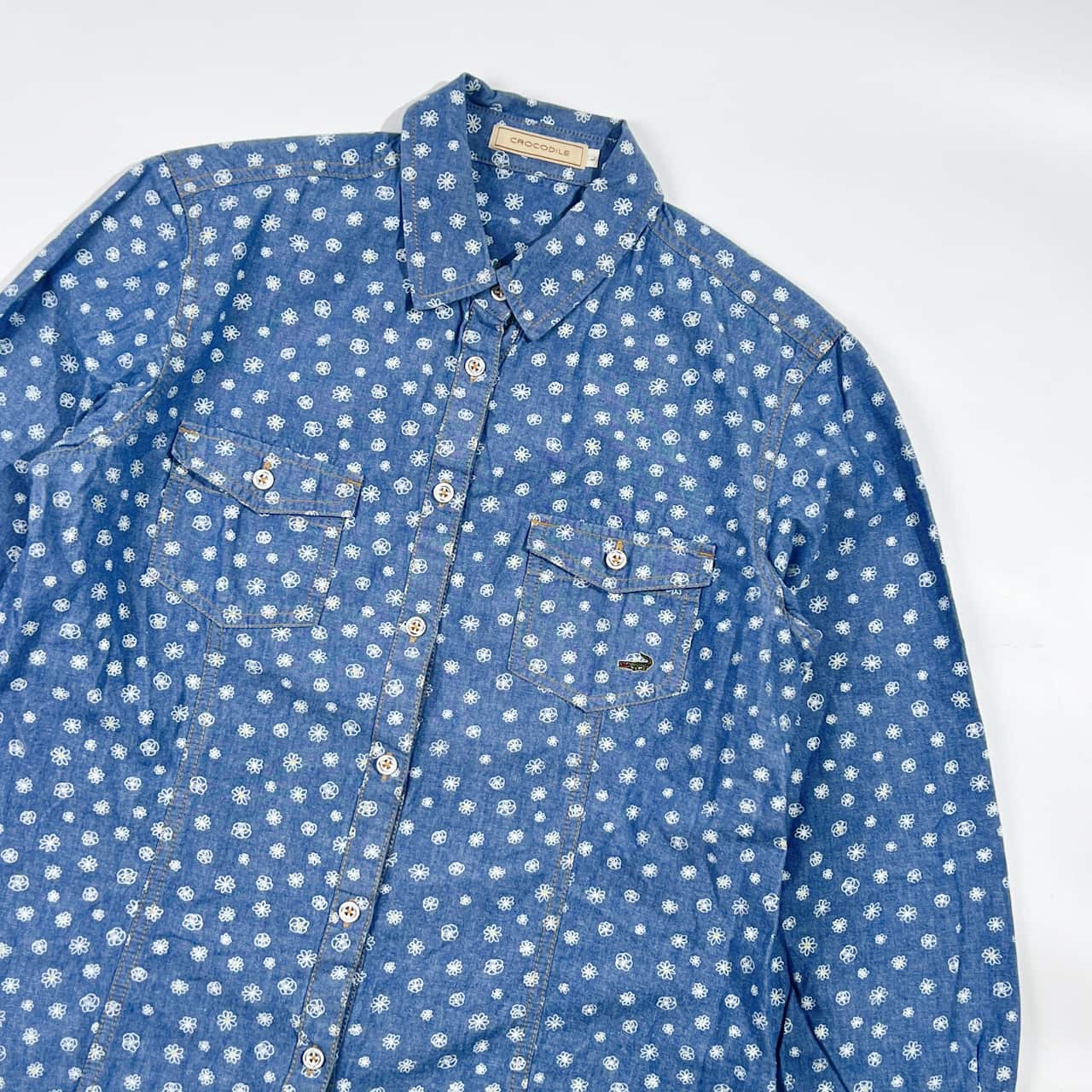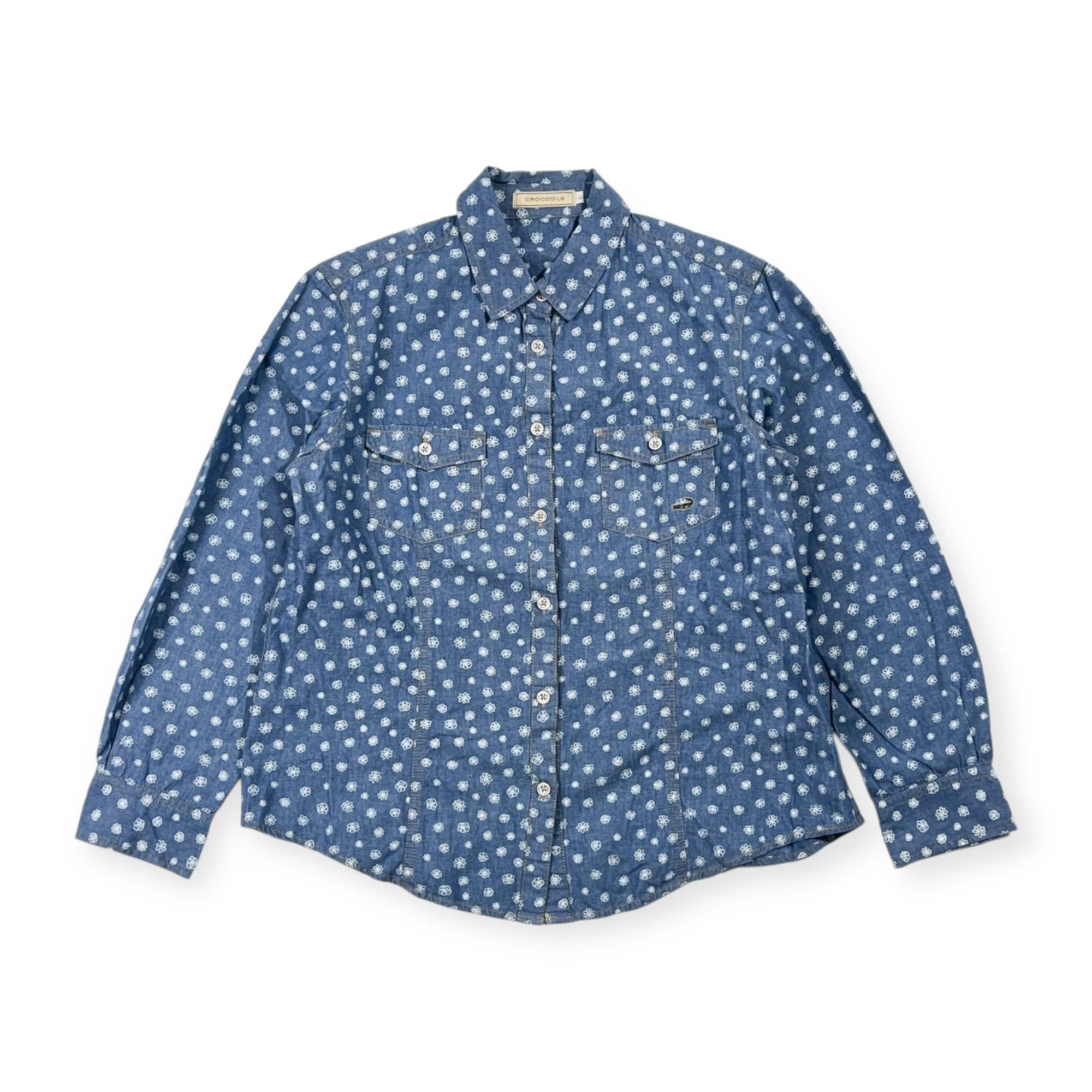 CROCODILE クロコダイル 花柄 総柄 シャンブレー 長袖シャツ Lブルー系 レディース