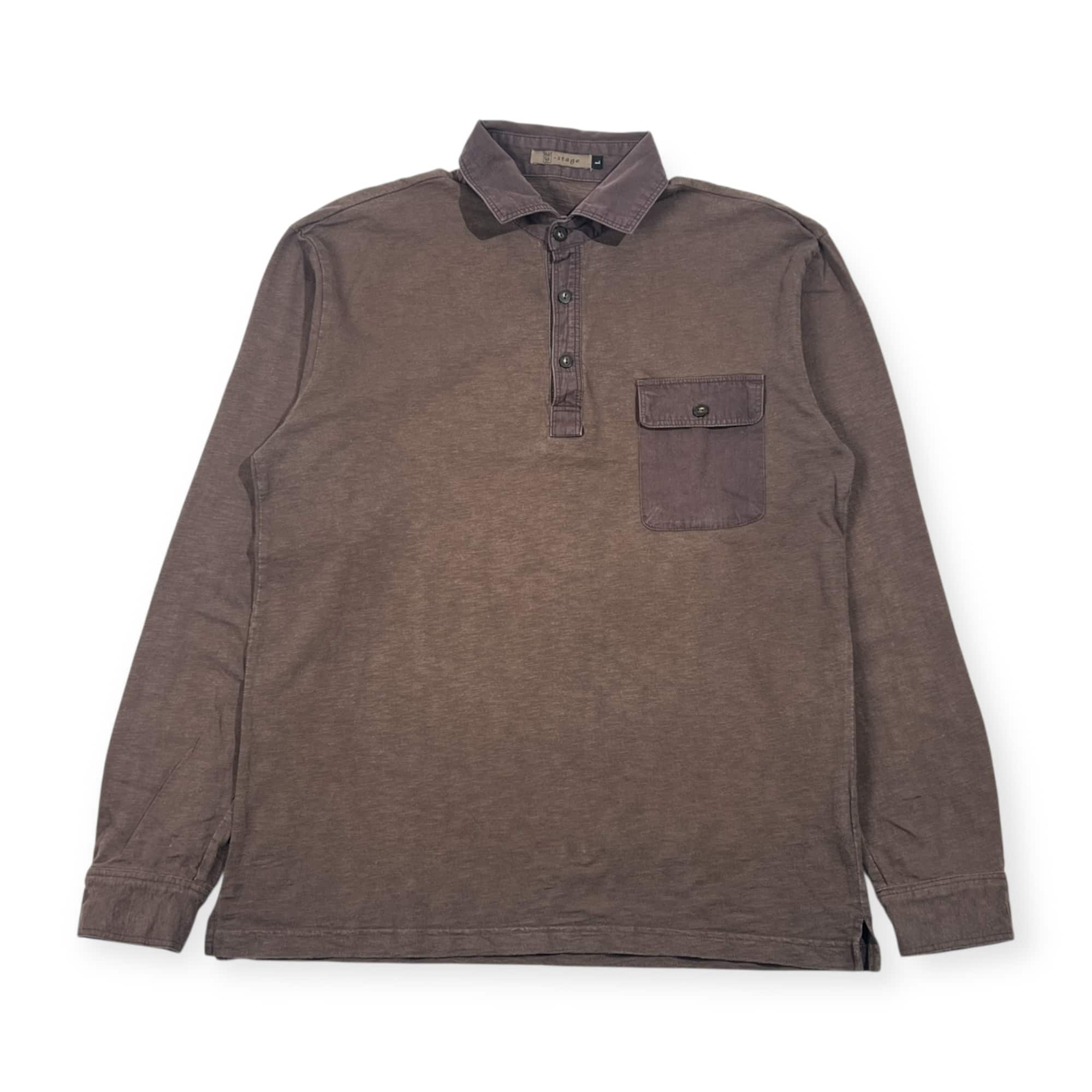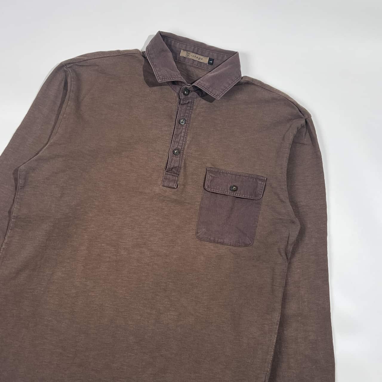 g-stage ジーステージ 胸ポケット付 天竺 長袖 ポロシャツ L/ブラウン系 メンズ