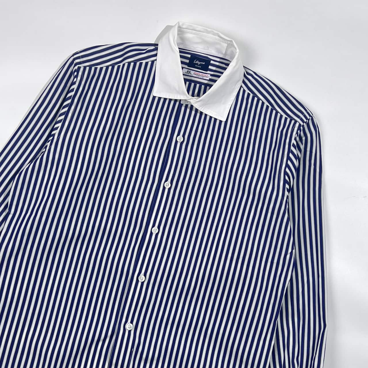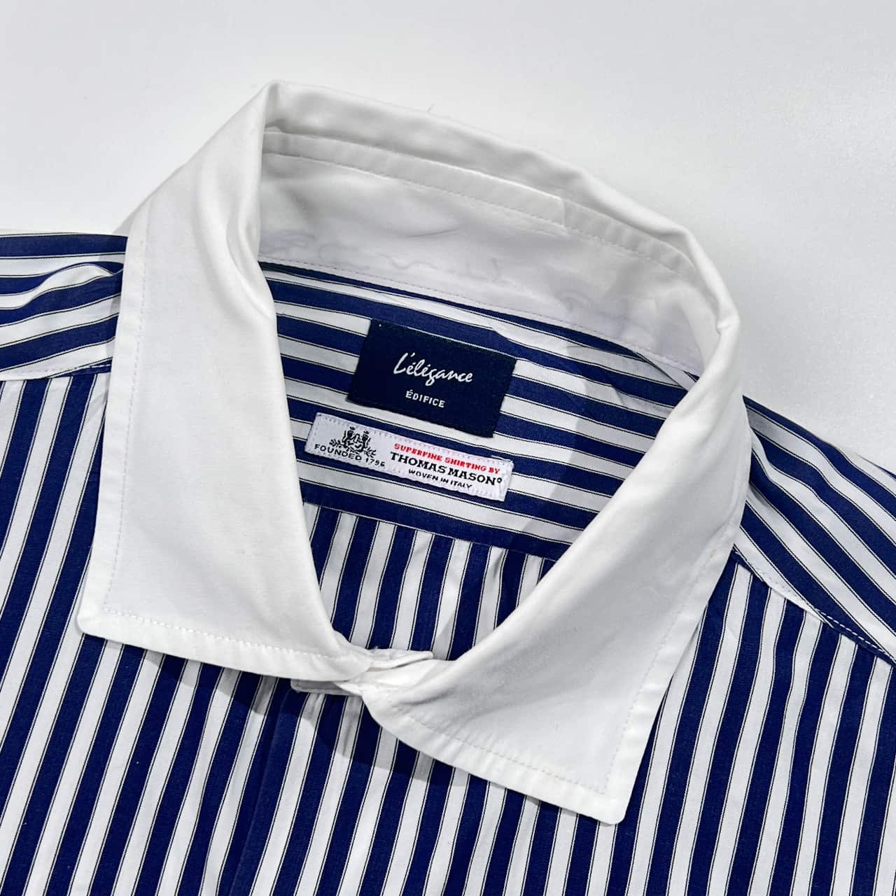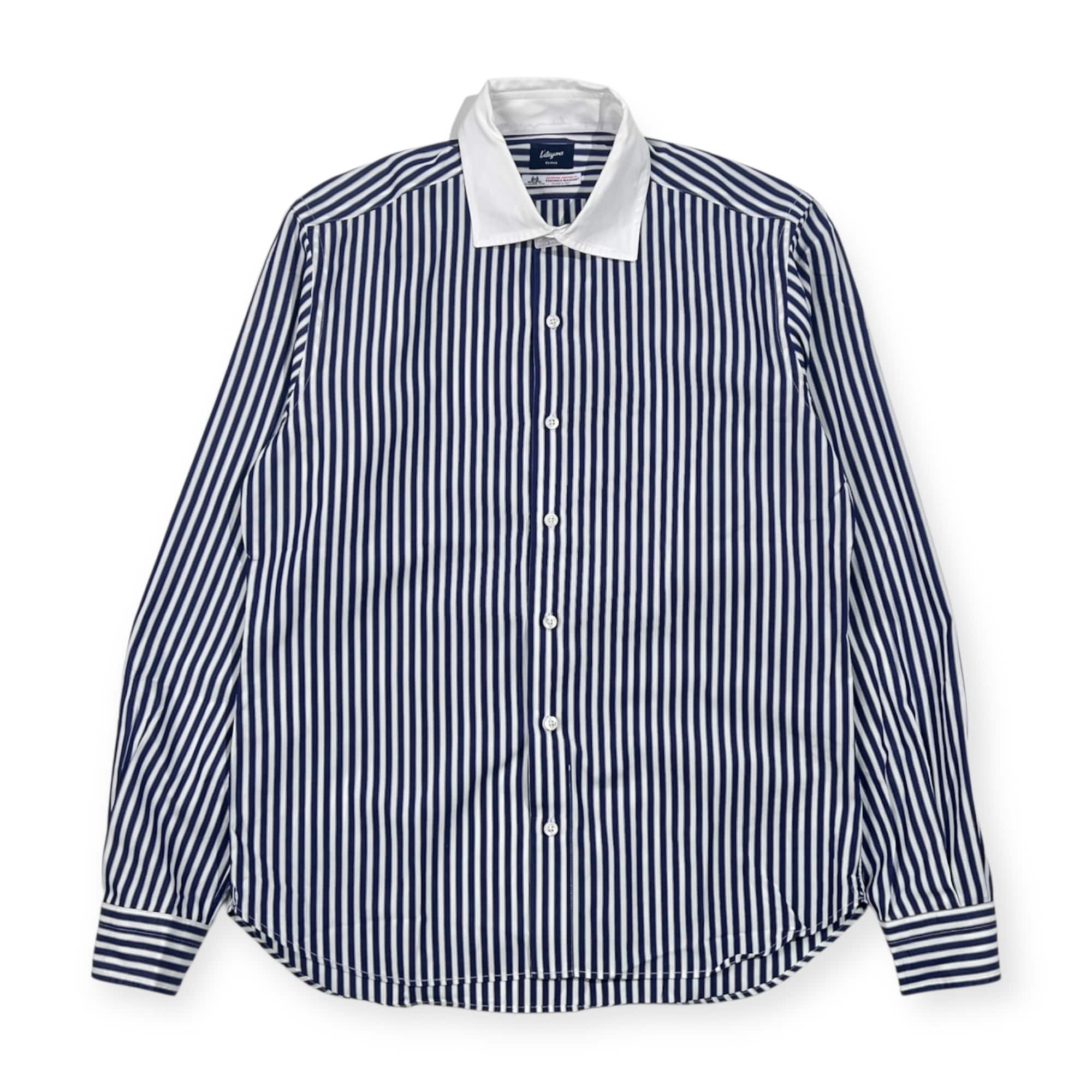 EDIFICE Lelegance エディフィス THOMAS MASON 生地 ストライプ クレリック風 長袖シャツ 44/ネイビー×ホワイト 系 メンズ