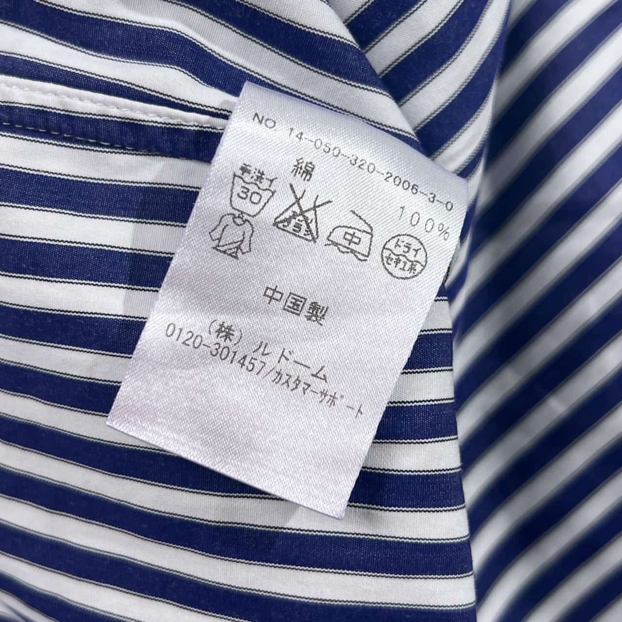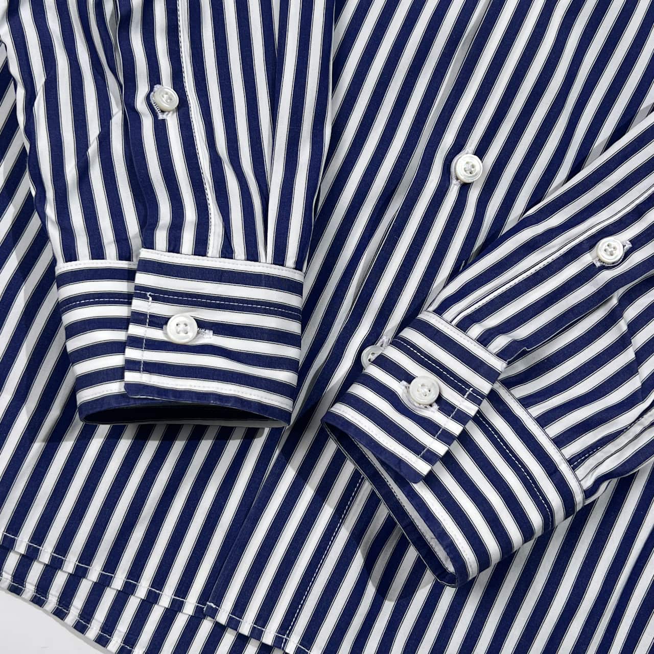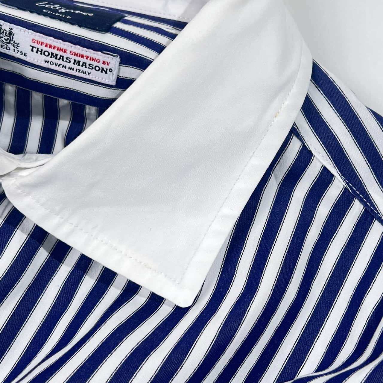EDIFICE Lelegance エディフィス THOMAS MASON 生地 ストライプ クレリック風 長袖シャツ 44/ネイビー×ホワイト 系 メンズ