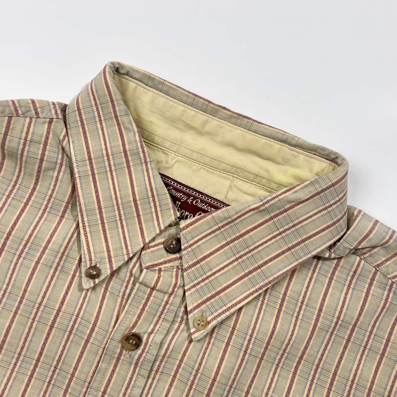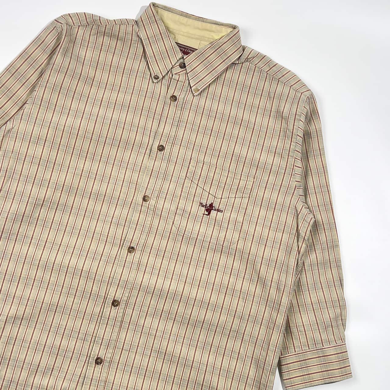 90s イタリア製 Marlboro Classics マルボロクラシックス チェック柄 BD ボタンダウン 長袖シャツ L/ベージュ系 メンズ ビンテージ