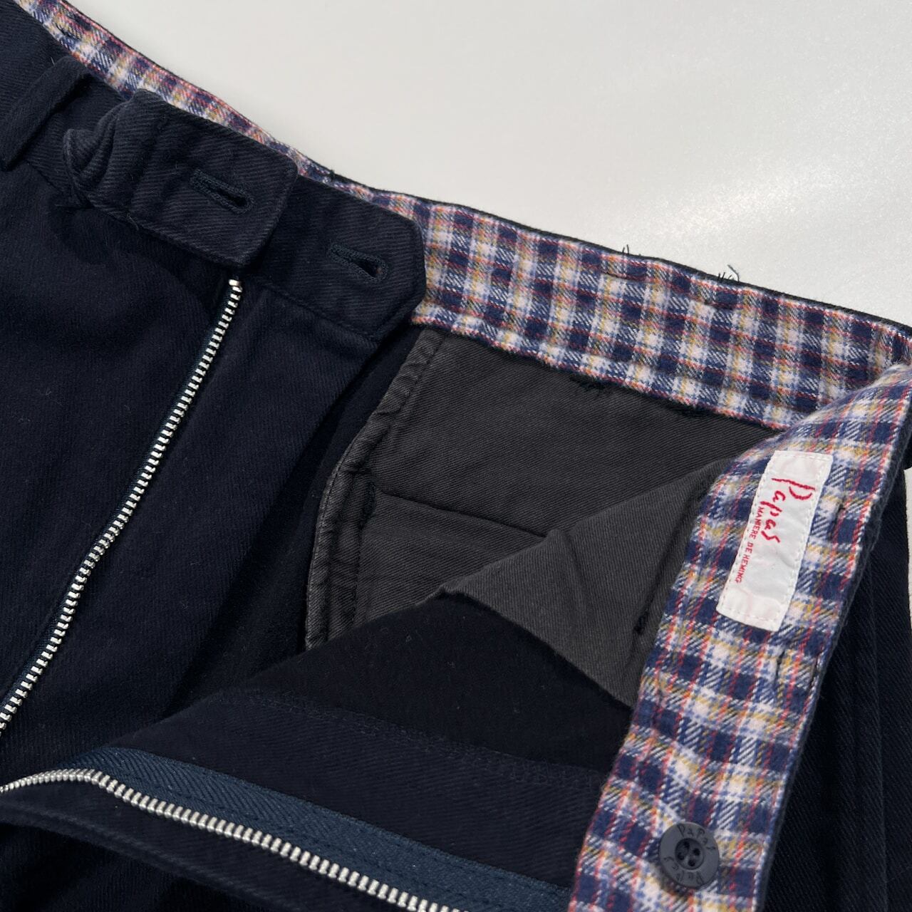 PAPAS パパス ツイルコットンネル ツータック スラックス パンツ サイズ M /ネイビー/メンズ/日本製
