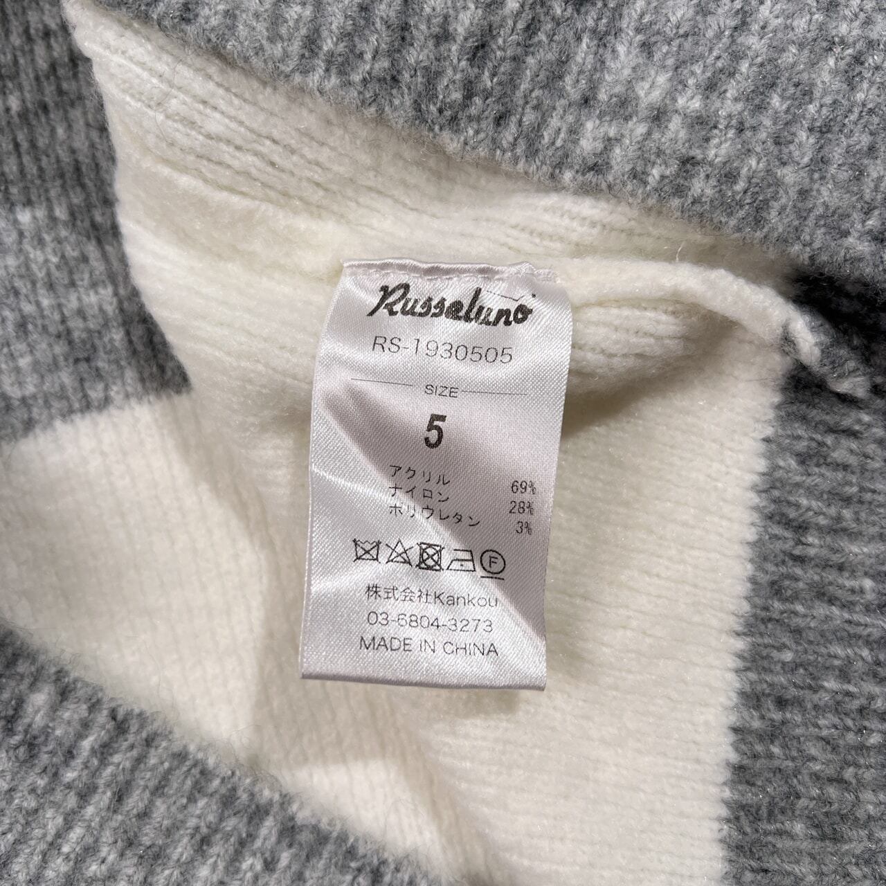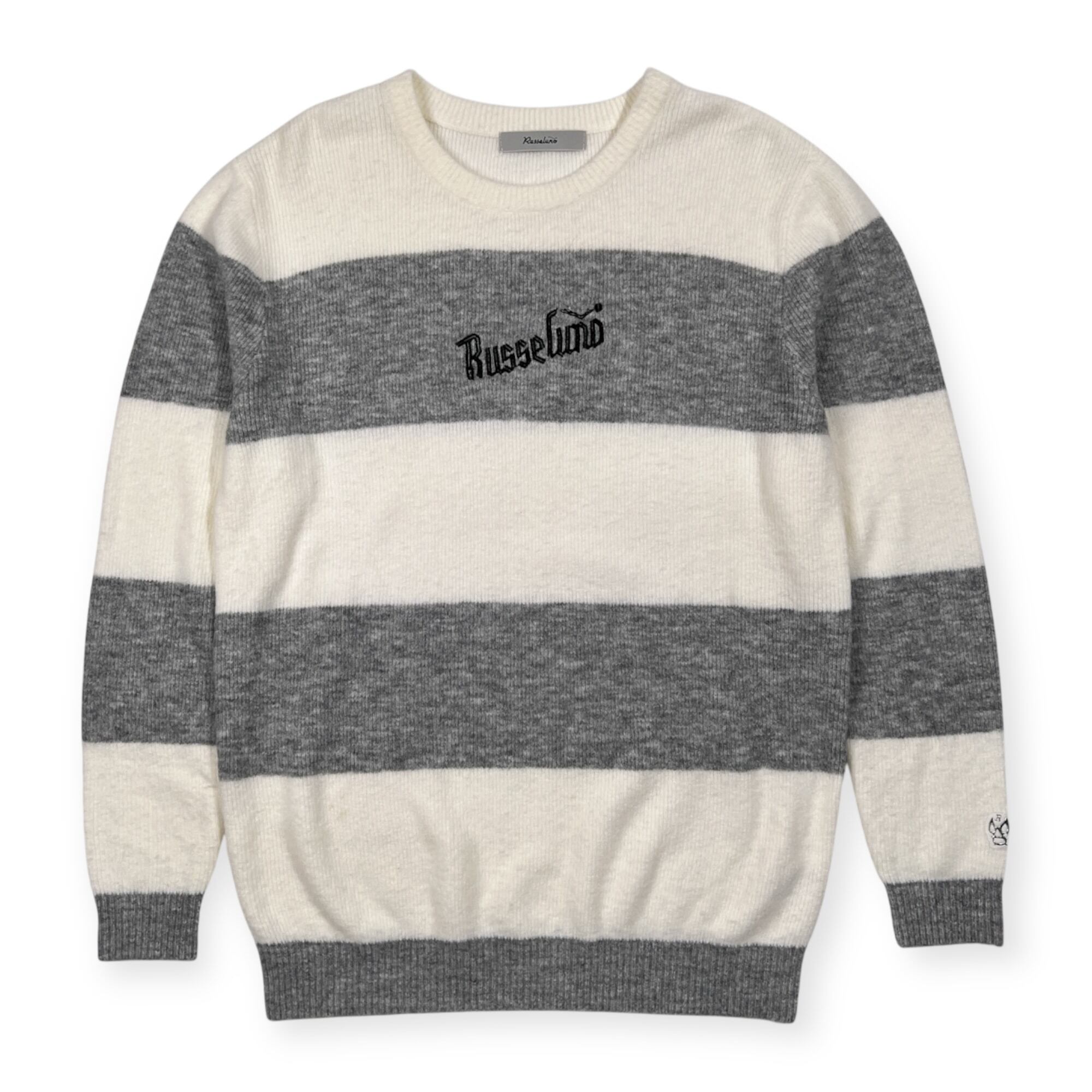 RUSSELUNO ラッセルノ ロゴ刺繍 ボーダー ニットセーター サイズ 5 /ホワイト×グレー/メンズ/ゴルフ