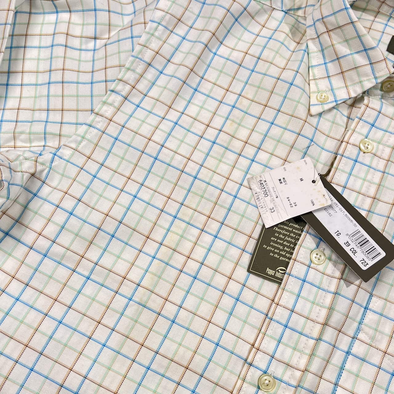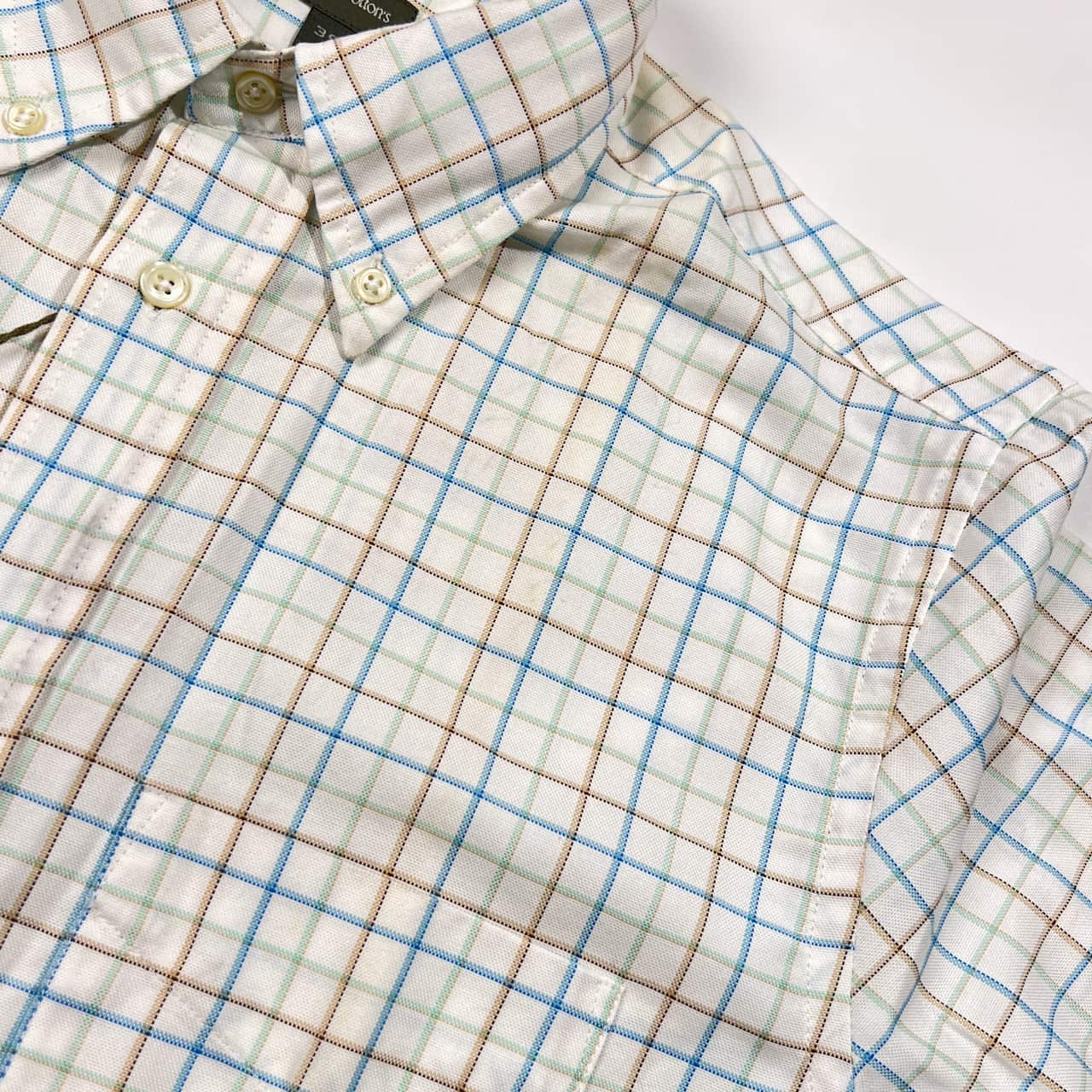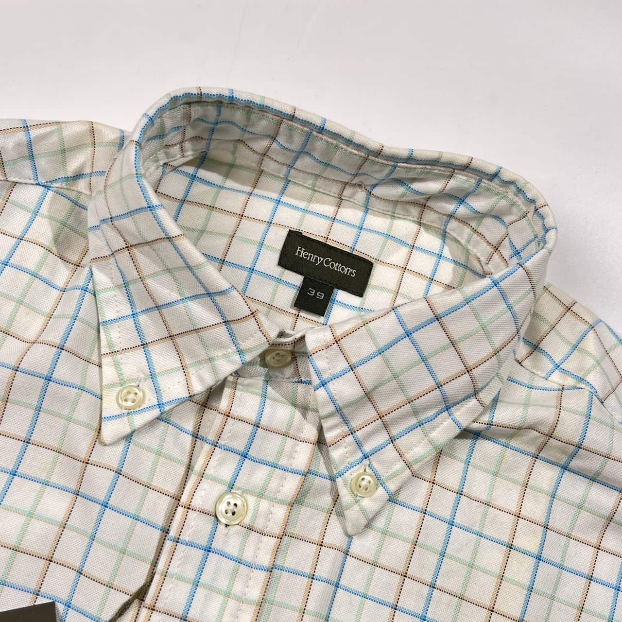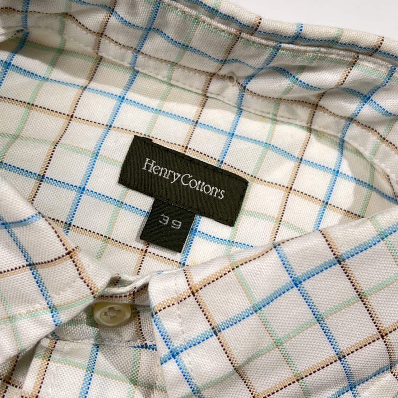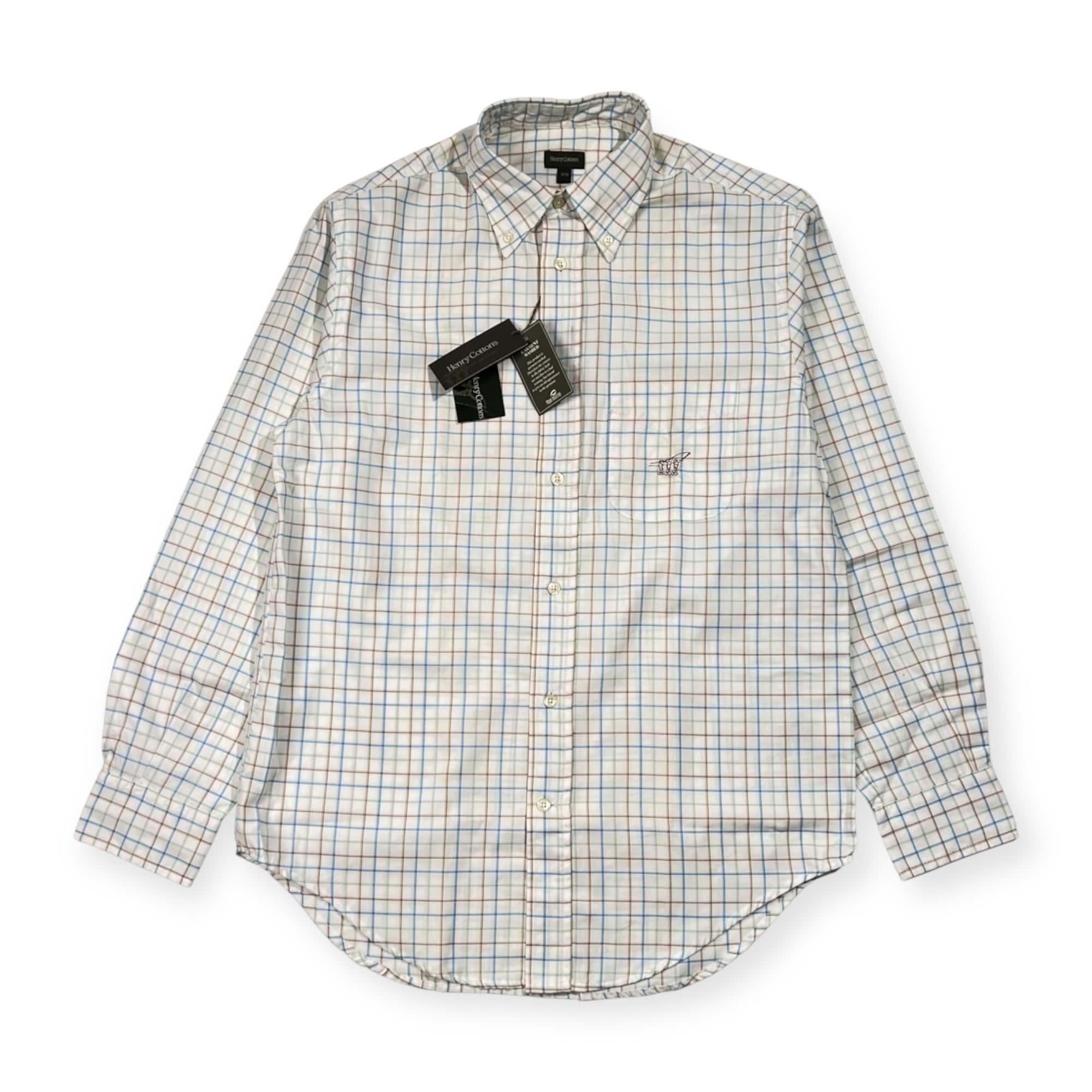 新品 タグ付き Henry Cotton's ヘンリーコットンズ チェック柄 BD ボタンダウン 長袖シャツ 39/ホワイト系 メンズ ブルガリア製