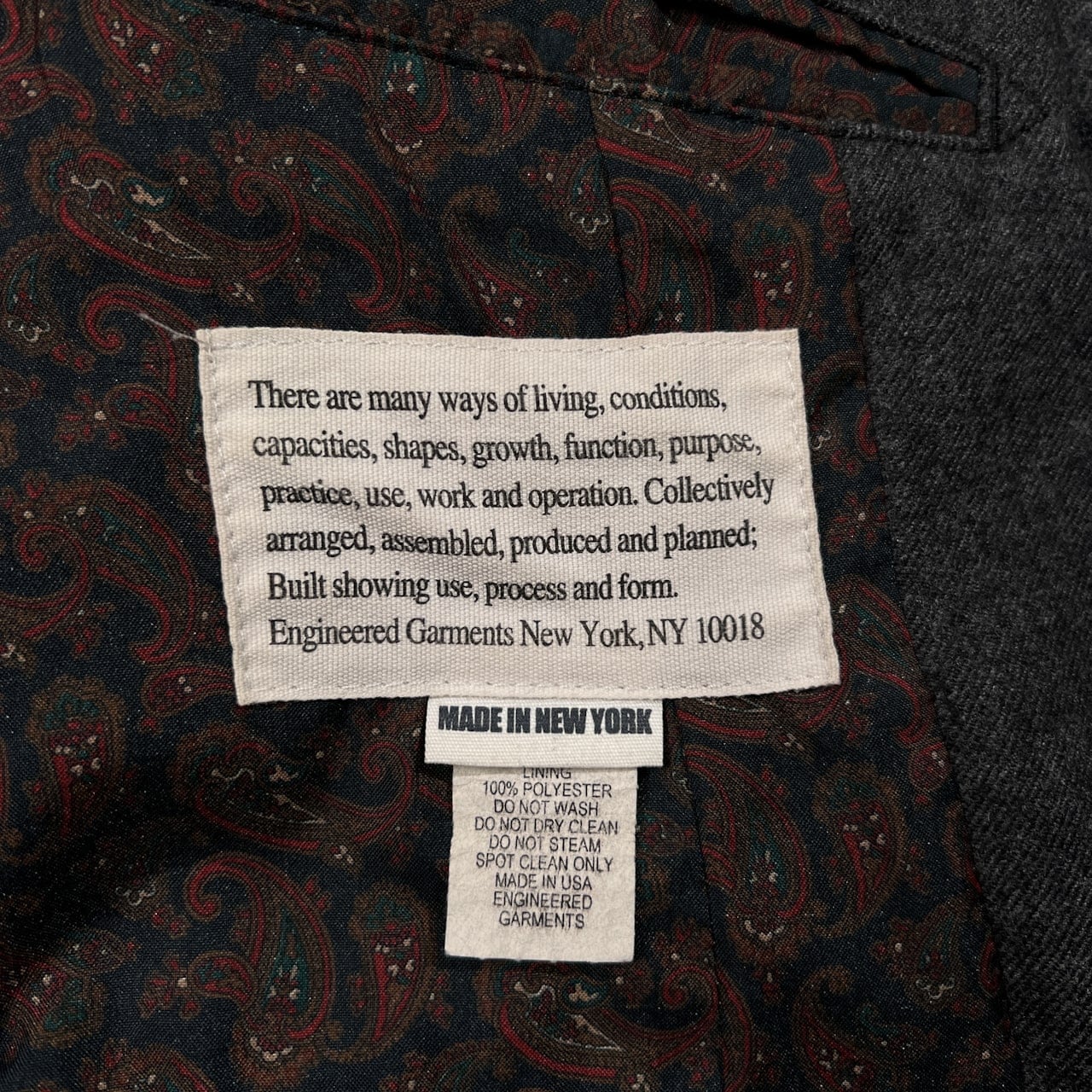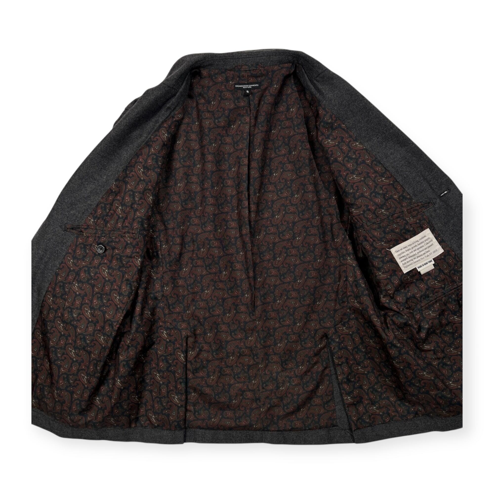 Engineered Garments エンジニアードガーメンツ 裏地ペイズリー チェンジポケット テーラードジャケット S/チャコールグレー/USA製/アメリカ製