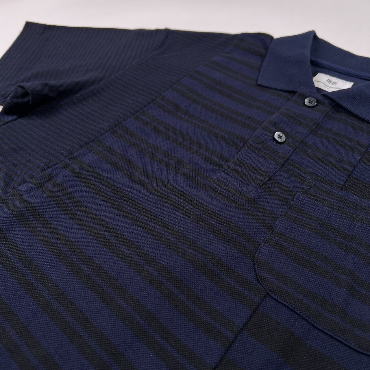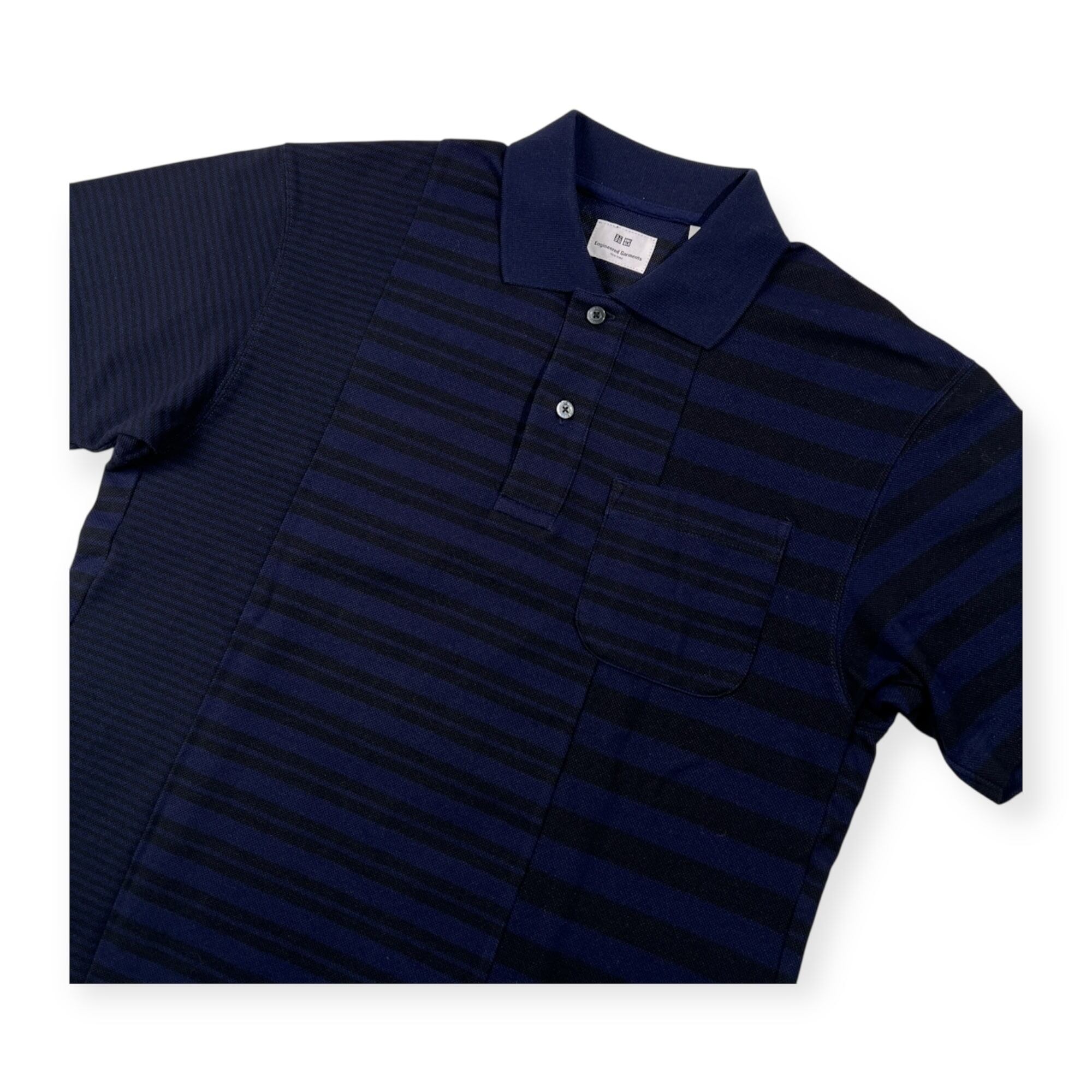 美品 UNIQLO × Engineered Garments ユニクロ エンジニアードガーメンツ 切替 ボーダー 半袖 ポロシャツ サイズ S /ネイビー×ブラック