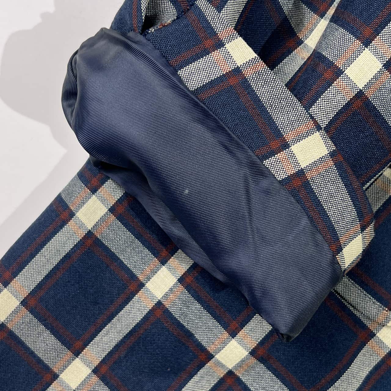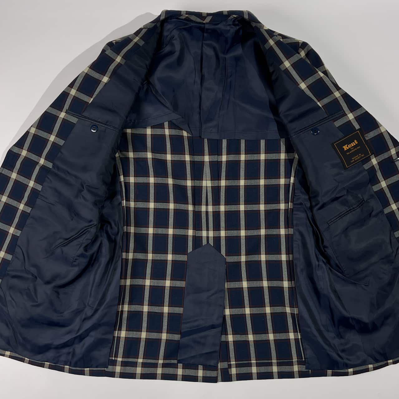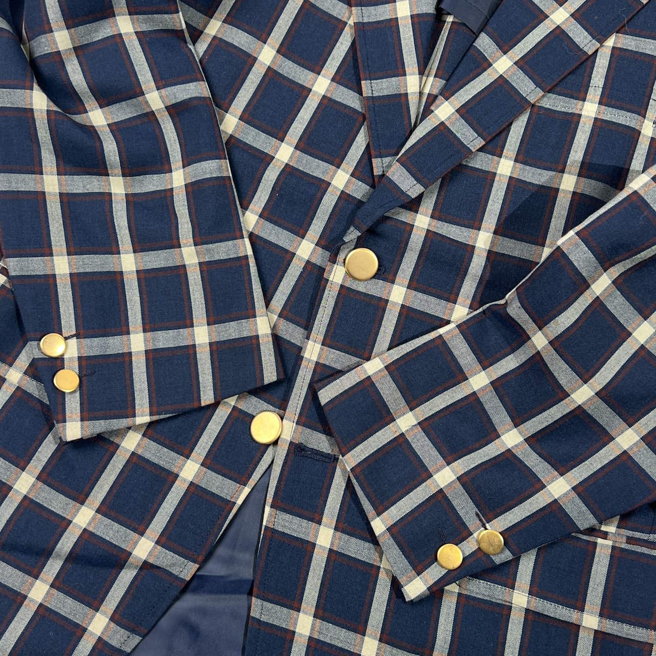 70s 80s Kent ケント 金ボタン チェック 背抜き テーラードジャケット 170-90-79/ネイビー系 メンズ/アイビー/トラッド/ビンテージ/ヴァンヂャケット