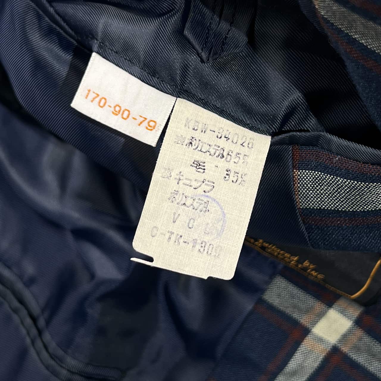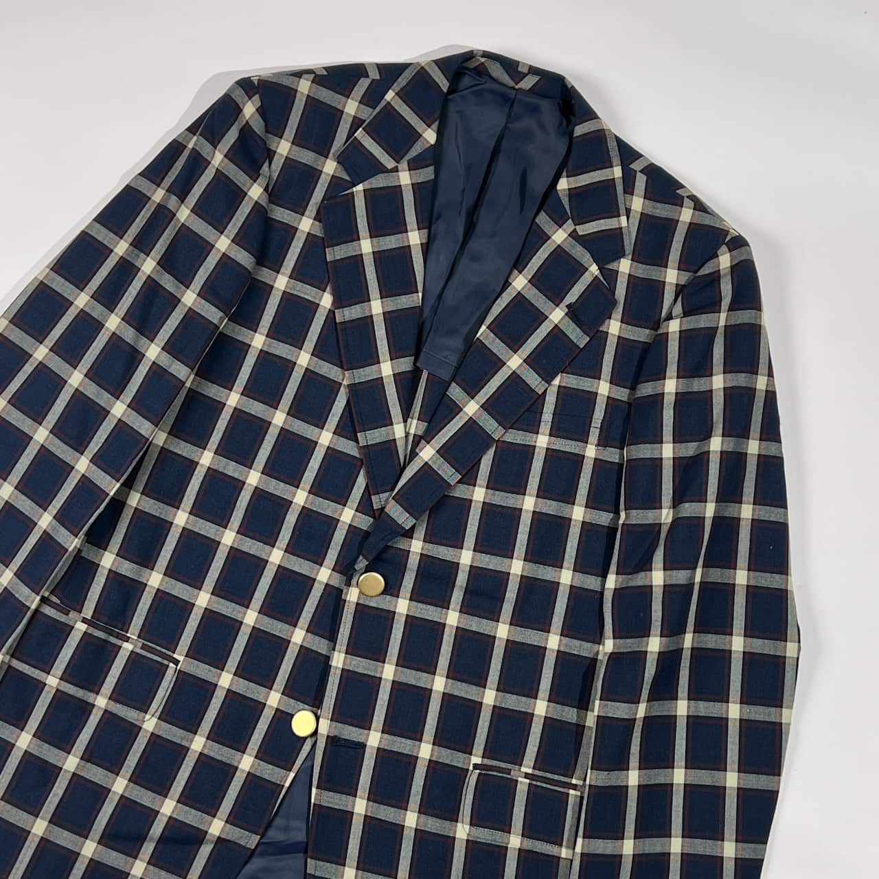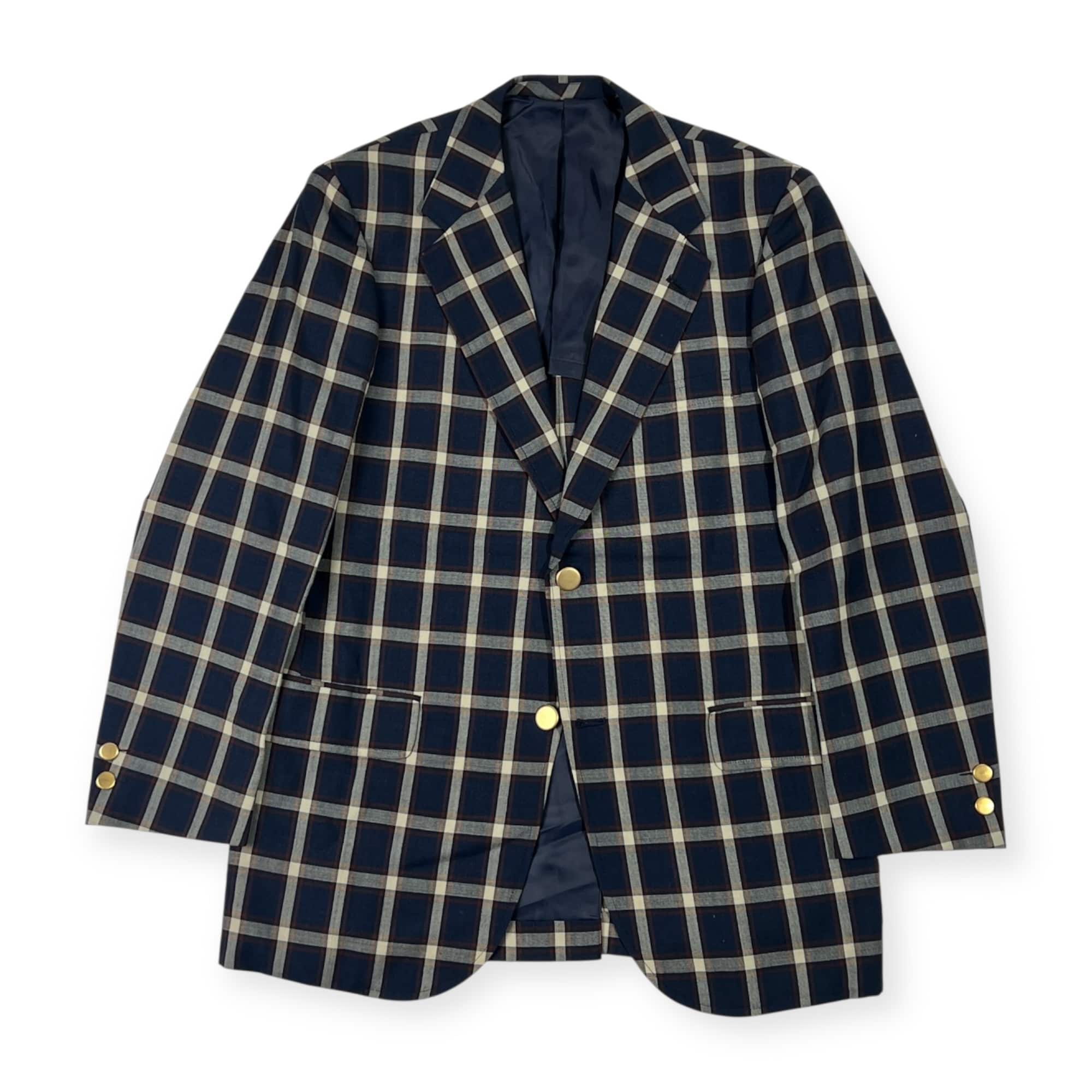 70s 80s Kent ケント 金ボタン チェック 背抜き テーラードジャケット 170-90-79/ネイビー系 メンズ/アイビー/トラッド/ビンテージ/ヴァンヂャケット