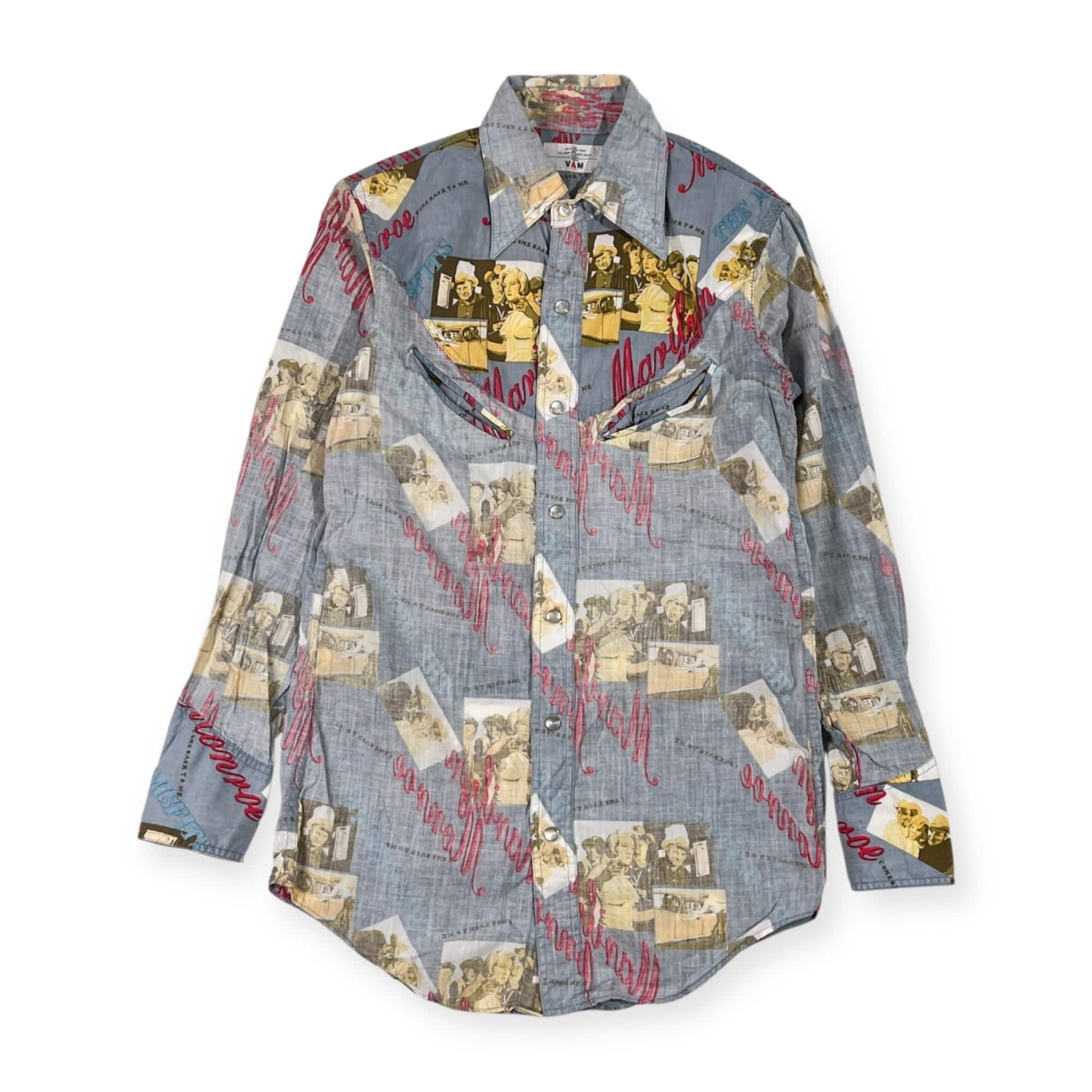 80s 90s VAN JAC ヴァンヂャケット マリリンモンロー 長袖 ウエスタン シャツ 長袖 サイズ S /ブルー系 メンズ ビンテージ