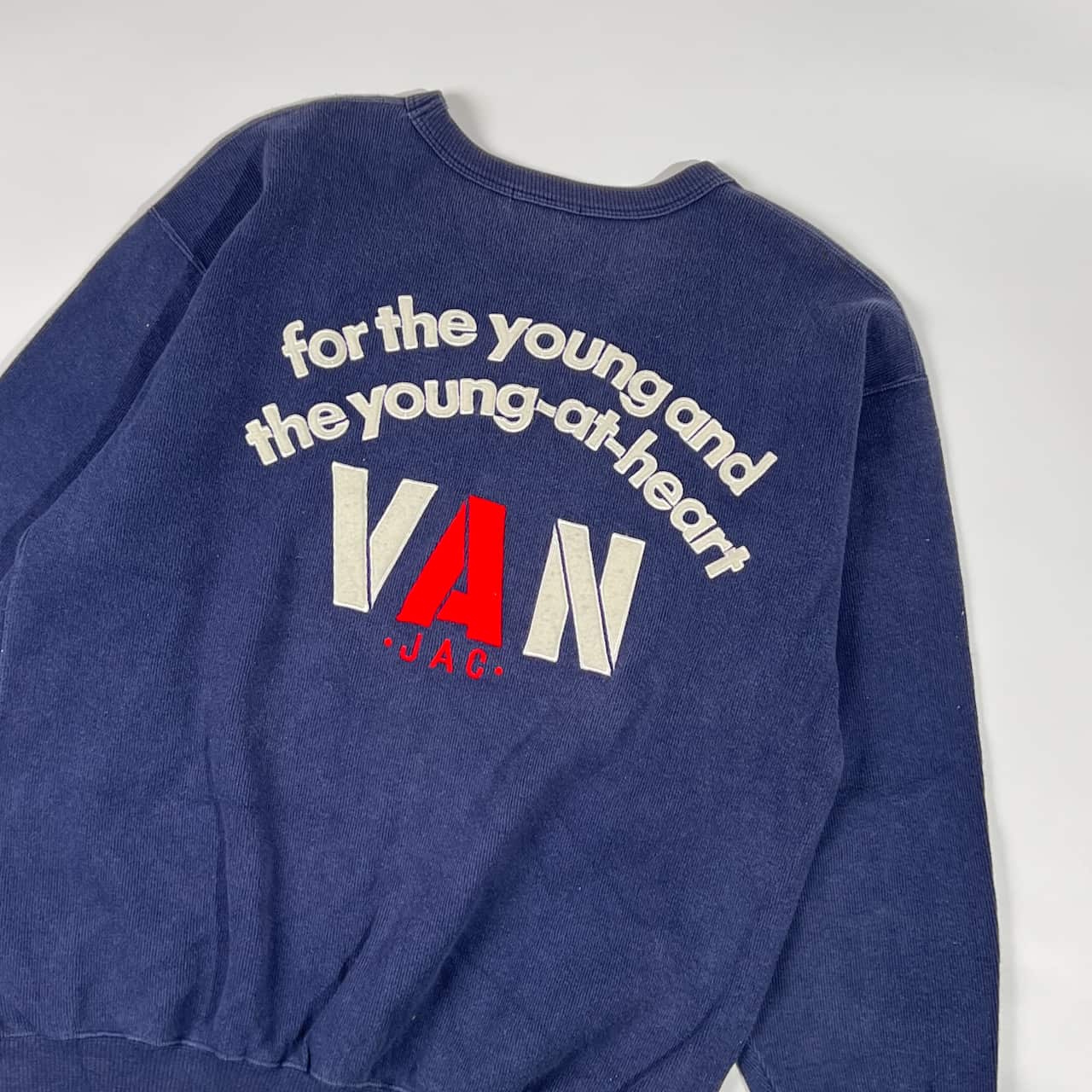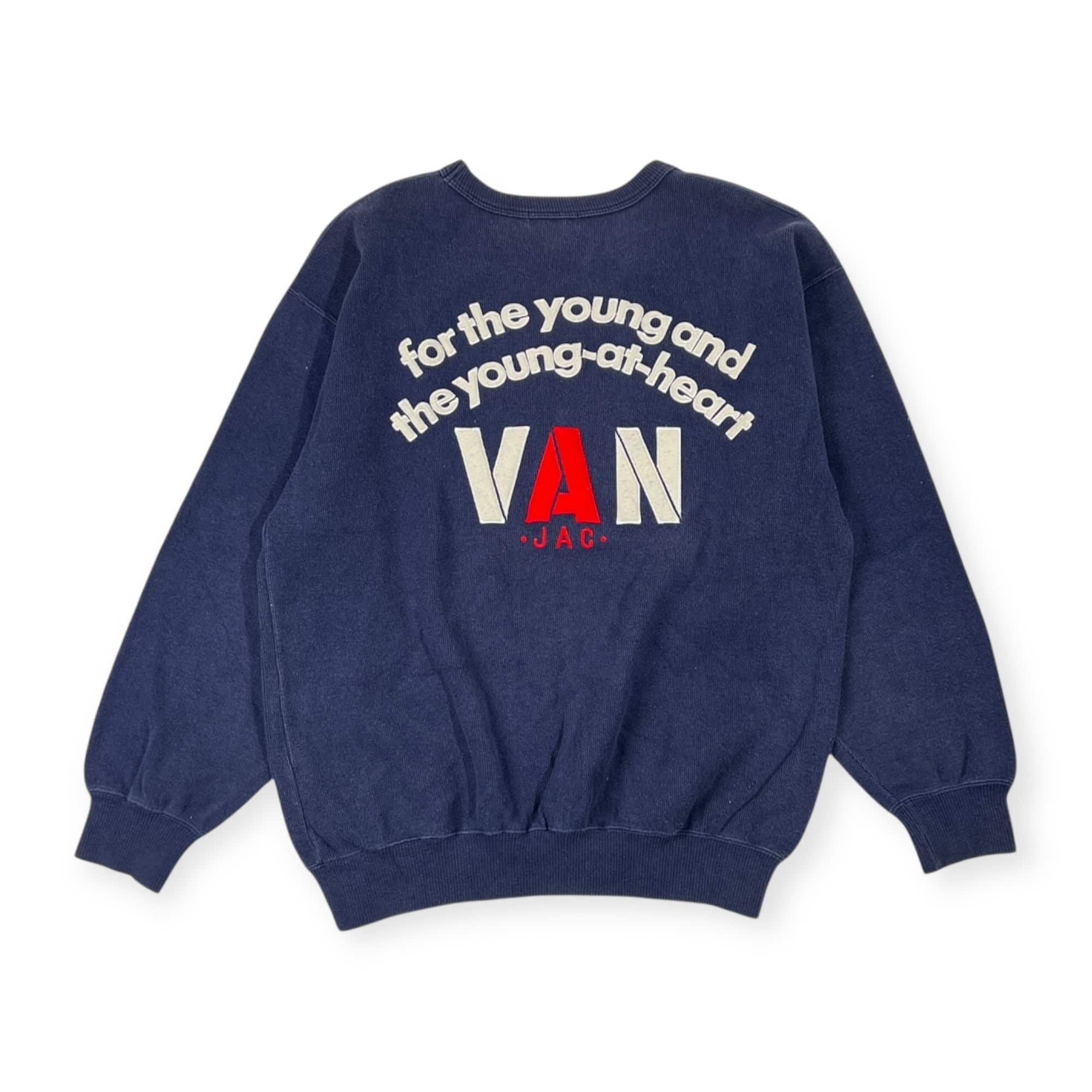 70s 80s VAN JAC ヴァンヂャケット バック アーチロゴ スウェット トレーナー L/ネイビー系 メンズ アイビー トラッド ビンテージ