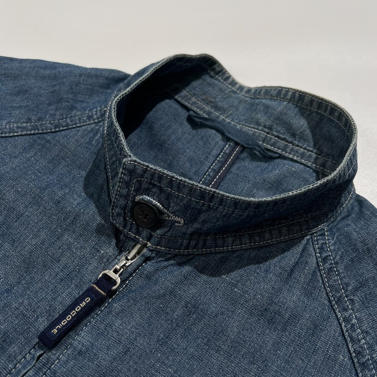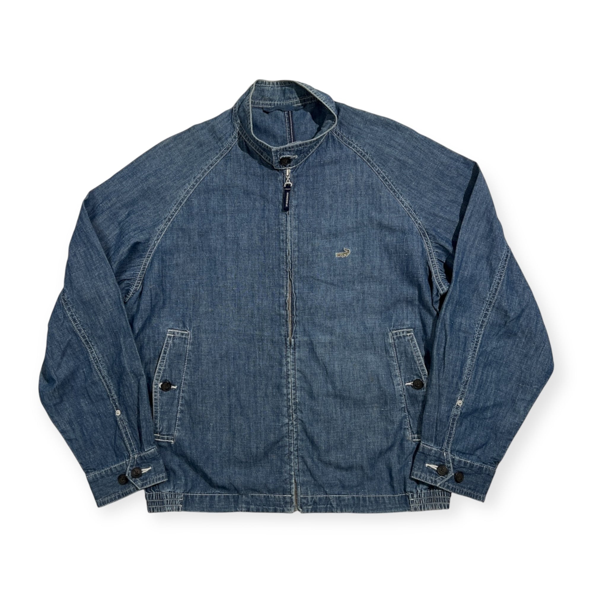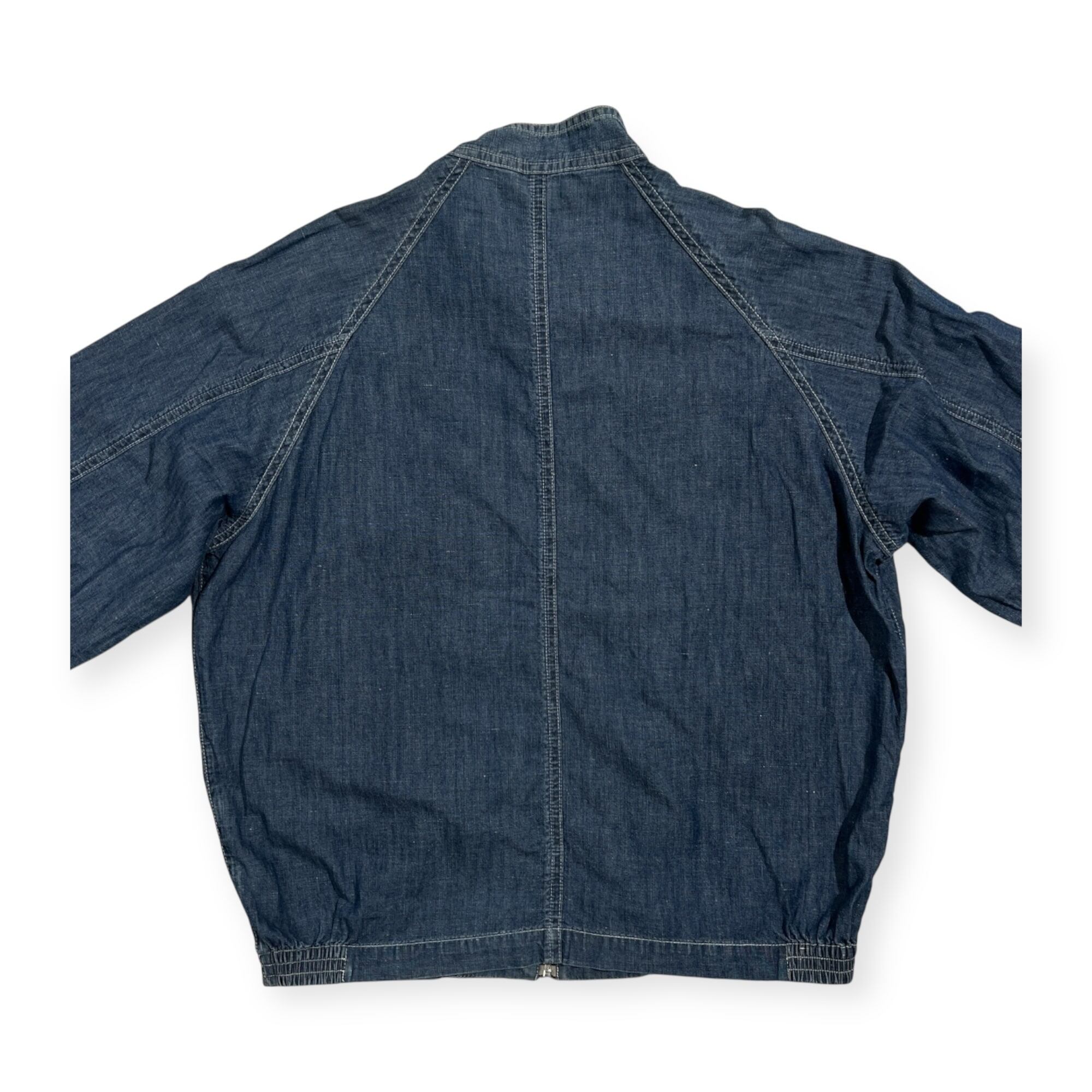 Crocodile クロコダイル ロゴ刺繍 リネン混 デニム スイングトップ ダンガリー ブルゾン ジャケット LL /インディゴブルー系 紳士 カジュアル