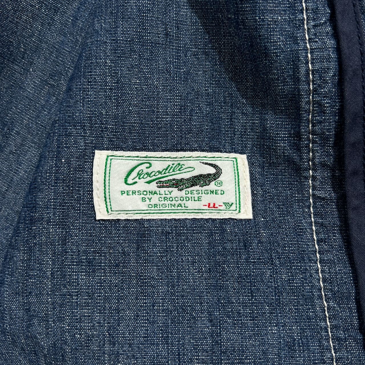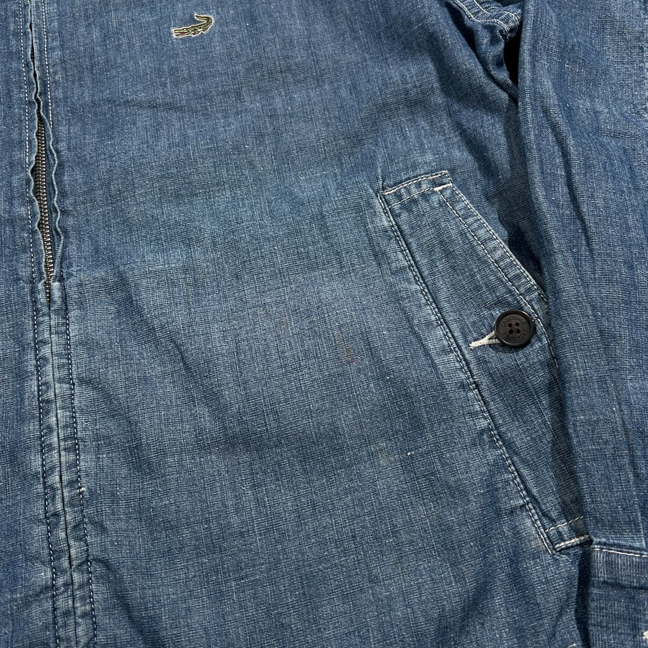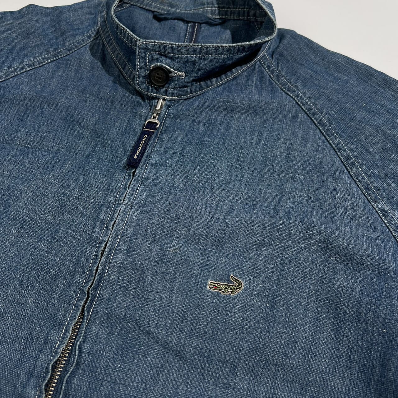 Crocodile クロコダイル ロゴ刺繍 リネン混 デニム スイングトップ ダンガリー ブルゾン ジャケット LL /インディゴブルー系 紳士 カジュアル