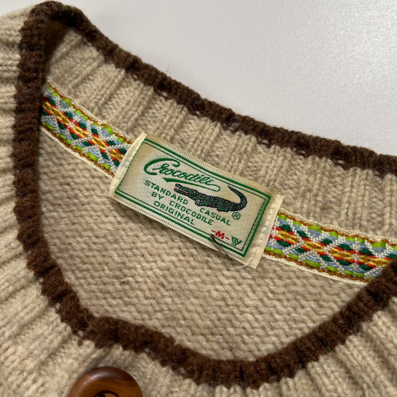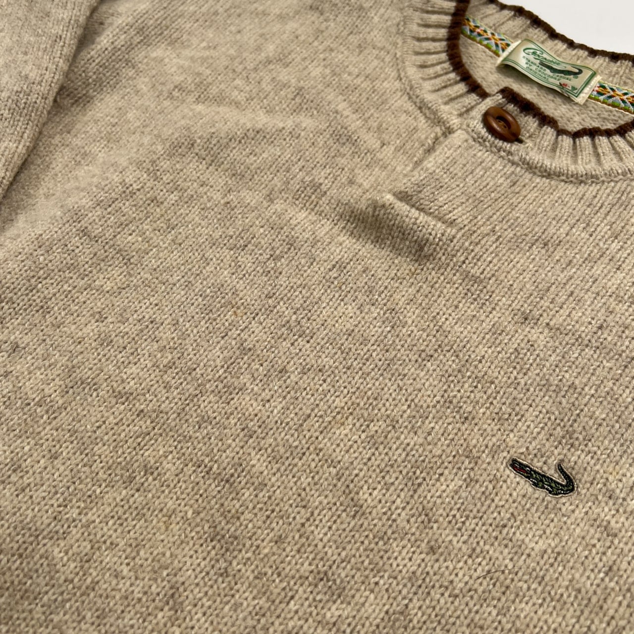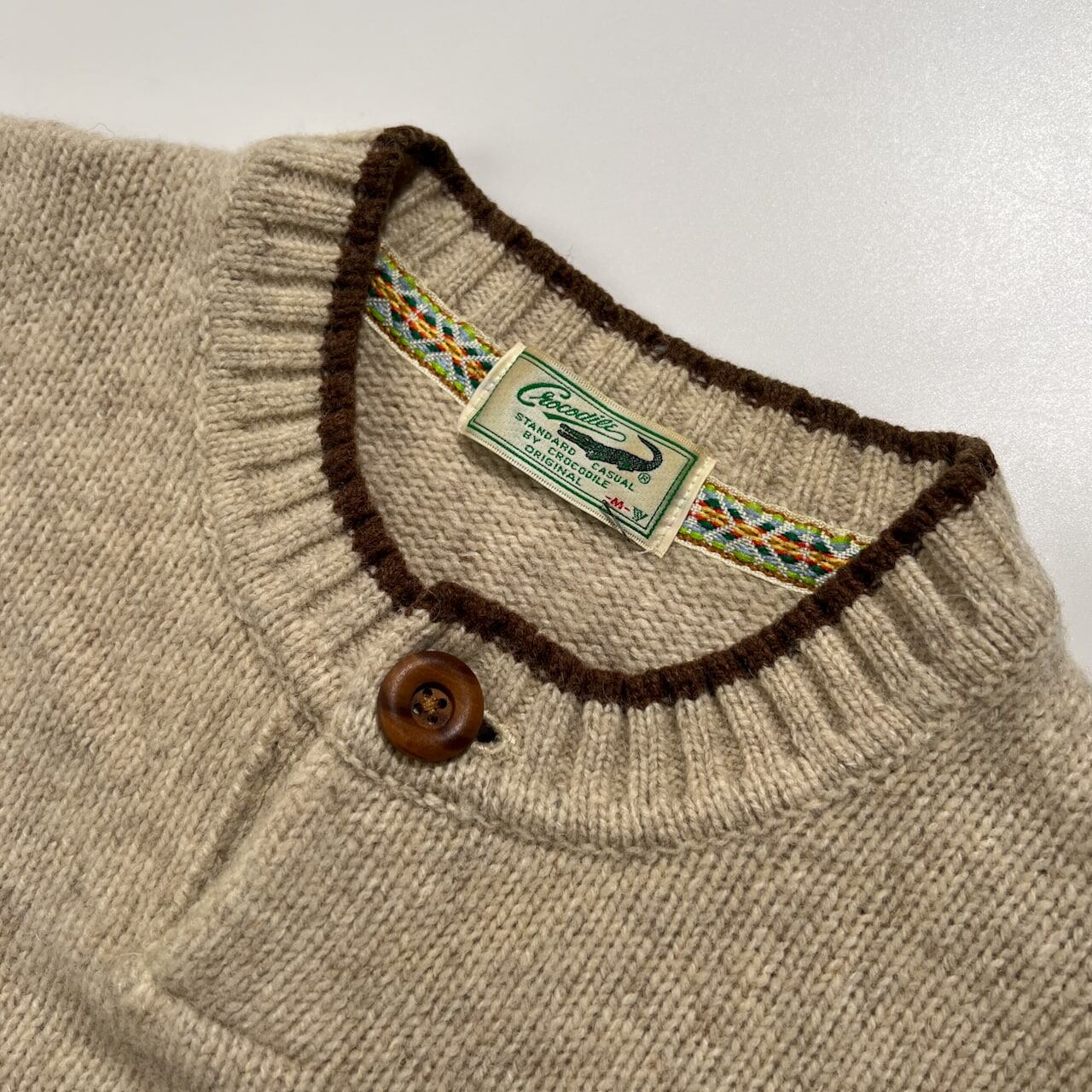 Crocodile クロコダイル ウール 100% ヘンリーネック ニット セーター サイズ M /ベージュ系 紳士 カジュアル
