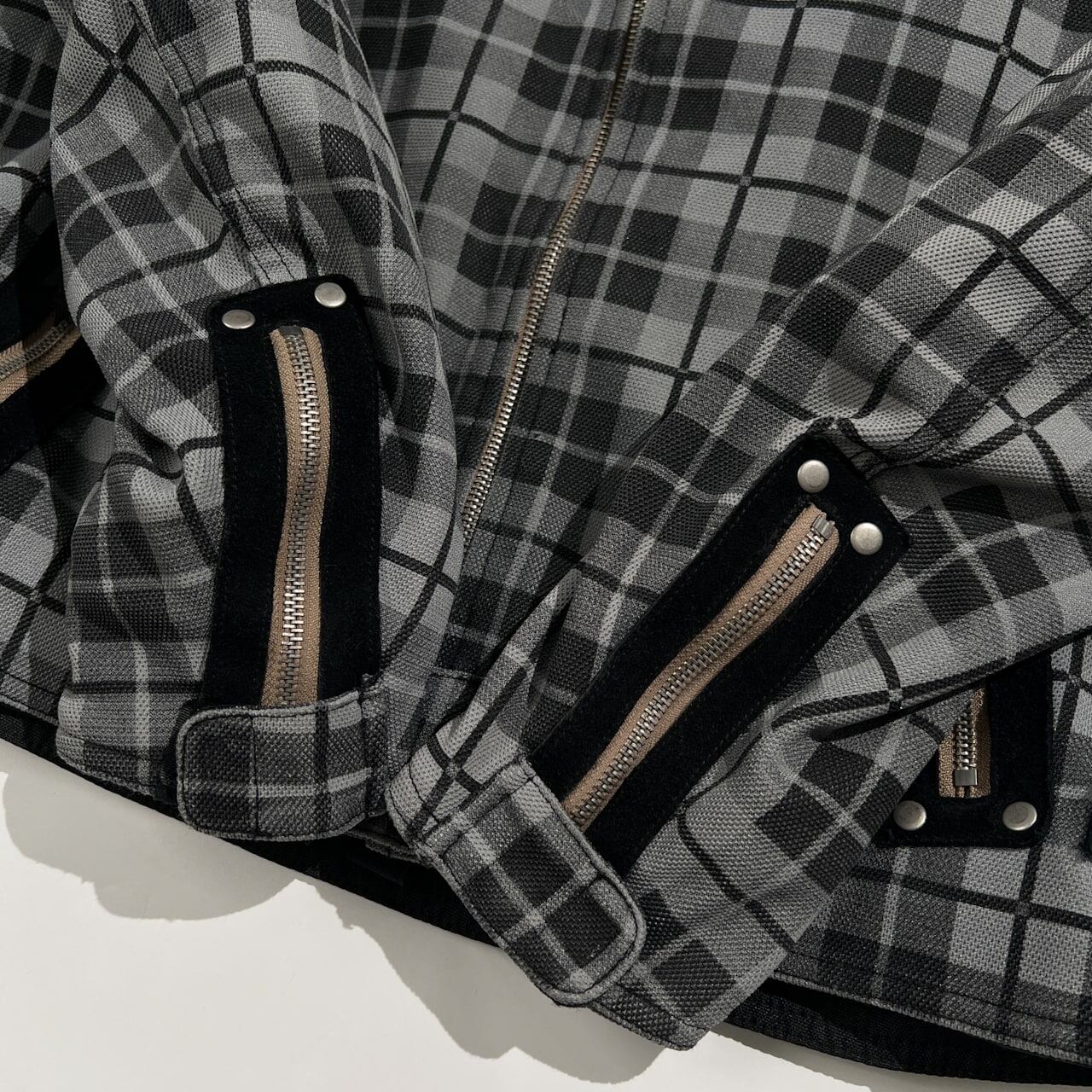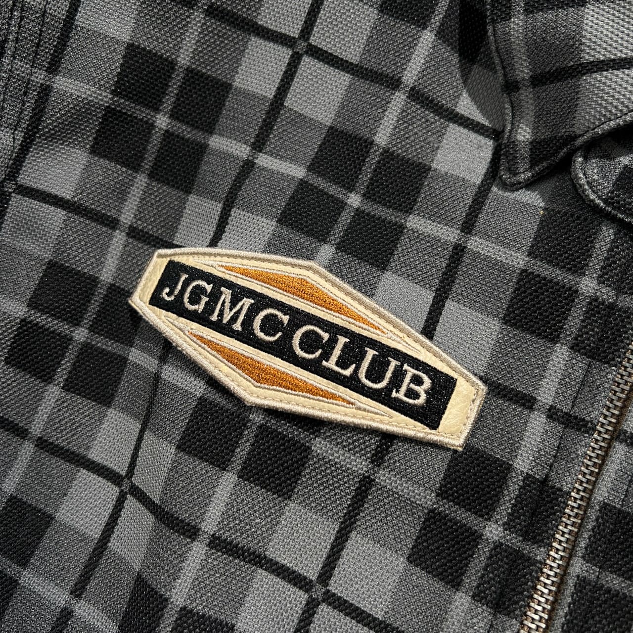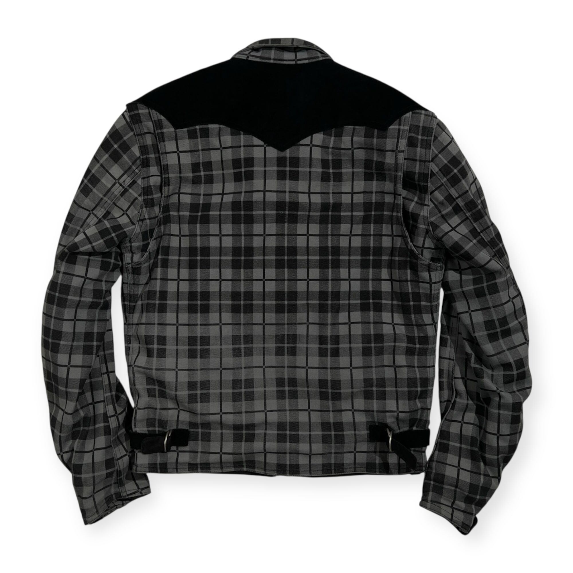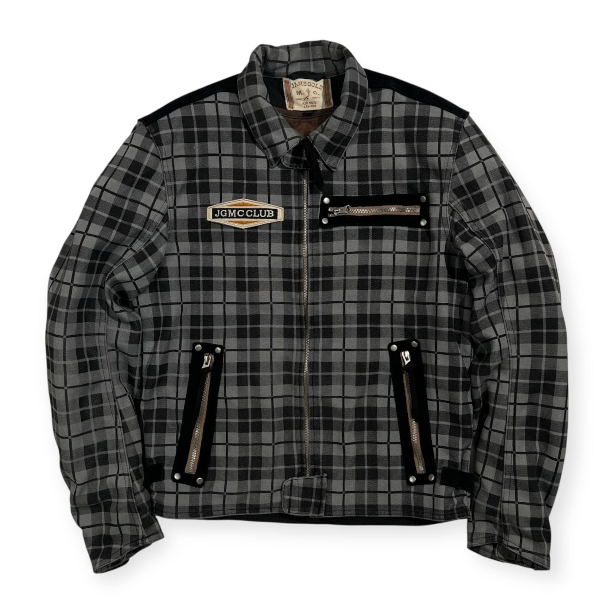 JAMS GOLD ジャムズゴールド 部分 本革 レザー チェック柄 ライディング ジャケット ブルゾン LL /グレー系 バイク ウェア バイカー ライダース