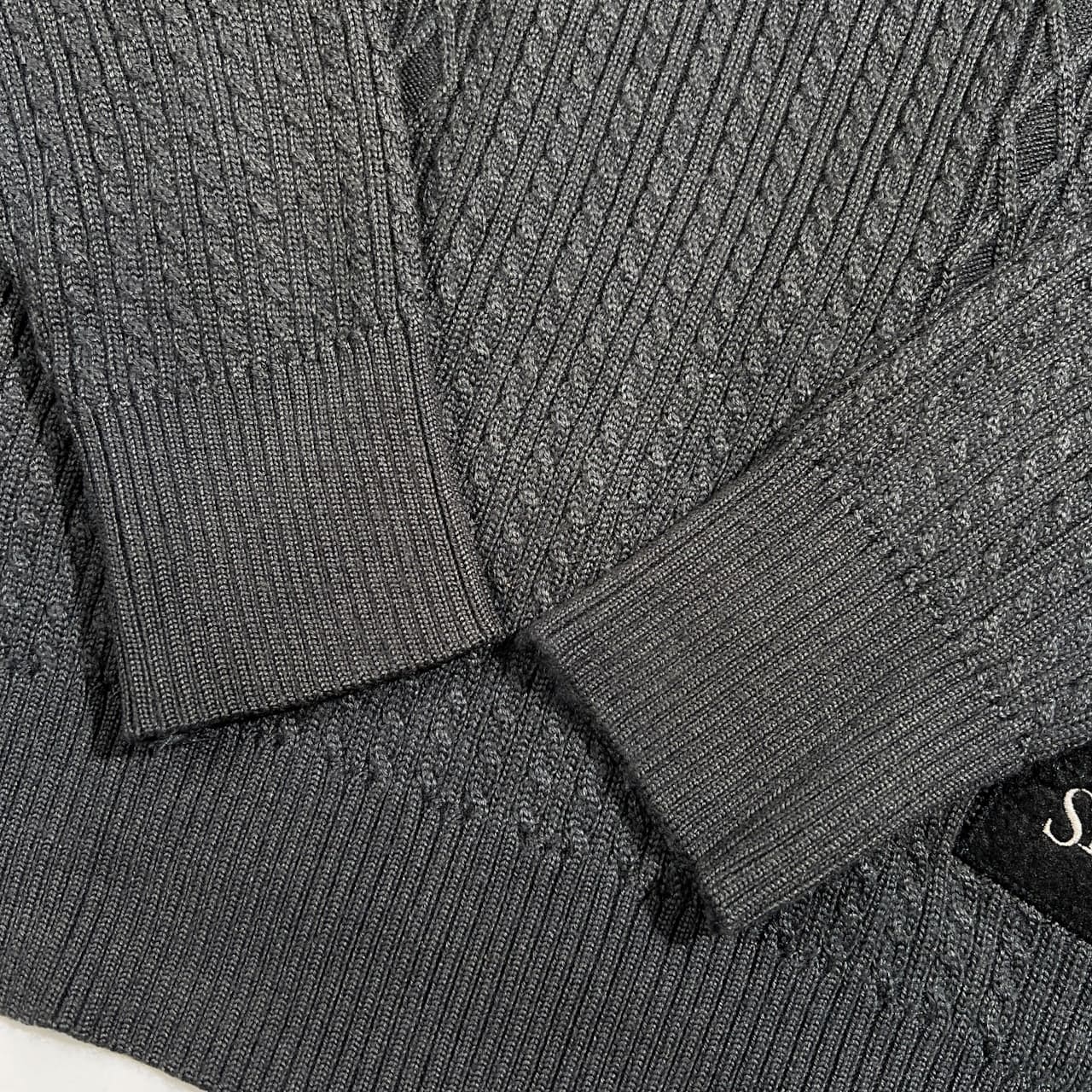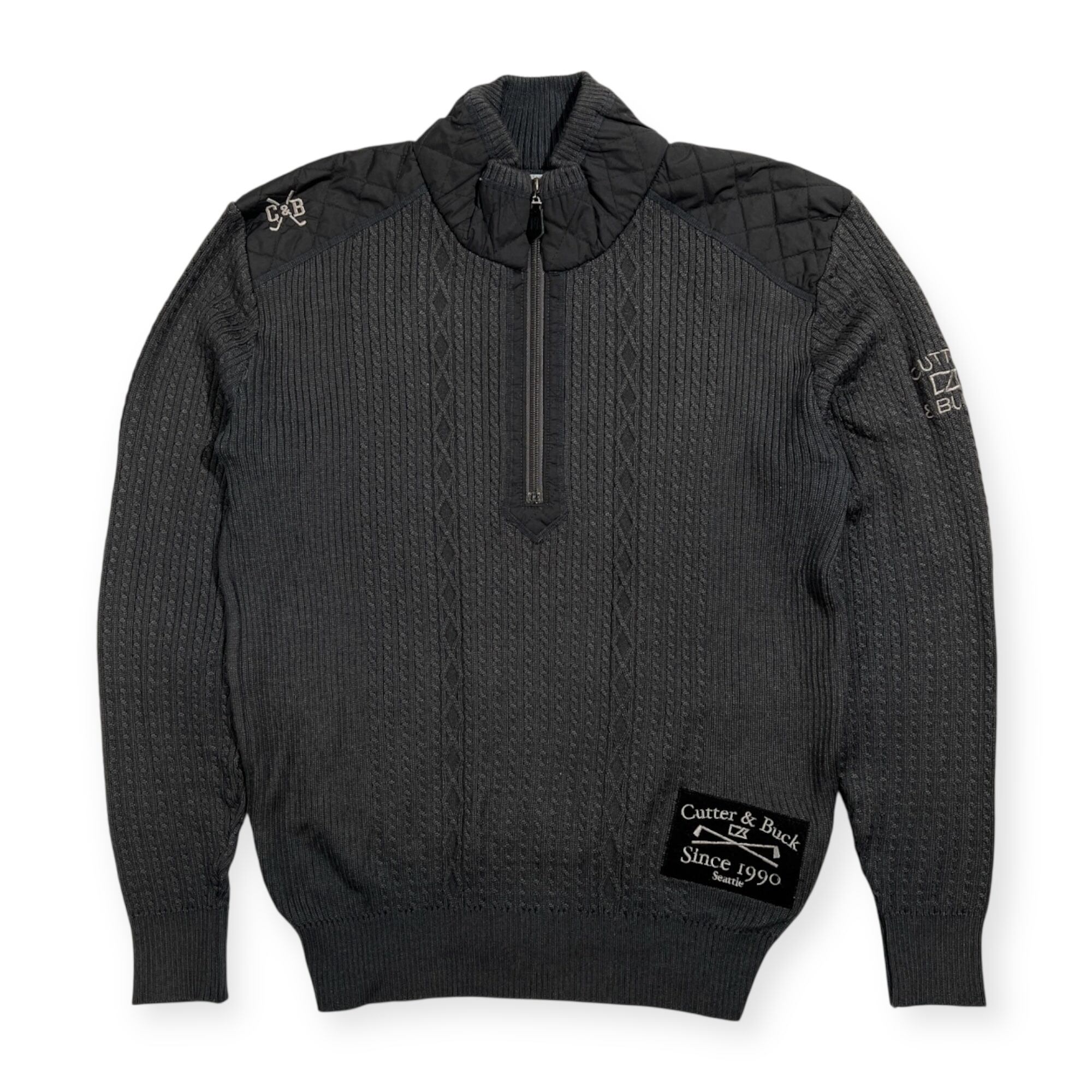 CUTTER & BUCK カッターアンドバック 肩キルト切替 ハーフジップ リブ ニット セーター サイズ L /ダークグレー系 紳士 ゴルフ ウェア