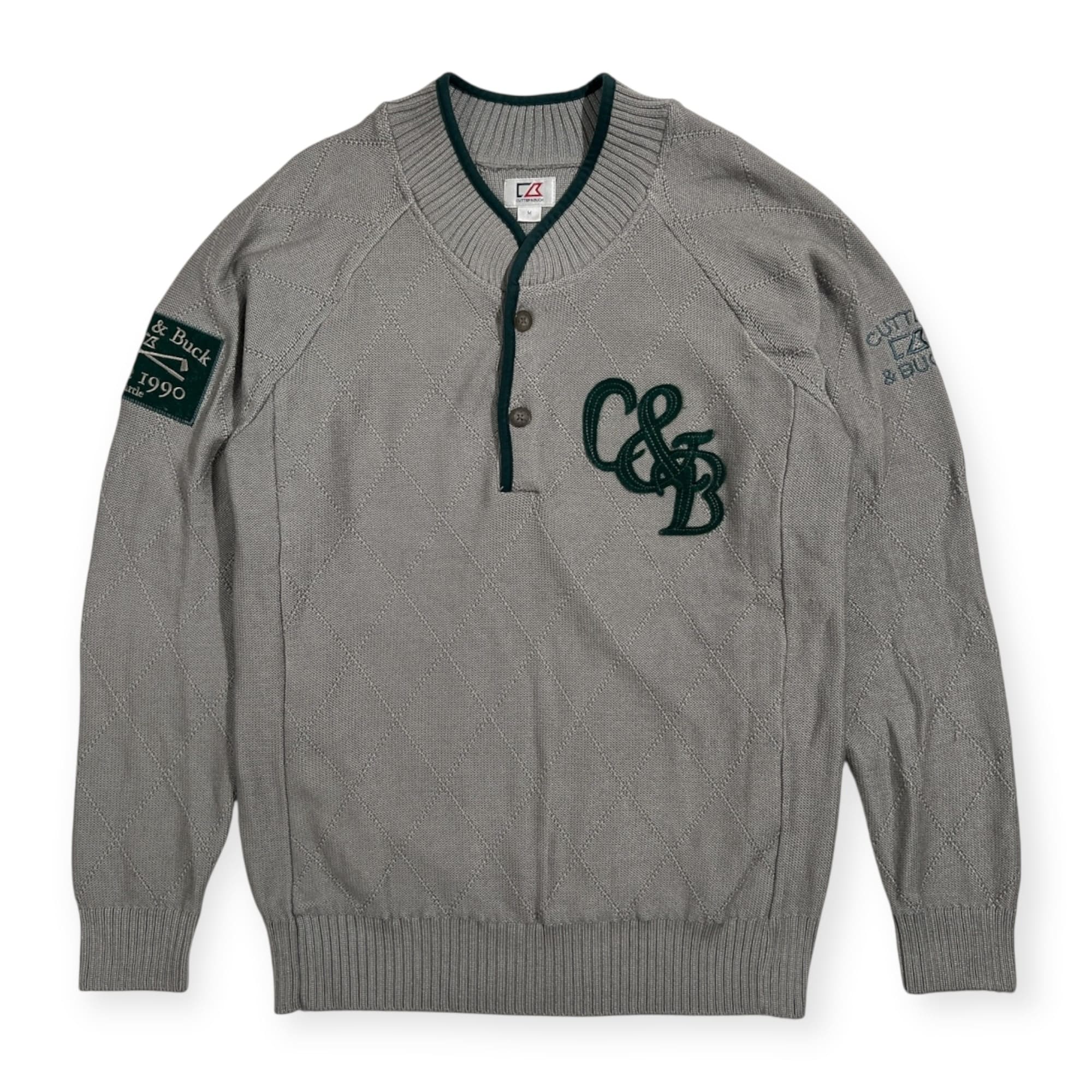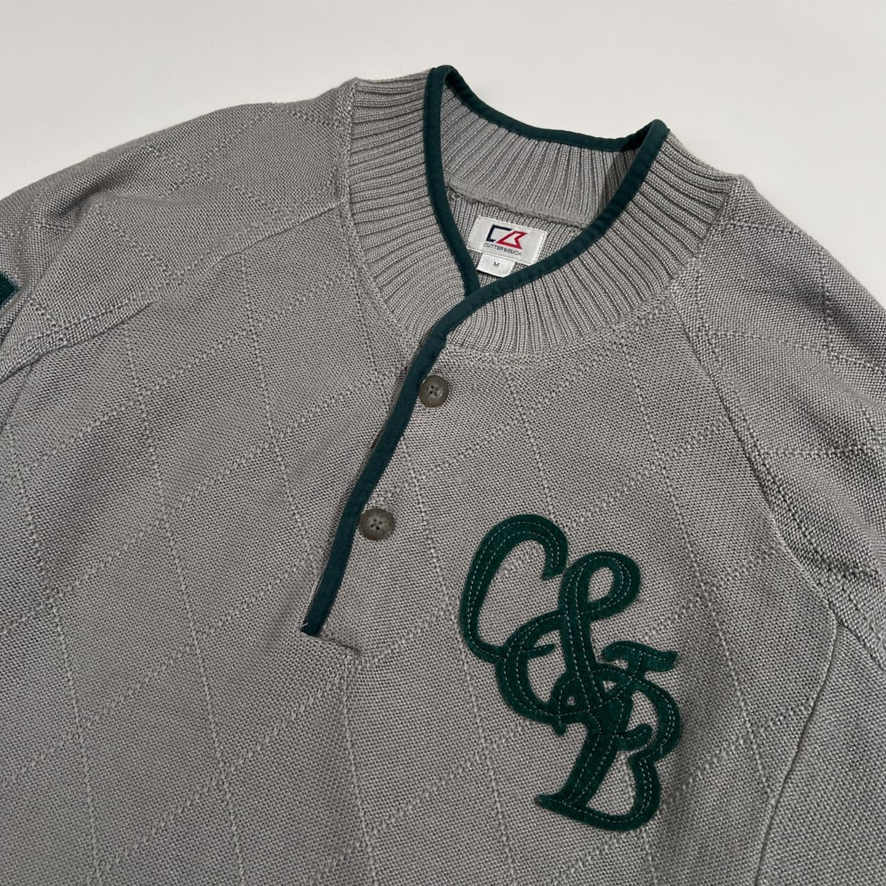 CUTTER & BUCK カッターアンドバック ダイヤ柄編み ハーフボタン ニット セーター サイズ M /ライトグレー系 ゴルフ ウェア