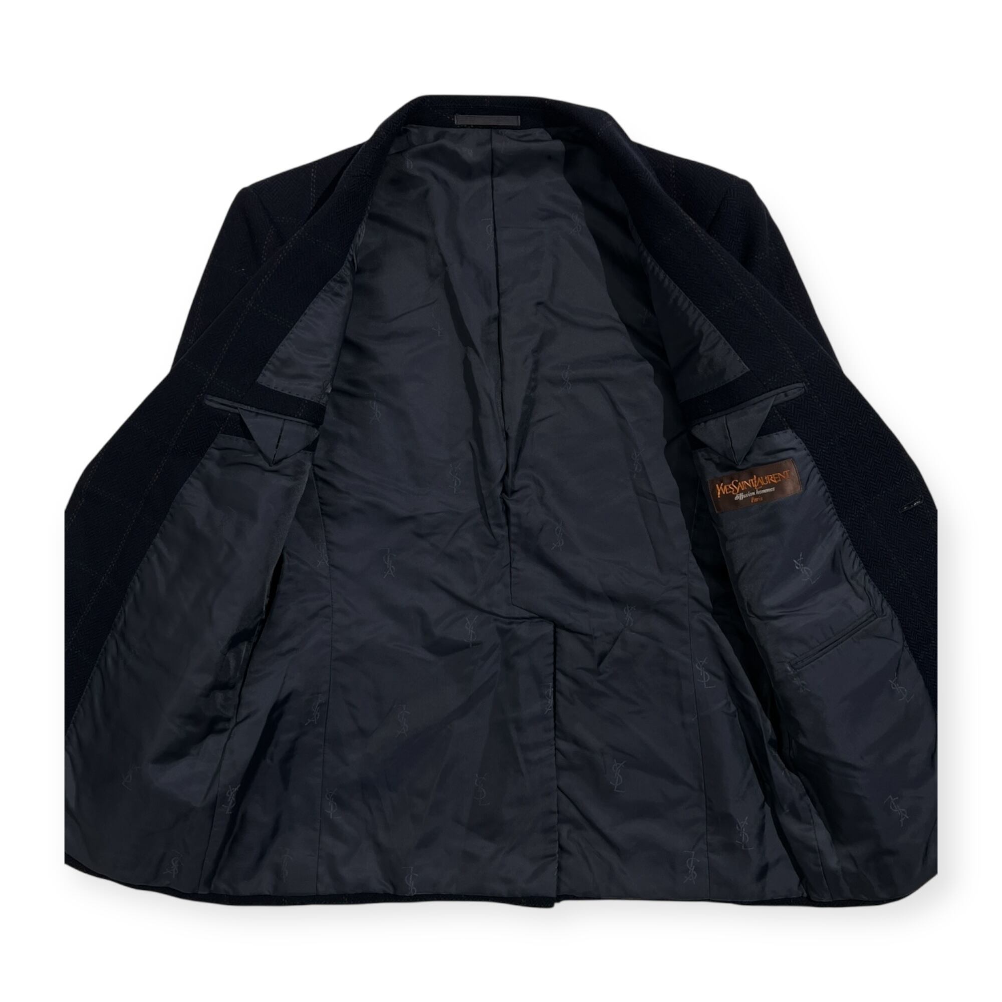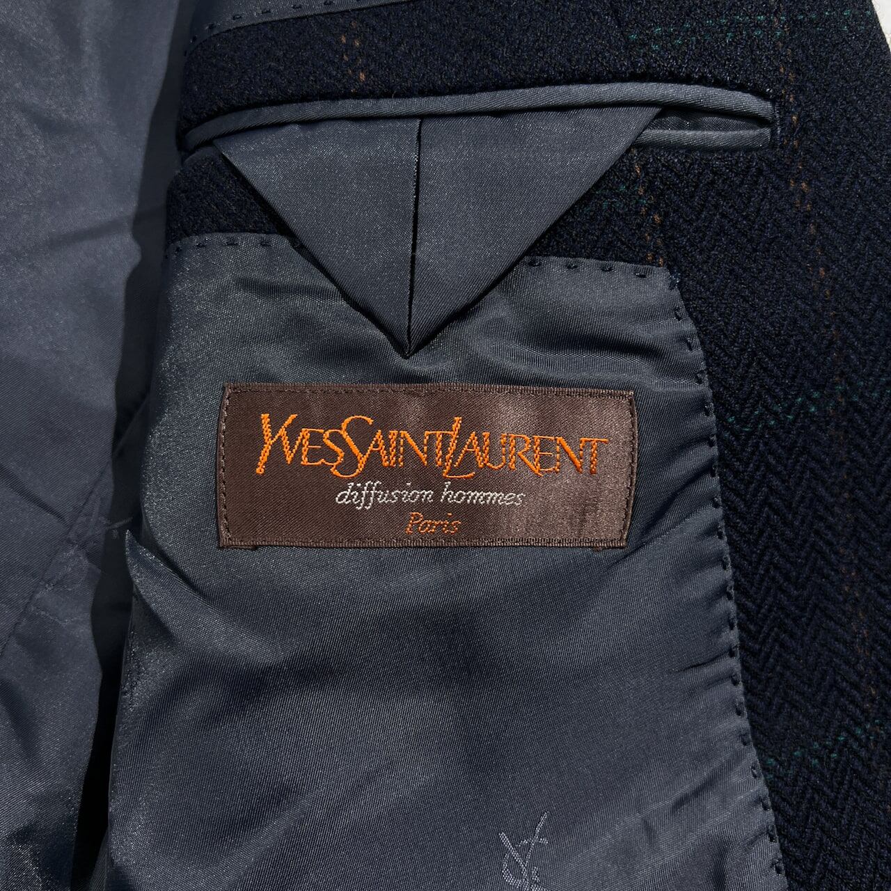 Vintage Yves Saint Laurent イヴサンローラン ヘリンボーン チェック テーラードジャケット C94-W84-T165 /ネイビー系 ビンテージ