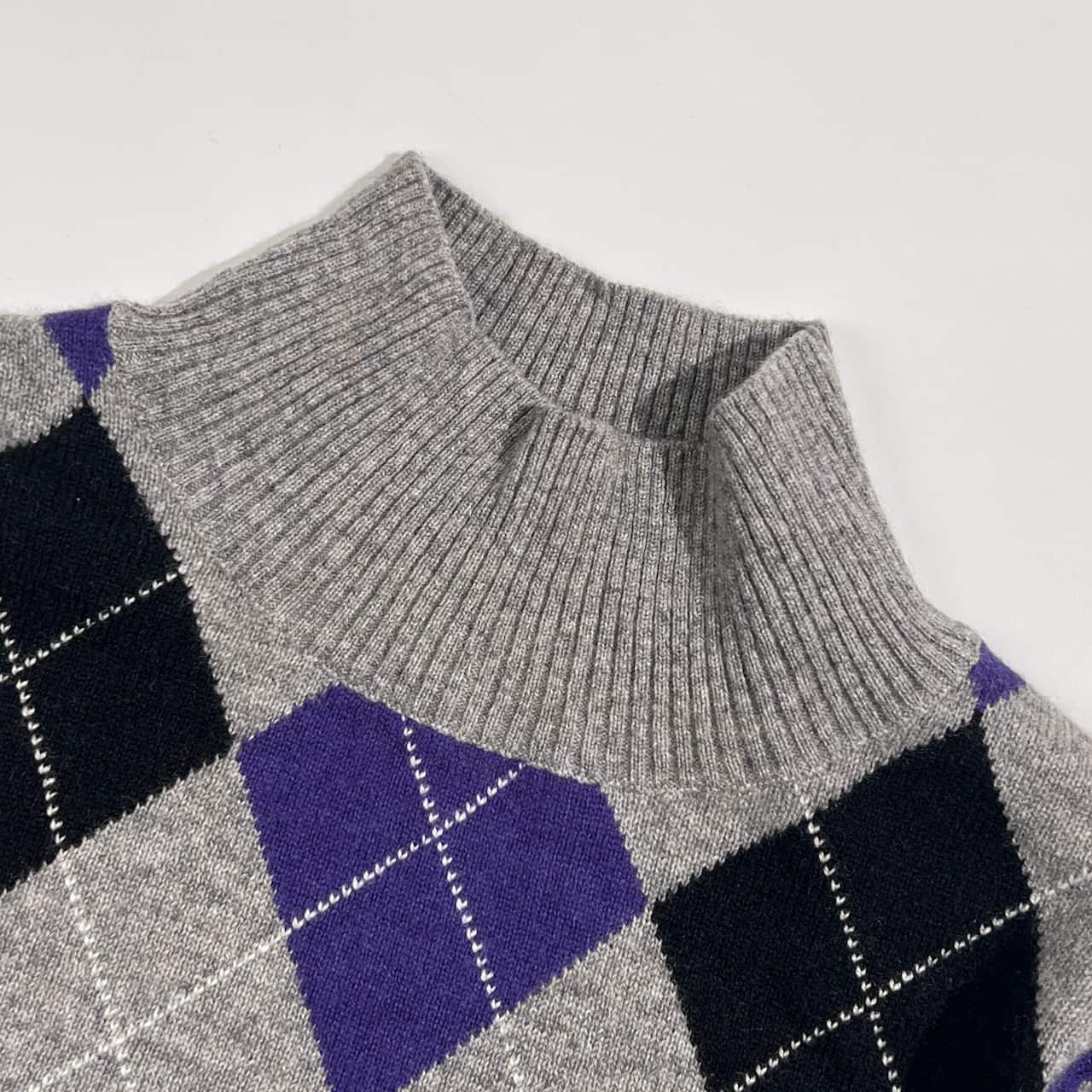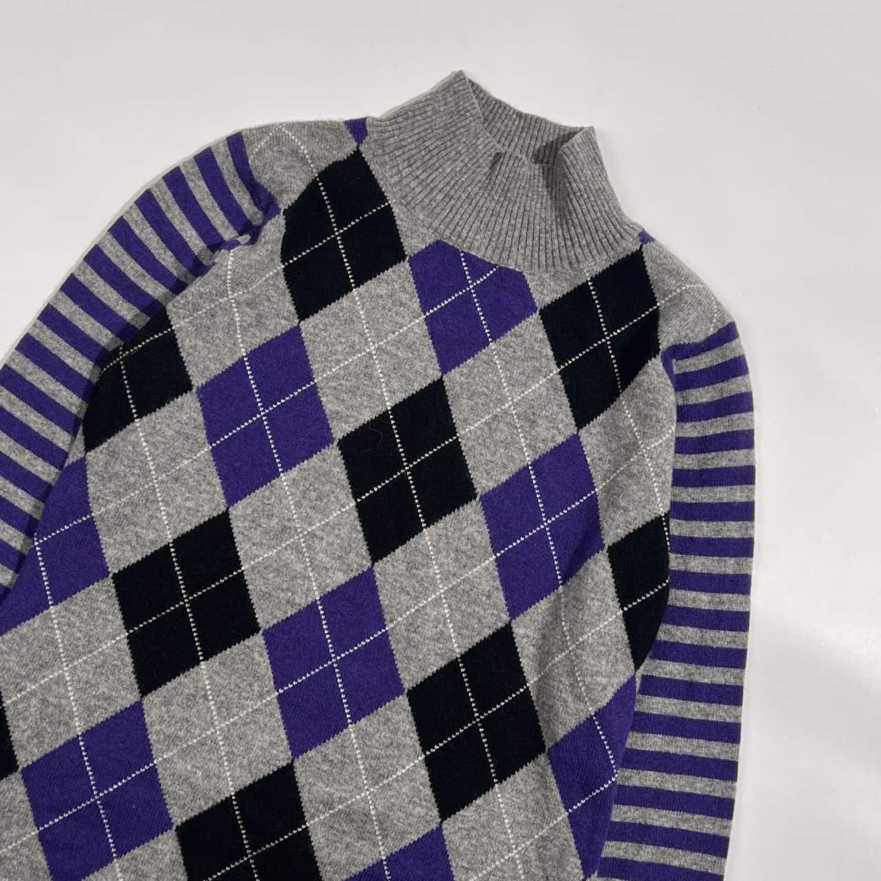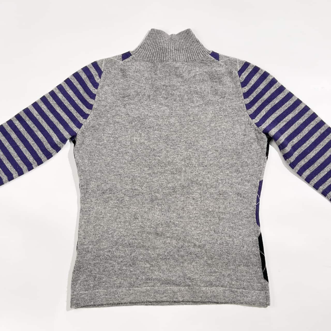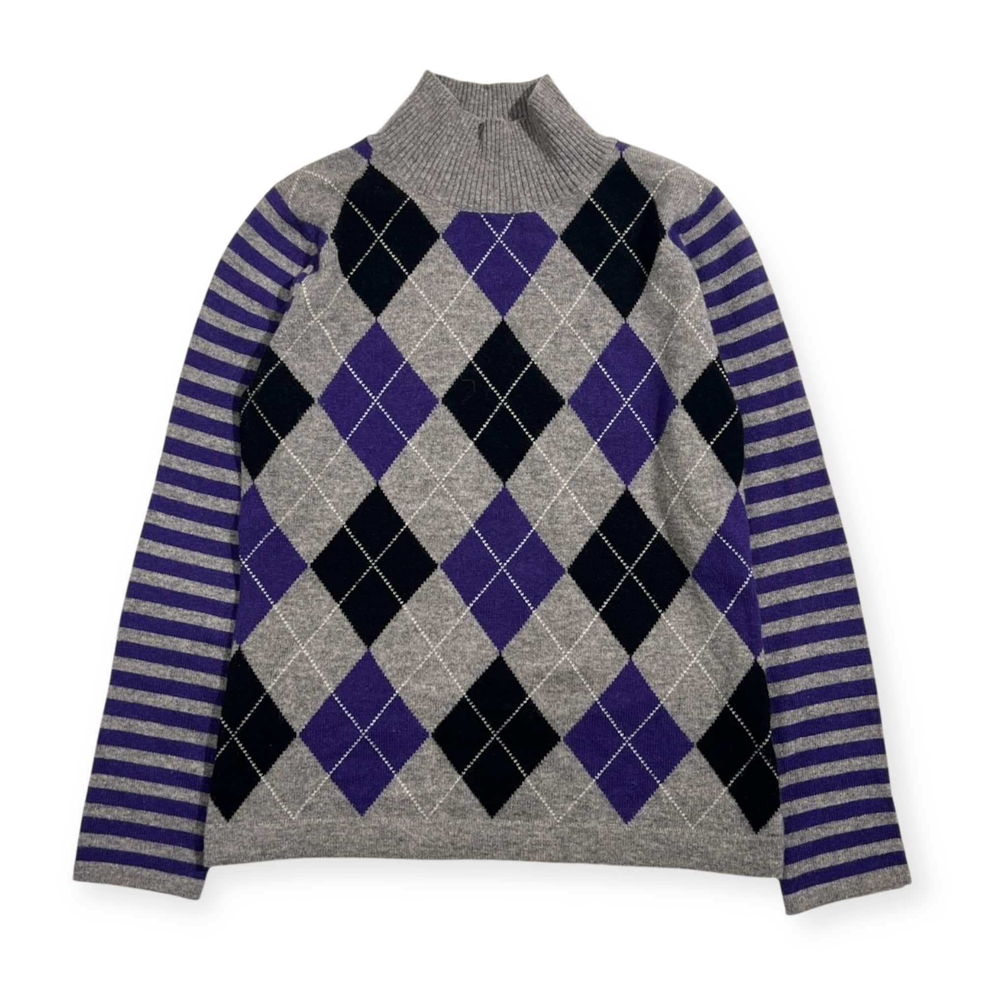 カシミヤ100% plus blue プラスブルー アーガイル×ボーダー ニット セーター 40 /グレー系 レディース