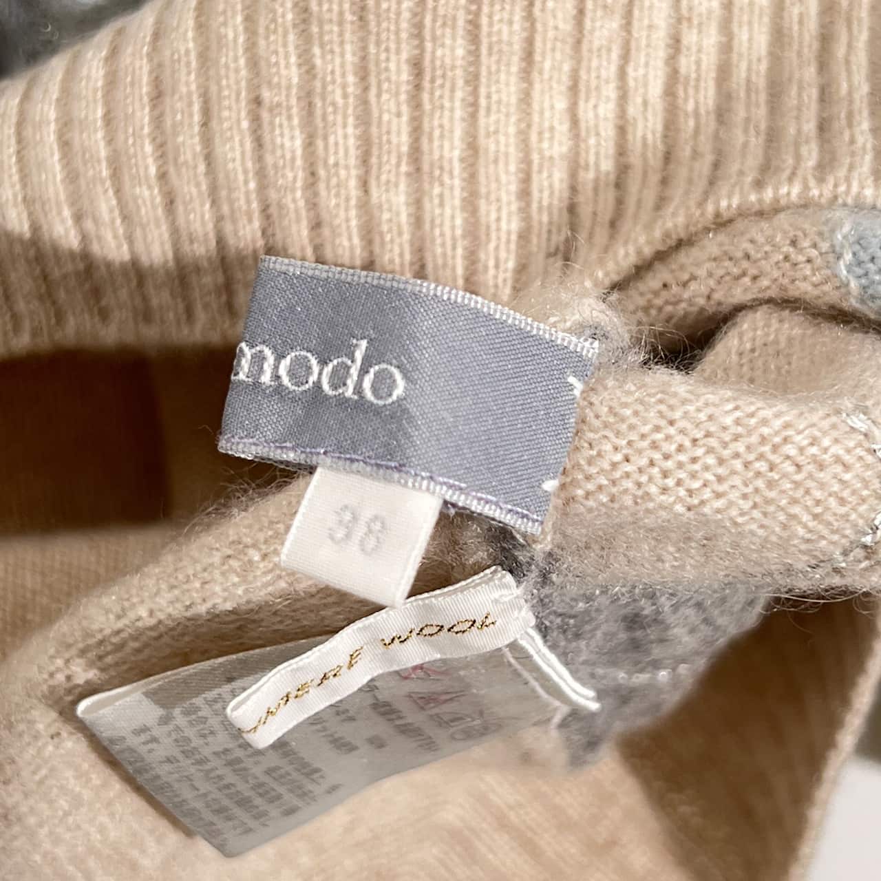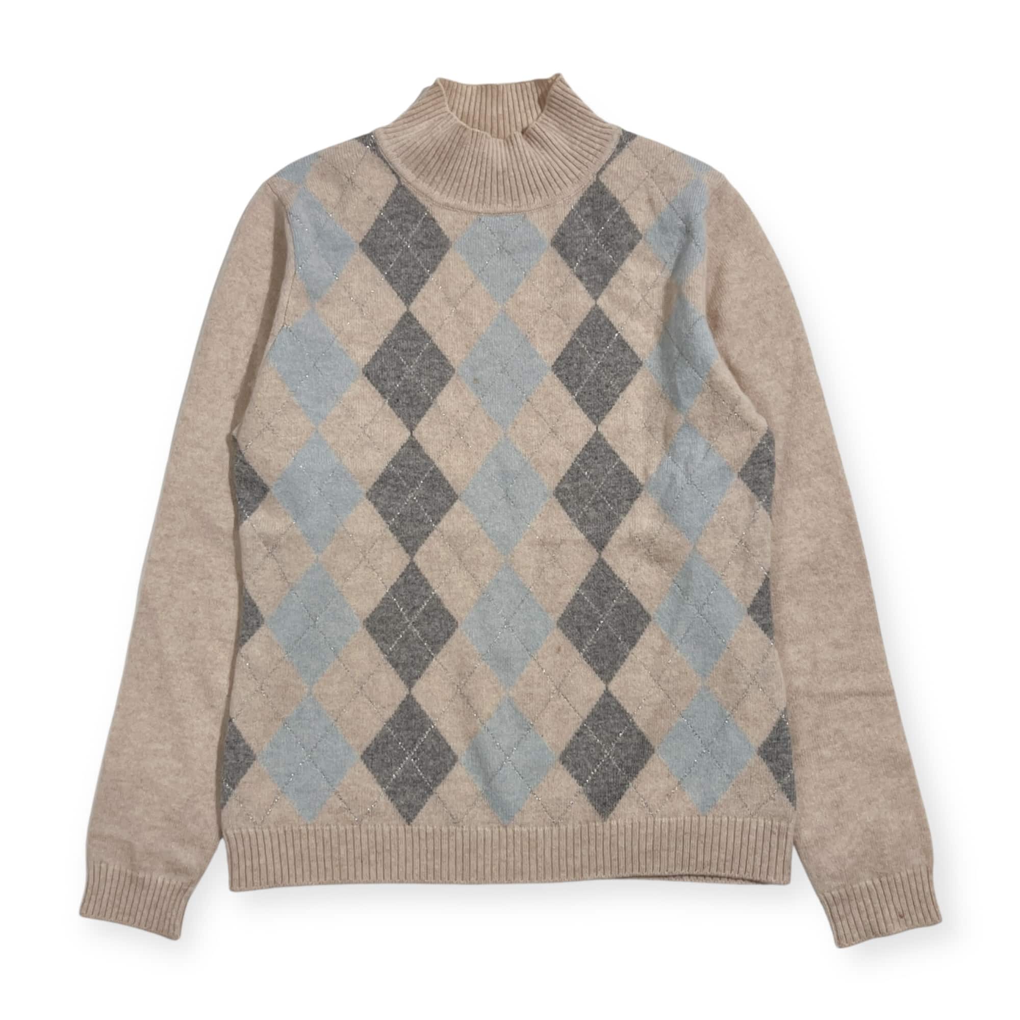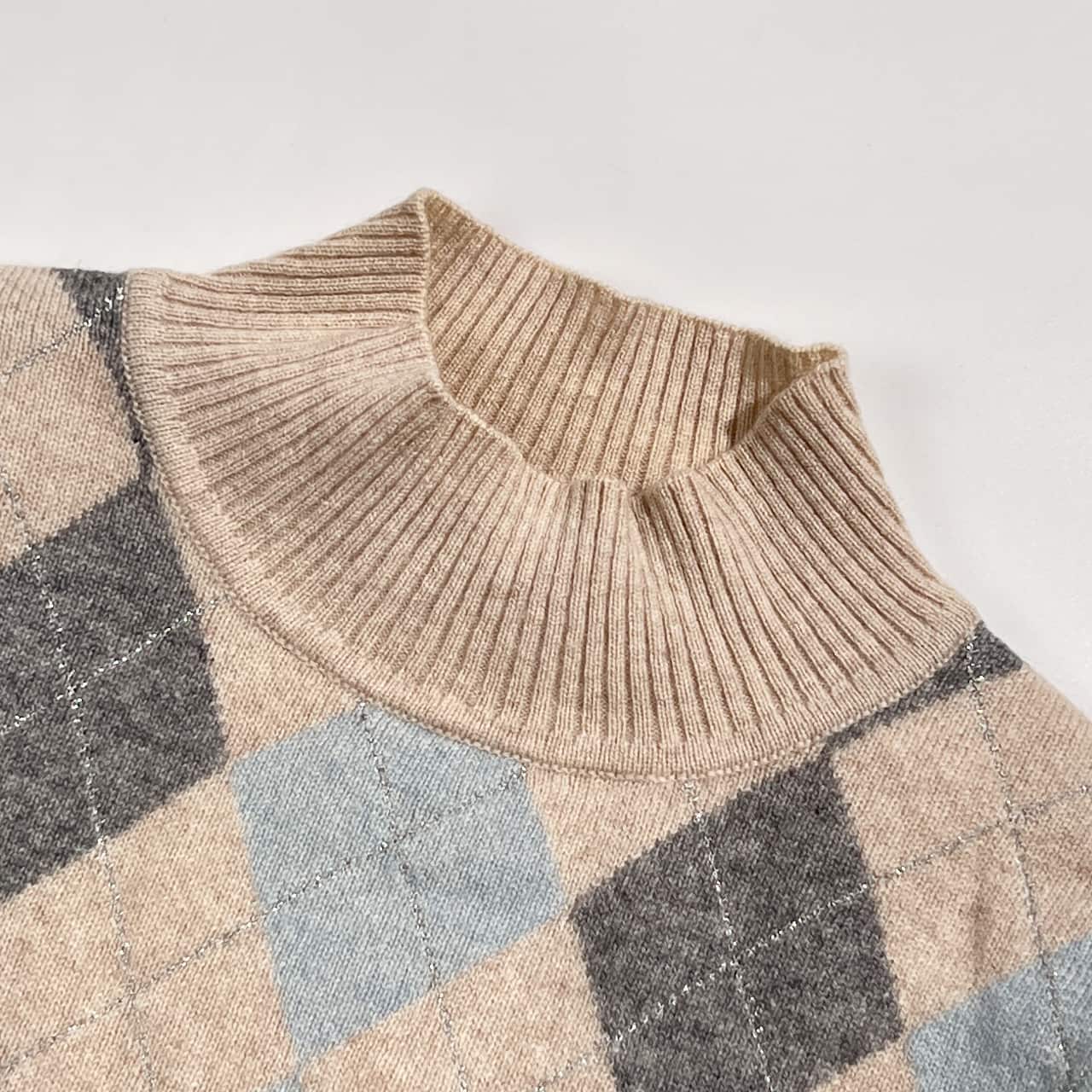 カシミヤ100% ACCOMODO アコモド アーガイル柄 ラメ ハイネック ニット 38/ベージュ レディース