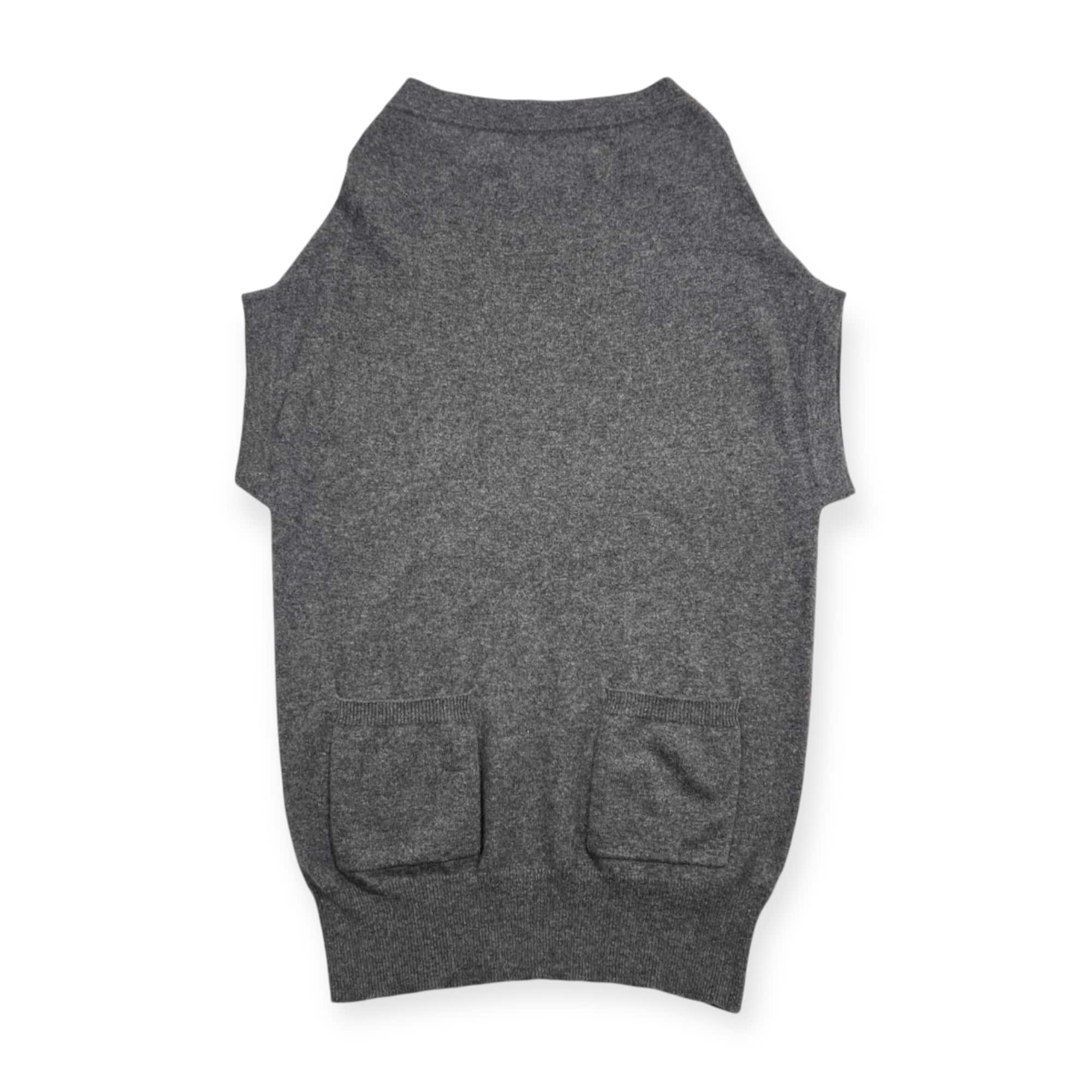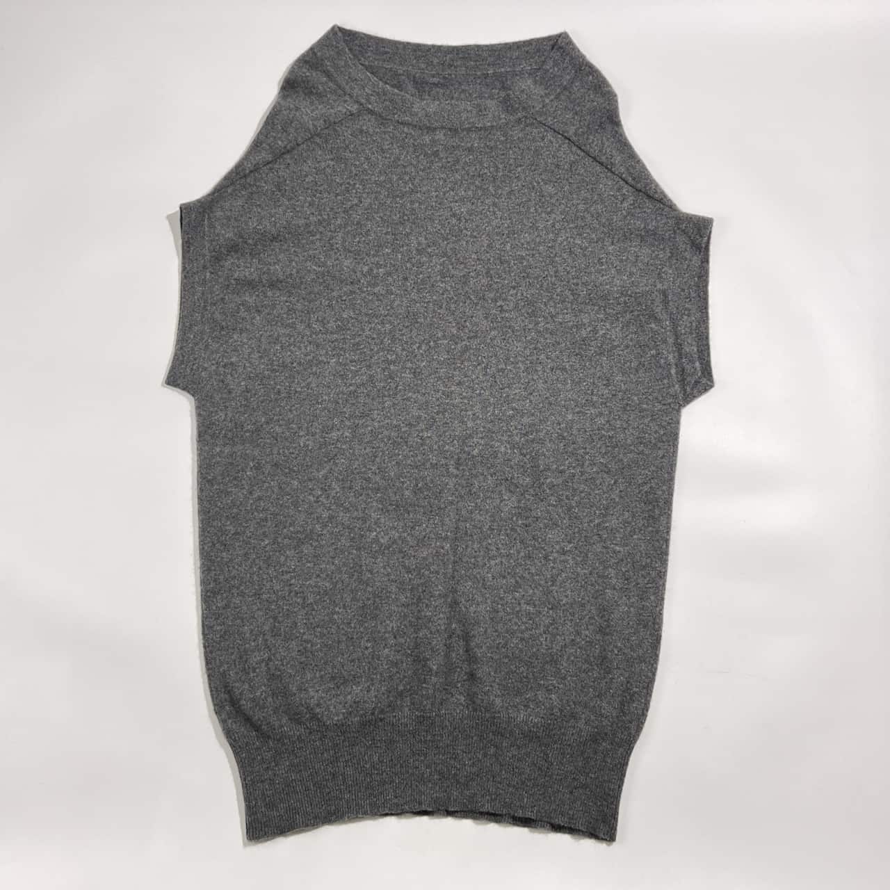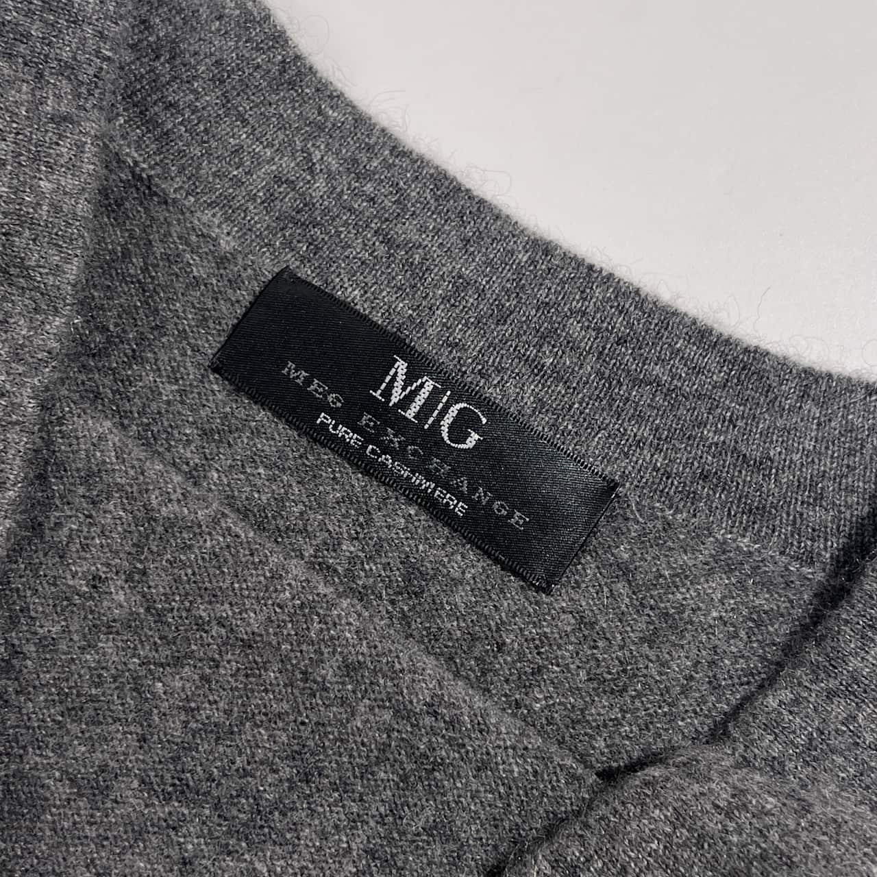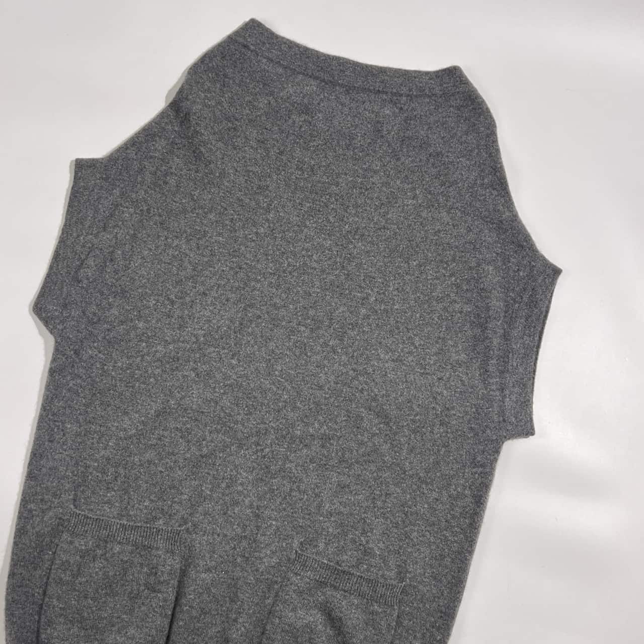 カシミヤ100% MIG MEG EXCHANGE メグエクスチェンジ チュニック丈 フレンチスリーブ ニット セーターL~LL/グレー系 ポケット付 レディース