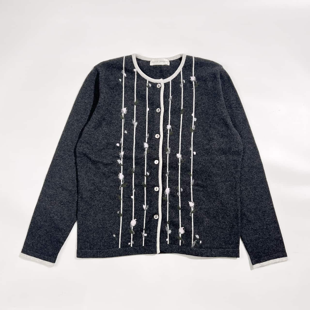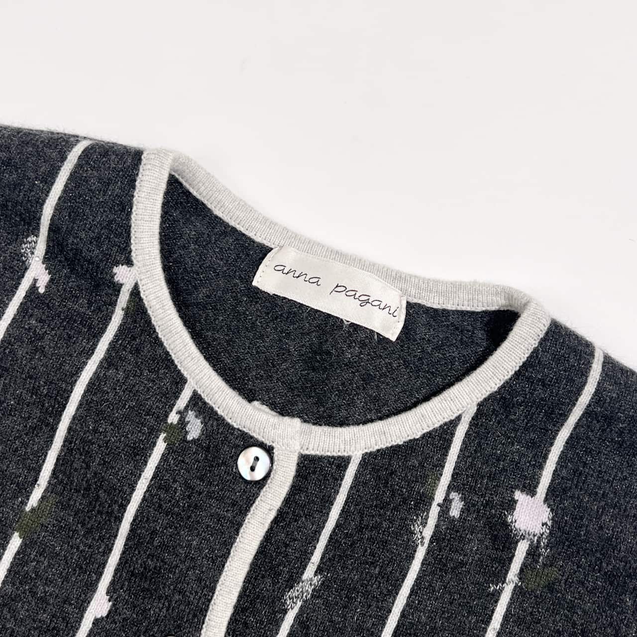 カシミヤ100% アンサンブル anna pagani アンナパガーニ 花柄 ラインストーン ニット カーディガン 半袖 ニット セーター /チャコールグレー系 レディース