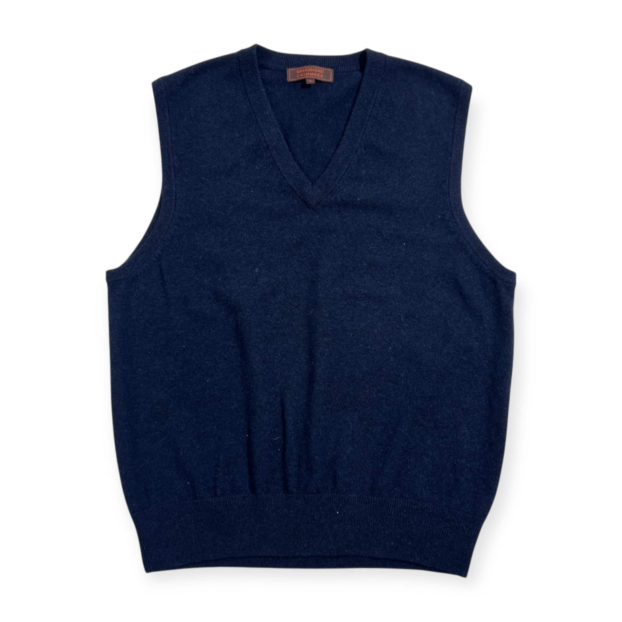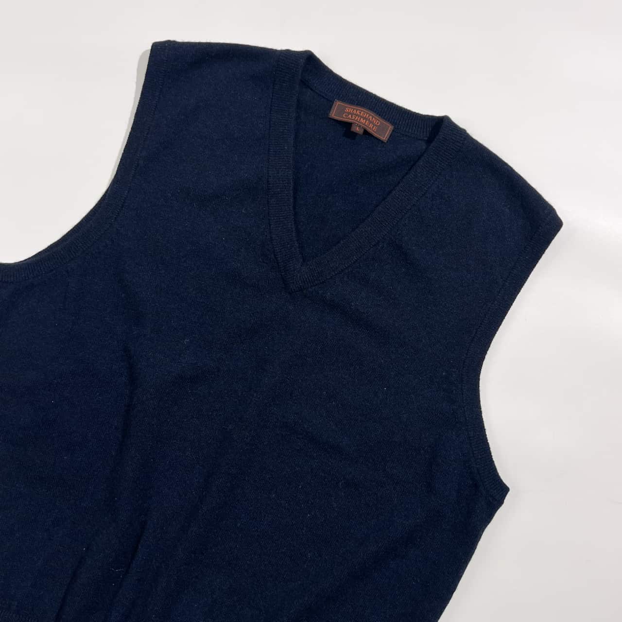 カシミヤ100% SHAKEHAND CASHMERE シェイクハンド Vネック ニット ベスト L/ネイビー系 メンズ
