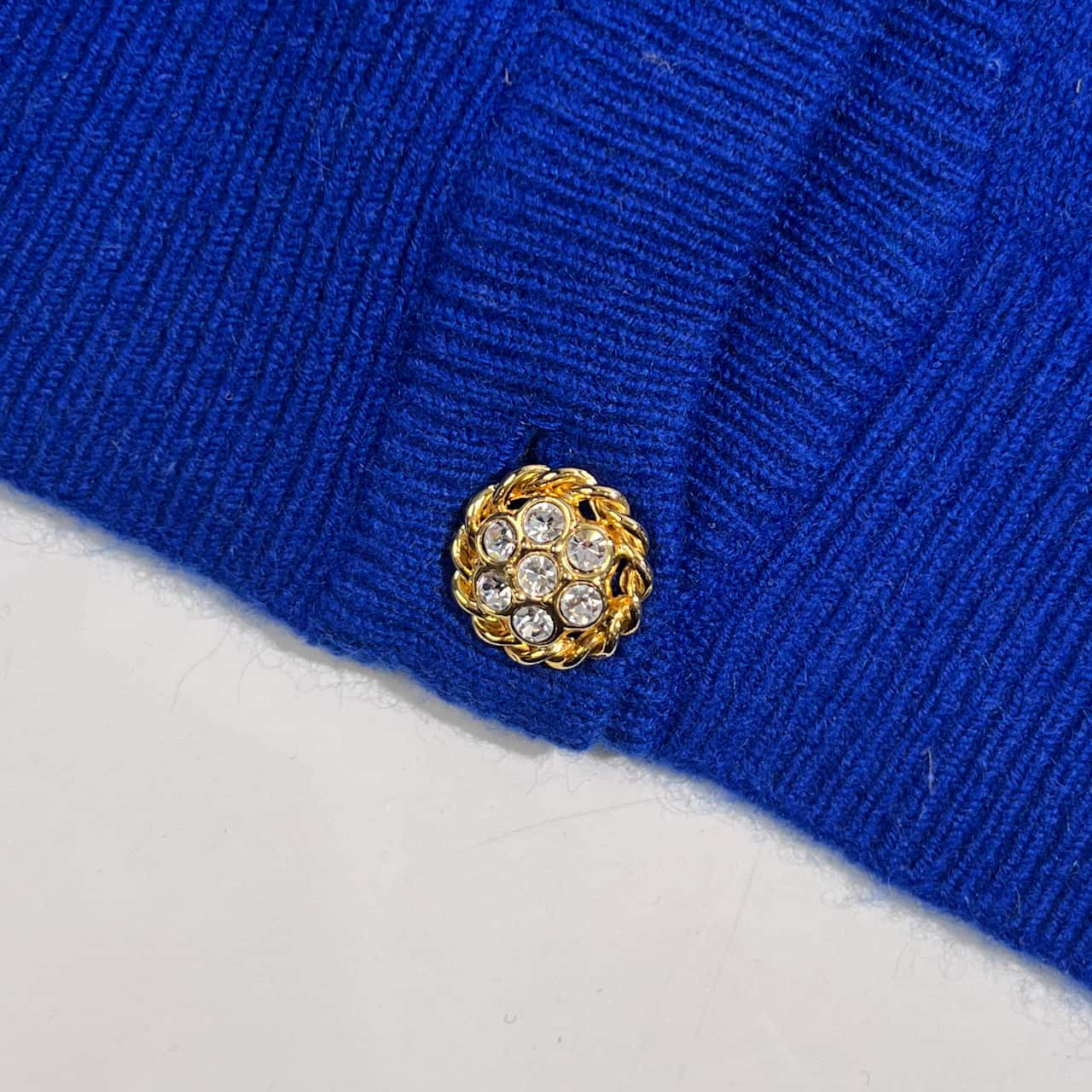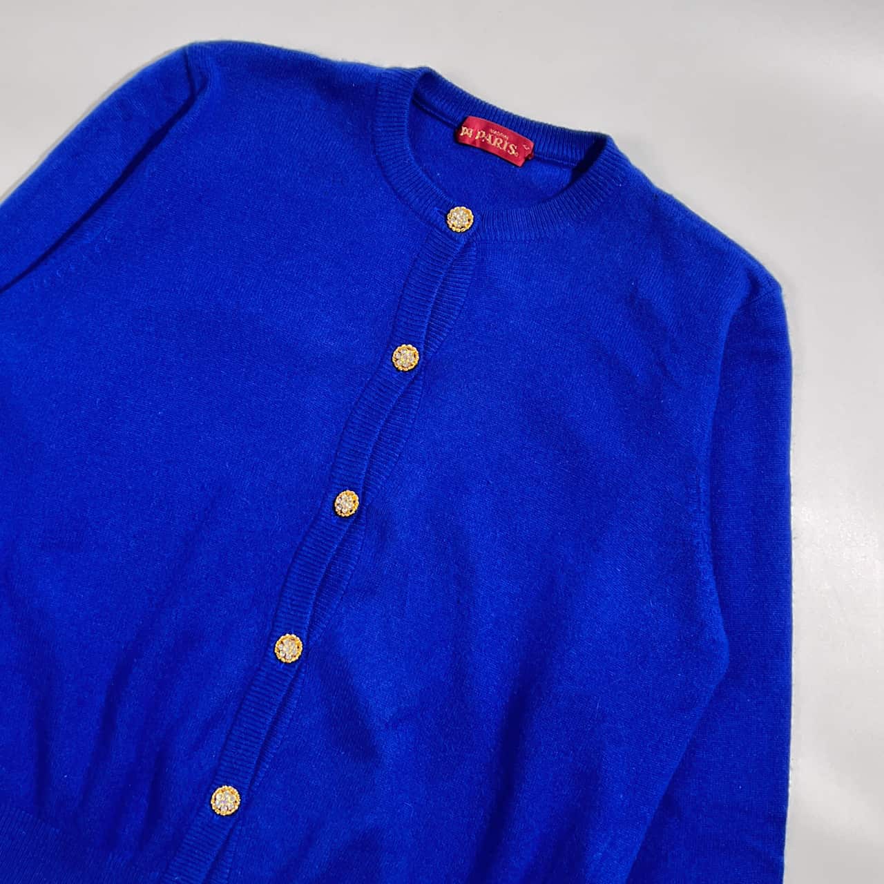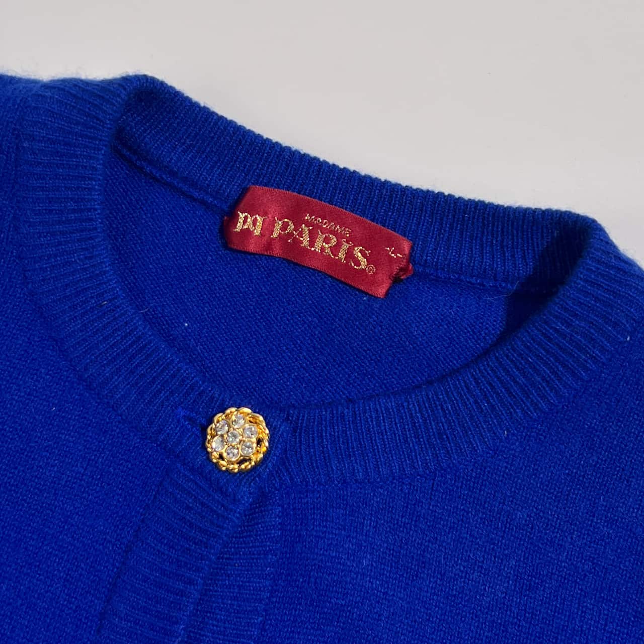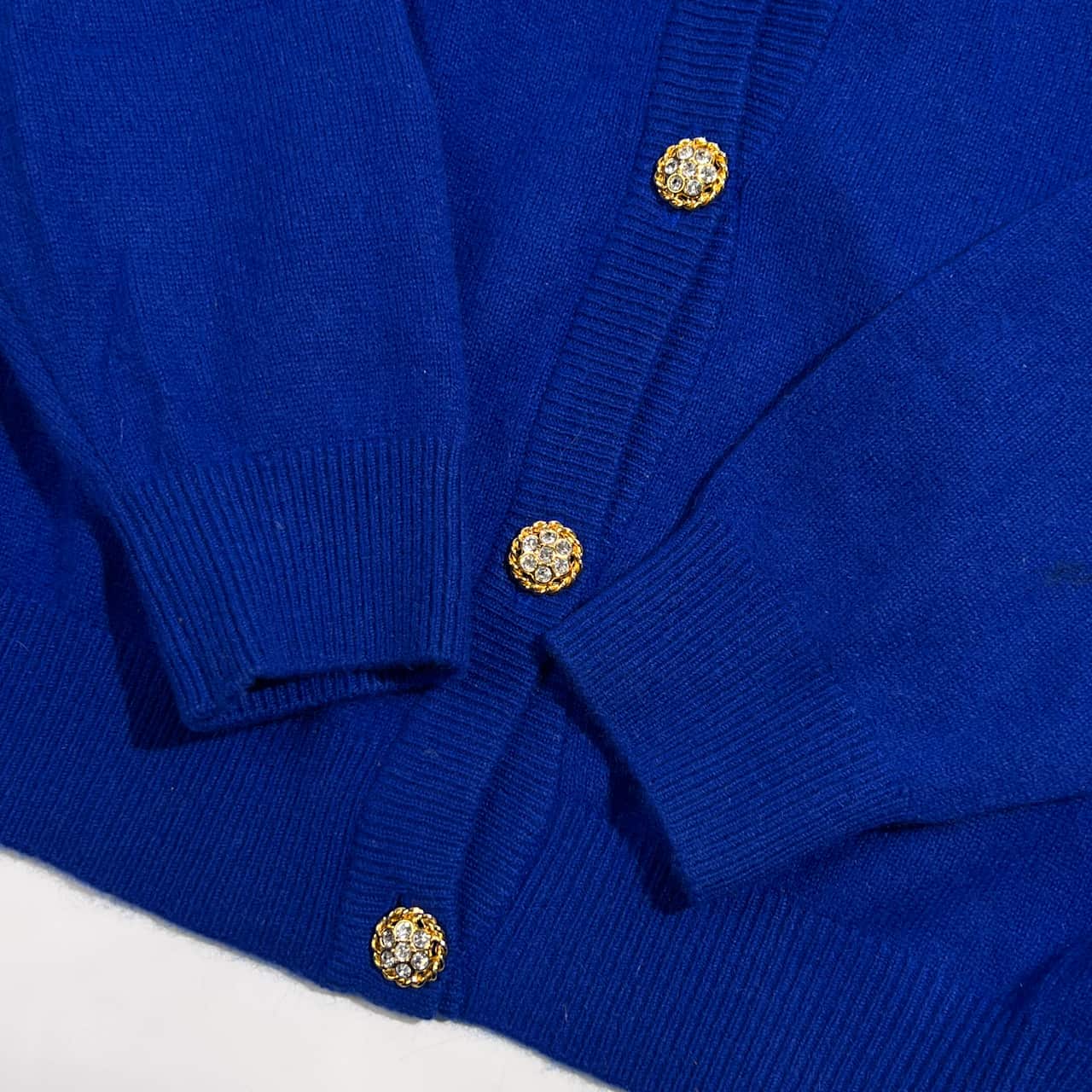 カシミヤ100% MADAME PARIS マダムパリス 豪華ボタン ニット カーディガン L/ブルー系 レディース