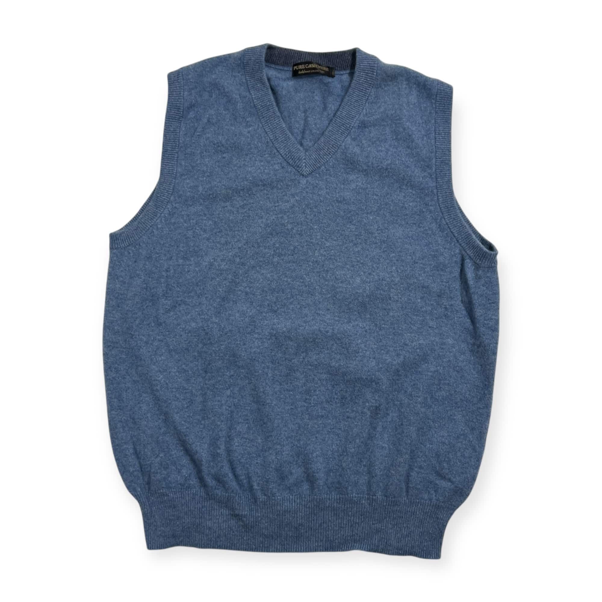 カシミヤ100% PURE CASHMERE ピュアカシミヤ Vネック ニットベスト L /くすみブルー系 メンズ