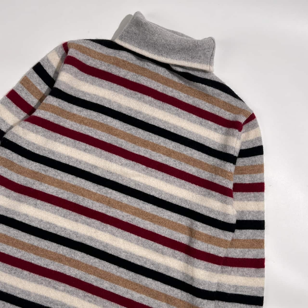 カシミヤ100% Donnez-Moi ドネモア マルチボーダー タートルネック ニット セーター M /グレー系 レディース